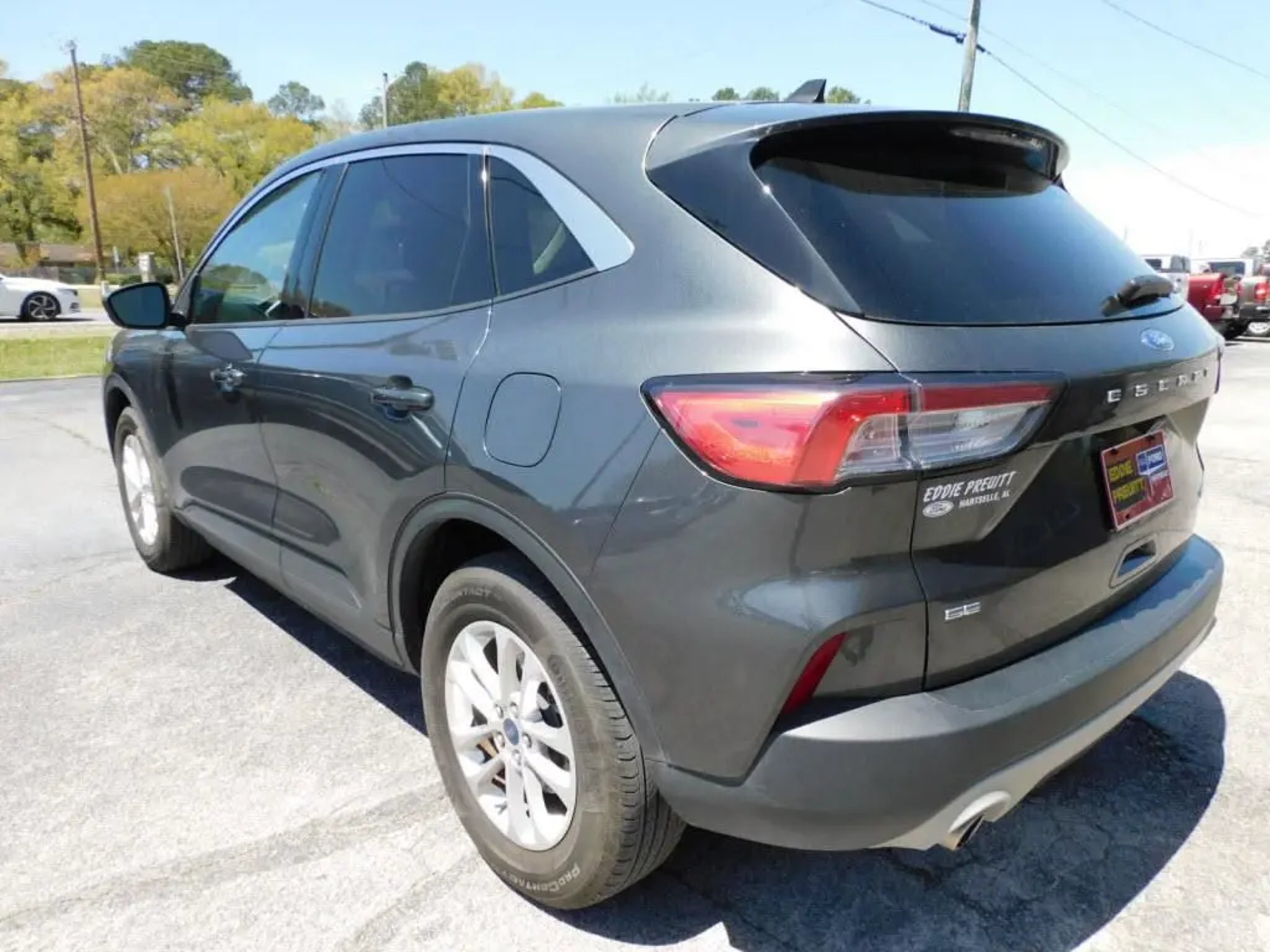 This 2020 Ford Escape SE 8-Speed Automatic is equipped with Equipment Group 200A, Ford Co-Pilot360 Assist (Adaptive Cruise Control w/Stop-and-Go and Voice-Activated Touchscreen Navigation System), 3.81 axle ratio, 4-Wheel Disc Brakes, 6 Speakers, ABS brakes, Air Conditioning, Alloy wheels, AM/FM radio: SiriusXM, AM/FM Stereo, Auto High-beam Headlights, Automatic temperature control, Brake assist, Bumpers: body-color, Compass, Delay-off headlights, Driver door bin, Driver vanity mirror, Dual front impact airbags, Dual front side impact airbags, Electronic Stability Control, Emergency communication system: SYNC 3 911 Assist, Exterior Parking Camera Rear, FordPass Connect, Four wheel independent suspension, Front anti-roll bar, Front Bucket Seats, Front Center Armrest, Front reading lights, Fully automatic headlights, Heated door mirrors, Heated front seats, Heated Unique Cloth Front Bucket Seats, Illuminated entry, Knee airbag, Low tire pressure warning, Occupant sensing airbag, Outside temperature display, Overhead airbag, Overhead console, Panic alarm, Passenger door bin, Passenger vanity mirror, Power door mirrors, Power driver seat, Power steering, Power windows, Radio data system, Rear anti-roll bar, Rear reading lights, Rear seat center armrest, Rear window defroster, Rear window wiper, Remote keyless entry, Speed control, Speed-sensing steering, Speed-Sensitive Wipers, Split folding rear seat, Spoiler, Steering wheel mounted audio controls, SYNC 3 Communications & Entertainment System, Tachometer, Telescoping steering wheel, Tilt steering wheel, Traction control, Trip computer, Variably intermittent wipers, and Wheels: 17 Shadow Silver-Painted Aluminum.