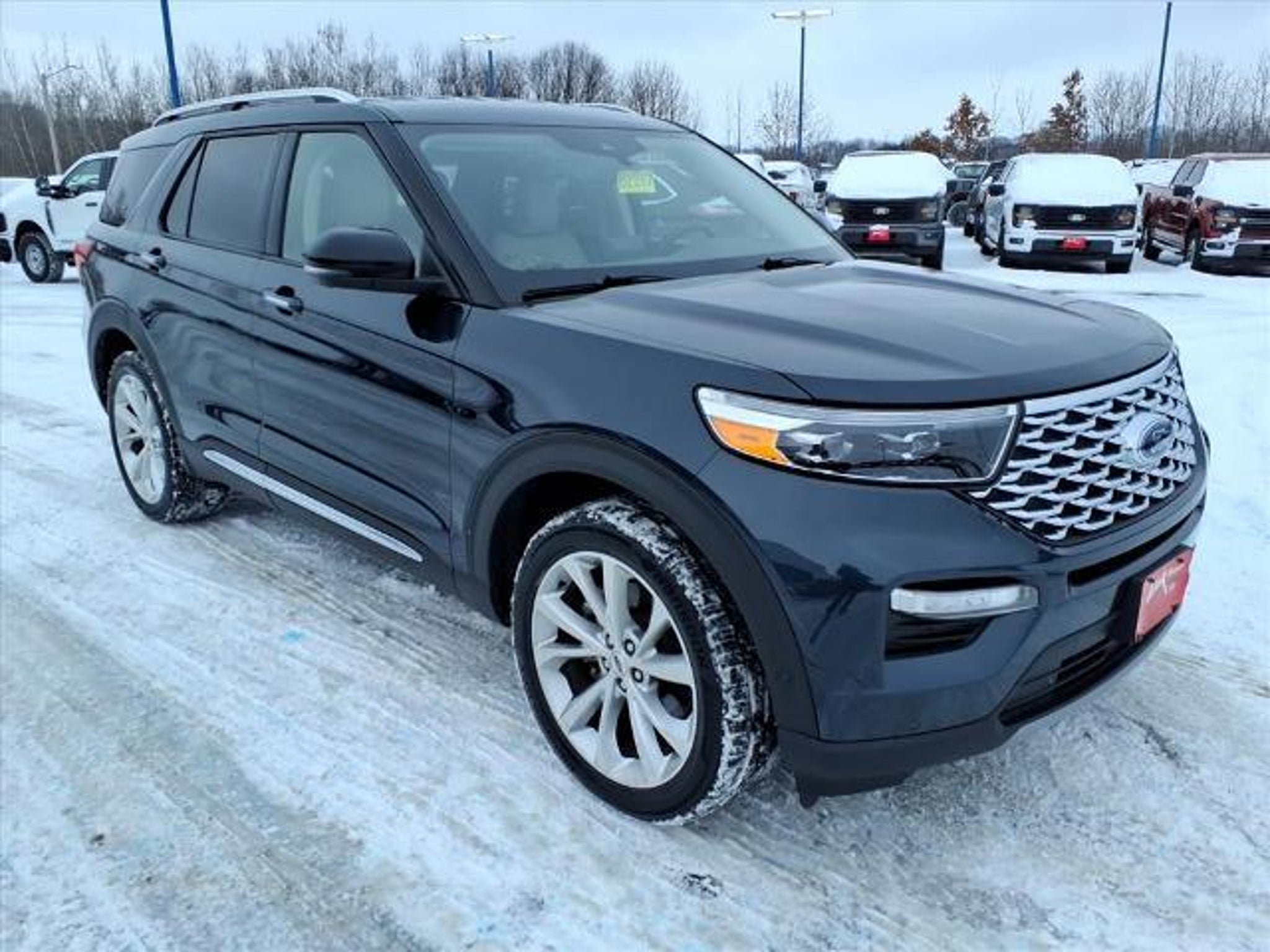 2022 Ford Explorer 3.3L Hybrid 10-Speed Automatic 23/24 City/Highway MPG Platinum Blue Metallic ** BACK-UP CAMERA **LEATHER INTERIOR **LOCAL TRADE **ACCIDENT FREE TITLE HISTORY **FREE VEHICLE HISTORY REPORT **ACCIDENT FREE AUTO CHECK REPORT **BLUETOOTH 4WD 10.1 LCD Capacitive Portrait Touchscreen 12 Speakers 1st Row Heated Seats 2 Additional Speakers 2nd Row 35/30/35 Bench w/E-Z Entry & Armrest 2nd Row Heated Seat Controls Credit 3.73 Non-Limited-Slip Rear Axle Ratio 3rd row seats: bench 4-Wheel Disc Brakes ABS brakes Air Conditioning Alloy wheels AM/FM radio: SiriusXM Auto High-beam Headlights Auto-dimming door mirrors Auto-dimming Rear-View mirror Automatic temperature control Brake assist Bumpers: body-color Class IV Trailer Tow Package Compass Delay-off headlights Driver door bin Driver vanity mirror Dual front impact airbags Dual front side impact airbags Electronic Stability Control Emergency communication system: SYNC 3 911 Assist Engine Block Heater Exterior Parking Camera Rear FordPass Connect Four wheel independent suspension Front anti-roll bar Front Bucket Seats Front Center Armrest Front dual zone A/C Front fog lights Front License Plate Bracket Front reading lights Fully automatic headlights Garage door transmitter Genuine wood dashboard insert Heated door mirrors Heated front seats Heated rear seats Heated steering wheel Hybrid Equipment Group 600A Illuminated entry Knee airbag Leather Htd/Ventilated Sport Captains Chairs Leather steering wheel Low tire pressure warning Memory seat Navigation System Occupant sensing airbag Outside temperature display Overhead airbag Overhead console Panic alarm Passenger door bin Passenger vanity mirror Power door mirrors Power driver seat Power Liftgate Power passenger seat Power steering Power windows Premium Technology Package Radio data system Radio: B&O Sound System by Bang & Olufsen Rain sensing wipers Rear air conditioning Rear anti-roll bar Rear Auxiliary Controls Credit Rear reading lights Rear window defroster Rear window wiper Remote keyless entry Roof rack: rails only Security system Speed control Speed-sensing steering Speed-Sensitive Wipers Split folding rear seat Spoiler Steering wheel memory Steering wheel mounted audio controls SYNC 3 Communications & Entertainment System SYNC 3/Apple CarPlay/Android Auto Tachometer Telescoping steering wheel Tilt steering wheel Traction control Trip com