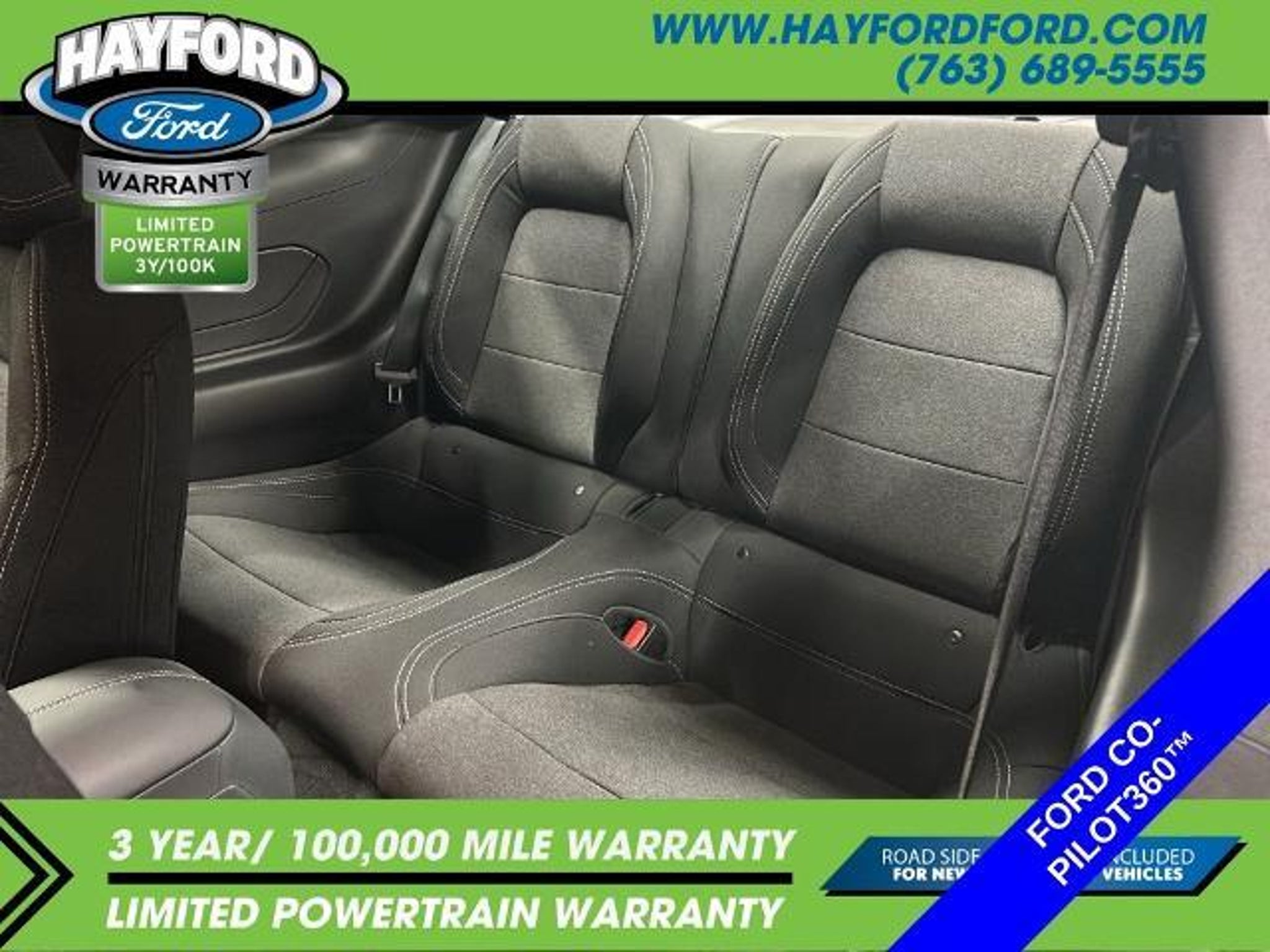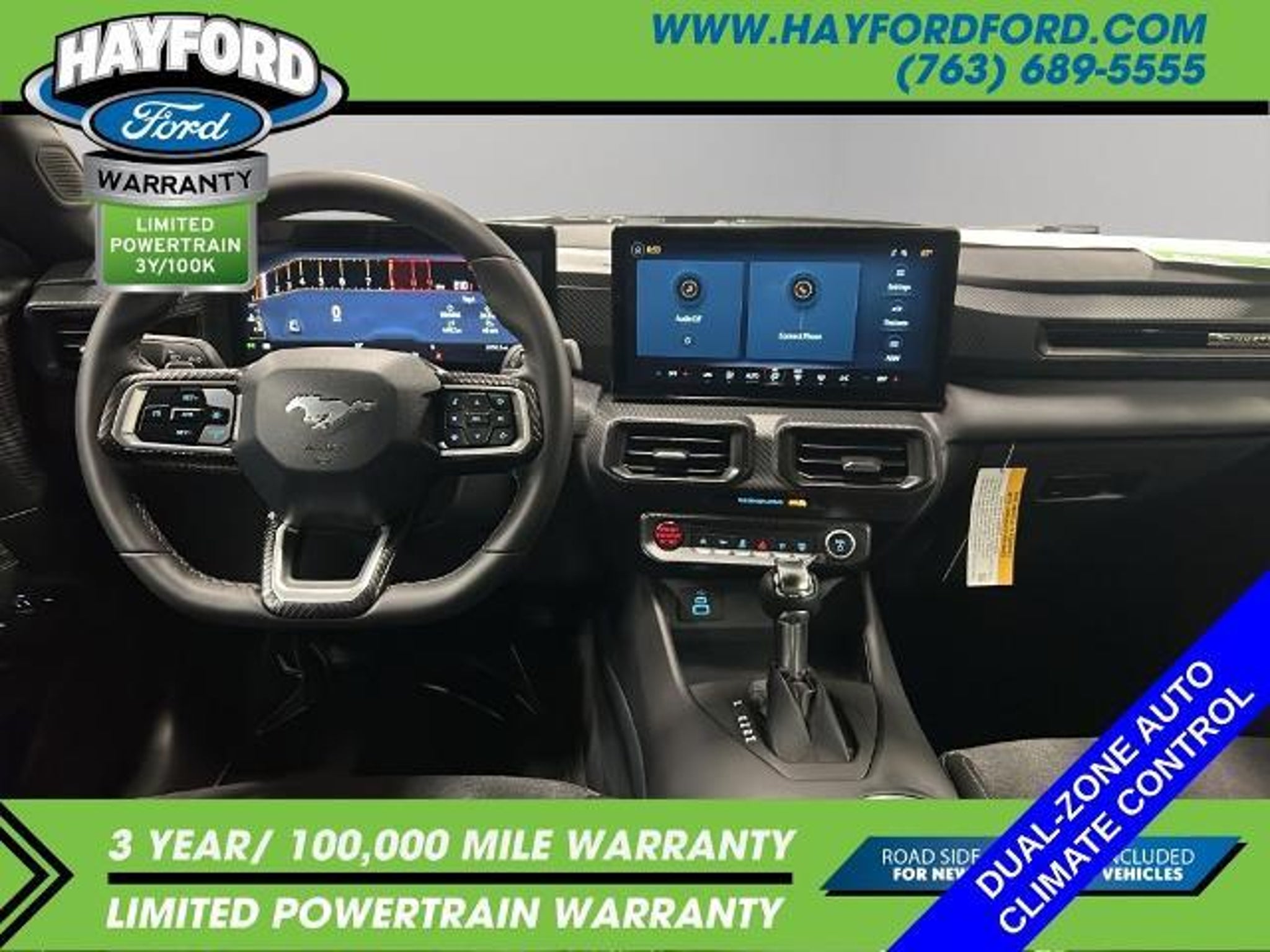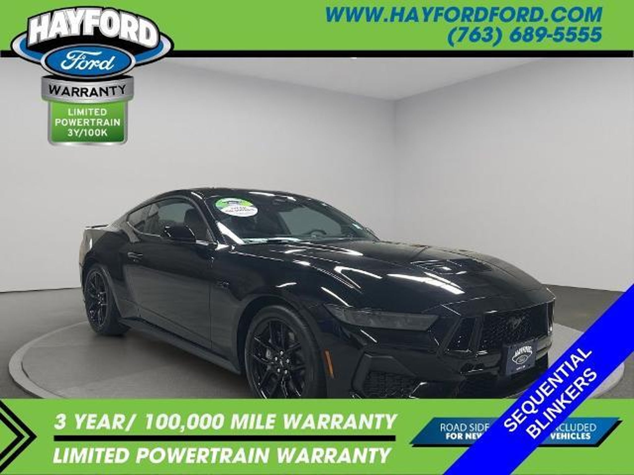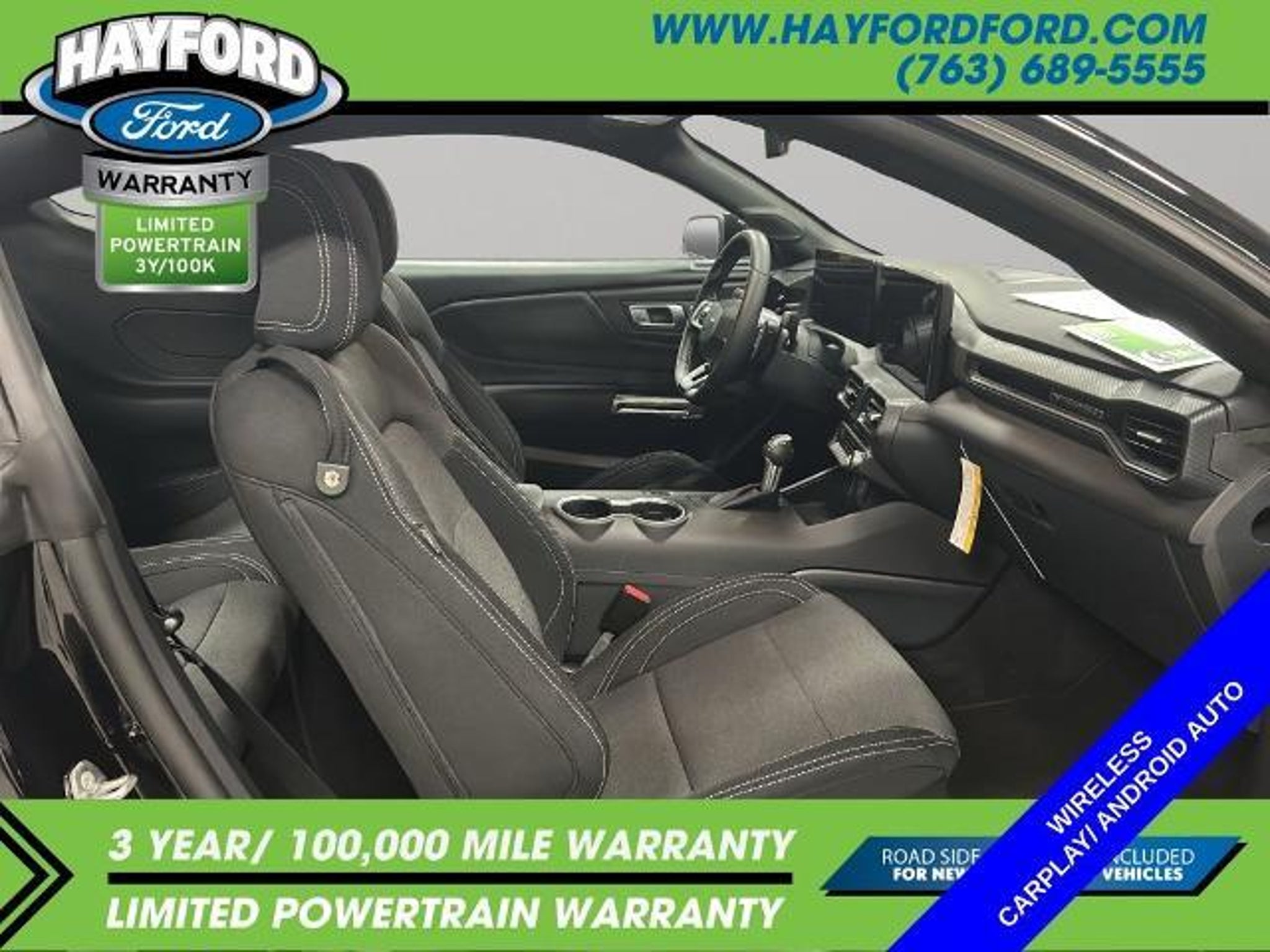 **THIS VEHICLE INCLUDES A 3yr/100,000 MILE POWERTRAIN WARRANTY** 2025 Ford Mustang GT CARFAX One-Owner. Clean CARFAX. *BACKUP CAMERA*, *ONE OWNER*, *CLEAN AUTOCHECK*, *POWER DRIVER'S SEAT*, *HEATED SEATS*, *INTELLIGENT ACCESS with PUSH BUTTON START*, *DUAL-ZONE CLIMATE CONTROL*, *BLIS (Blind spot monitoring system)*, *PRE-COLLISION ASSIST SYSTEM*, *REVERSE SENSING SYSTEM*, *LANE KEEPING SYSTEM*, *BLUETOOTH with HANDSFREE COMMUNICATIONS*, *Android Auto/ Apple Carplay*, **REMOTE START VIA FORD PASS CONNECT**, *SYNC 4 W/ 12 TOUCHSCREEN* (Navigation and bluetooth with Apple carplay or Android auto), ABS brakes, Active Valve Performance Exhaust, Alloy wheels, Bumpers: body-color, Compass, Electronic Stability Control, Front dual zone A/C, Fully automatic headlights, Illuminated entry, Low tire pressure warning, Power door mirrors, Remote keyless entry, Speed control, Spoiler, Traction control. Contact Hayford Ford at (763)689-5555 or Visit us online at www.hayfordford.com for more pictures and details. Come take a test drive today. Located 2 Miles north of Isanti on Hwy 65. Internet price includes $500 Hayford Finance Bonus and $500 Trade-in Bonus. Ask For details. Check out this vehicle's great ABS brakes, Active Valve Performance Exhaust, Alloy wheels, Bumpers: body-color, Compass, Electronic Stability Control, Front dual zone A/C, Fully automatic headlights, Illuminated entry, Low tire pressure warning, Power door mirrors, Remote keyless entry, Speed control, Spoiler, Traction control, 4-Wheel Disc Brakes, 6 Speakers, Air Conditioning, AM/FM radio, AM/FM Stereo, Auto High-beam Headlights, Automatic temperature control, Brake assist, Cloth Bucket Seats, Delay-off headlights, Driver door bin, Driver vanity mirror, Dual front impact airbags, Dual front side impact airbags, Emergency communication system: 911 Assist, Exterior Parking Camera Rear, Four wheel independent suspension, Front anti-roll bar, Front Bucket Seats, Front Center Armrest, Front reading lights, Knee airbag, Leather Shift Knob, Leather steering wheel, Occupant sensing airbag, Outside temperature display, Overhead airbag, Overhead console, Panic alarm, Passenger door bin, Passenger vanity mirror, Power steering, Power windows, Radio data system, Rain sensing wipers, Rear anti-roll bar, Rear Parking Sensors, Rear window defroster, Speed-sensing steering, Speed-Sensitive Wipers, Split folding rear seat, Sport steering wheel, Steering wheel mounted audio controls, SYNC 4, Tachometer, Telescoping steering wheel, Tilt steering wheel, Trip compu