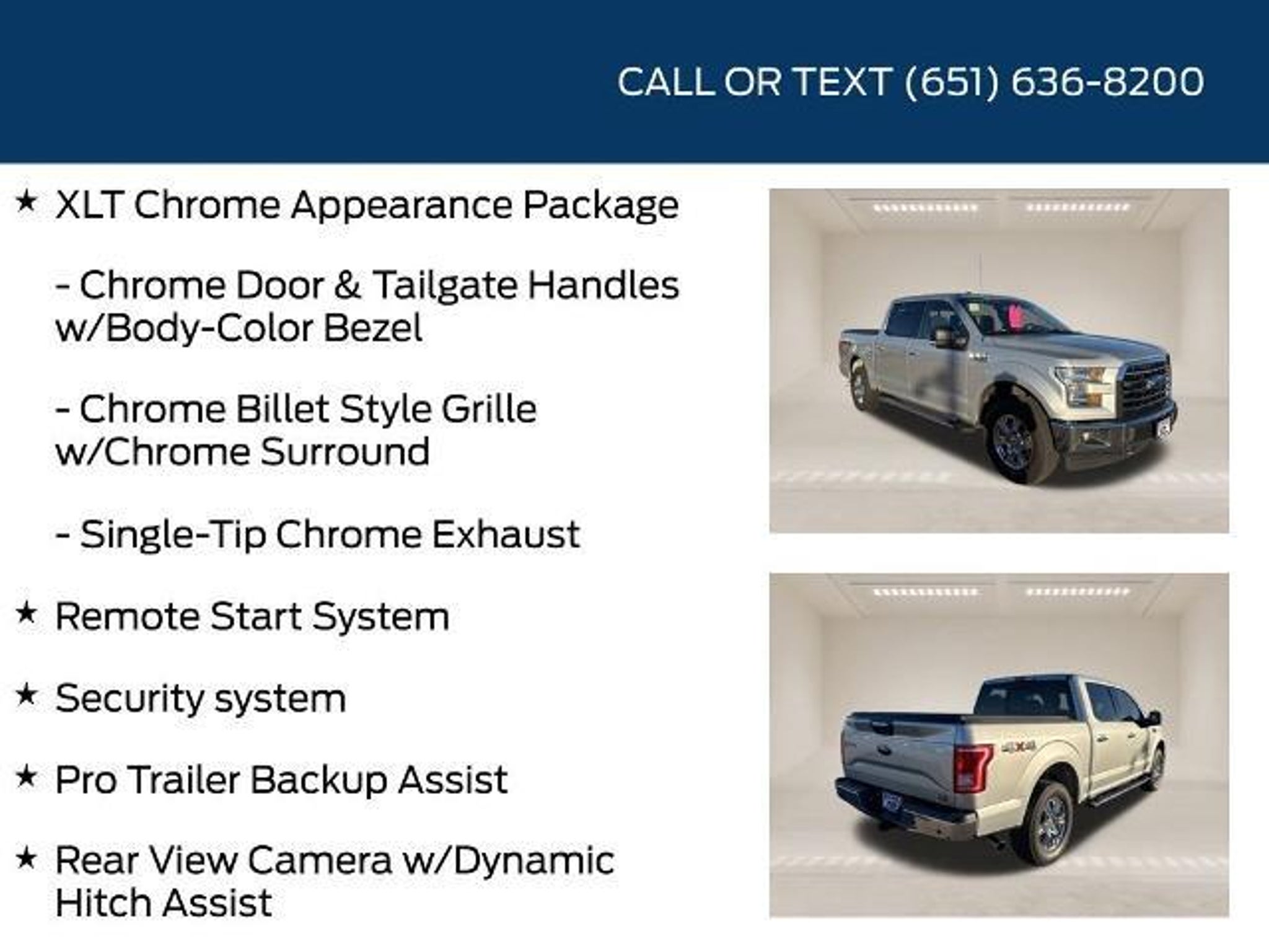 Midway Ford is honored to offer this fantastic 2017 Ford F-150 XLT in Ingot Silver beautifully equipped with: 4WD 6-Speed Automatic Electronic 2.7L V6 EcoBoost Local Trade Clean AutoCheck Apple CarPlay Android Auto Class IV Trailer Hitch Receiver Equipment Group 302A Luxury Heated Front Seats Pro Trailer Backup Assist Rear View Camera w/Dynamic Hitch Assist Remote Start System Security system Trailer Tow Package XLT Chrome Appearance Package. Recent Arrival! Odometer is 4964 miles below market average! Awards: * 2017 KBB.com 10 Most Awarded Brands * 2017 KBB.com Brand Image Awards CALL OR TEXT: Stop by and see us at: 2777 Snelling Ave N Saint Paul Minnesota 55113