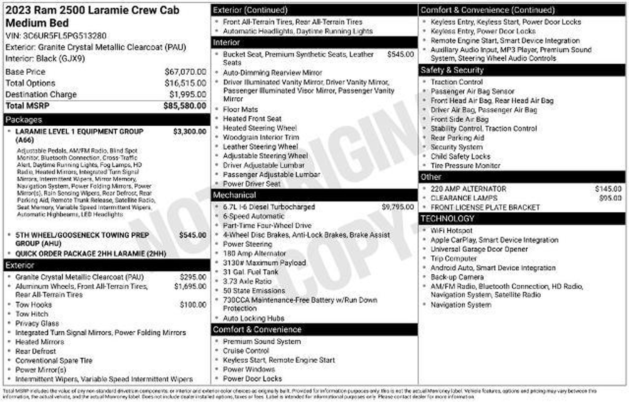 Factory Warranty! 6.7L Cummins Diesel. One owner local new car trade-in. Well cared for. Laramie with GREAT equipment including: 12 infotainment screen with factory navigation heated and cooled leather seats 5th wheel prep and much more! NO BUYER FEES! NO DOC FEES!! NO FEES!!! Since 1963 we have been serving El Dorado Springs Stockton Wheatland Bolivar Lebanon Warsaw Joplin Springfield Nixa Ozark Branson Kansas City Nevada Belton Harrisonville Raytown Lees Summit Blue Springs Fayetteville Tulsa and more!!!! Laramie Level 1 Equipment Group (12 Touchscreen Display 2nd Row In Floor Storage Bins 4G LTE Wi-Fi Hot Spot Alexa Built-In Apple CarPlay Auto Adjust In Reverse Exterior Mirrors Auto Dim Exterior Mirror Auto High Beam Headlamp Control Auto Power-Folding Mirrors Auto-Dimming Exterior Passenger Mirror Blind Spot & Cross Path Detection Chrome Exterior Mirrors Connected Travel & Traffic Services Connectivity - US/Canada Disassociated Touchscreen Display Exterior Mirrors Courtesy Lamps Exterior Mirrors w/Heating Element Exterior Mirrors w/Memory Exterior Mirrors w/Supplemental Signals Foam Bottle Insert (Door Trim Panel) For Details Visit DriveUconnect.com For More Info Call Forward & Reverse Utility Lights Front LED Fog Lamps Global Telematics Box Module (TBM) Google Android Auto GPS Antenna Input GPS Navigation HD Radio Integrated Voice Command w/Bluetooth LED Reflector Headlamps Mirror Running Lights Off-Road Information Pages ParkSense Front/Rear Park Assist System Power Adjust Mirrors Power Adjustable Convex Aux Mirrors Power Adjustable Pedals w/Memory Power Heated Fold Telescopic Mirrors w/Memory Power Telescoping Mirrors Radio: Uconnect 5 Nav w/12.0 Display Radio/Driver Seat/Mirrors/Pedals Memory Rain Sensitive Windshield Wipers Rear Power Sliding Window Rear Window Defroster Remote Tailgate Release Selectable Tire Fill Alert SiriusXM Radio Service SiriusXM w/360L and Trailer Tow Pages) Quick Order Package 2HH Laramie 10 Speakers 115V Auxiliary Rear Power Outlet 2 Way Rear Headrest Seat 20 x 8.0 Polished Aluminum Wheels 220 Amp Alternator 3.73 Axle Ratio 4 Way Front Headrests 4-Wheel Disc Brakes 5th Wheel/Gooseneck Towing Prep Group ABS brakes Active Noise Control System Air Conditioning Alloy wheels AM/FM radio: SiriusXM with 360L Apple CarPlay/Android Auto Auto-dimming Rear-View mirror Automatic temperature control Brake assist Bumpers: body-color Center Hub Clearance Lamps Compass Delay-off headlights Driver door bin Driver vanity mirror Dual front impact airbags Dual front side impact airbags Electronic Stability Control Electronically Controlled Throttle Front anti-roll bar Front Center Armrest w/Storage Front dual zone A/C Front License Plate Bracket Front reading lights Front Seat Back Map Pockets Fully automatic headlights Garage door transmitter Heated door mirrors Heated Front Seats Heated front seats Heated Steering Wheel Heated steering wheel Illuminated entry Leather steering wheel Leather Trim 40/20/40 Bench Seat Low tire pressure warning Navigation System Occupant sensing airbag Outside temperature display Overhead airbag Overhead console Panic alarm ParkView Rear Back-Up Camera Passenger door bin Passenger vanity mirror Power 2-Way Driver Lumbar Adjust Power 2-Way Passenger Lumbar Adjust Power Adjust 8-Way Driver Seat Power Adjust 8-Way Front Passenger Seat Power door mirrors Power driver seat Power passenger seat Power