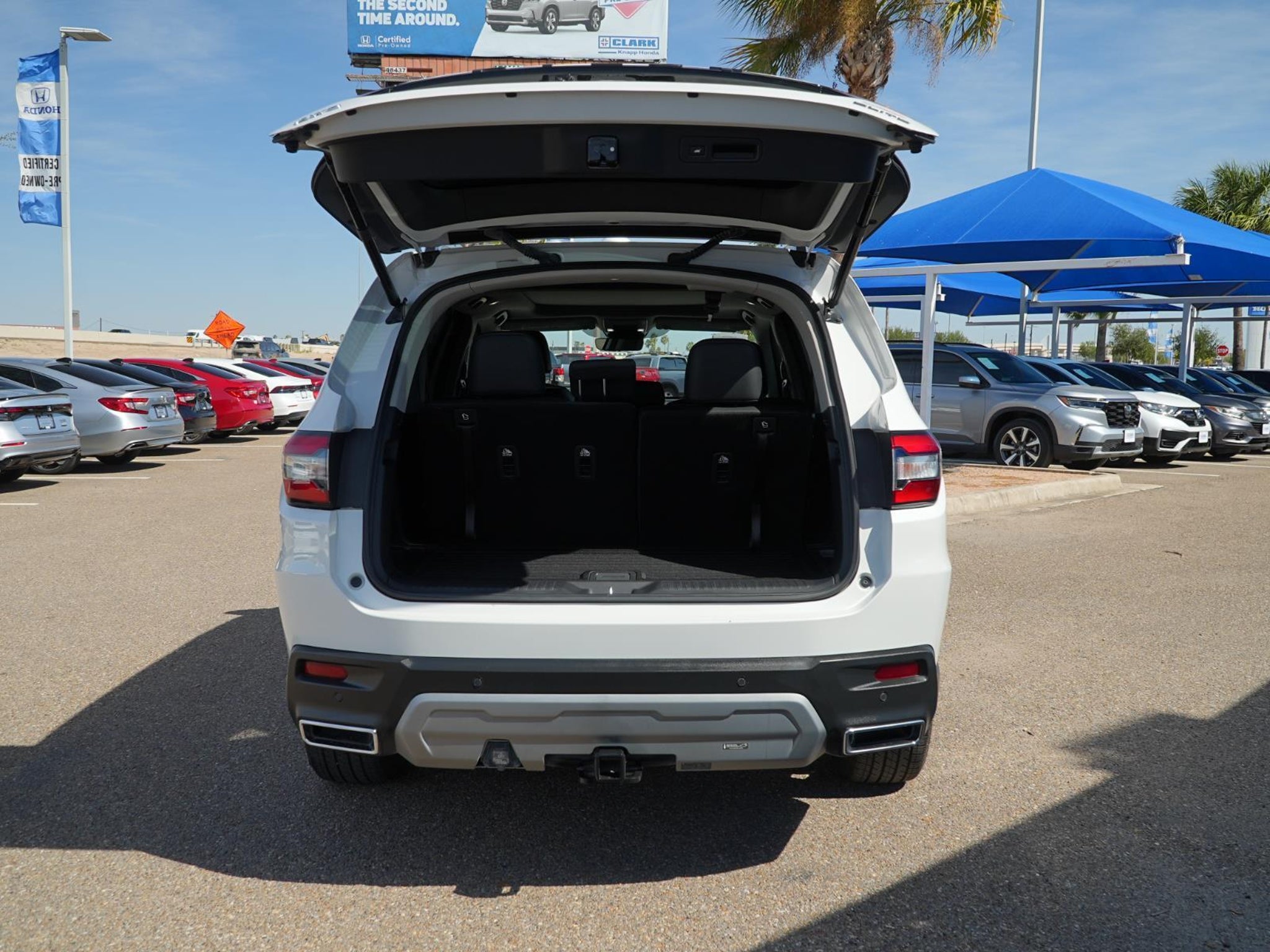 This Certified 2023 Honda Pilot Elite|has a Platinum White Pearl exterior and an Black interior color. 30,446 miles. Stock Number 55572A. You can connect with us by calling . No Accidents! One Owner! Important Package and Feature Information Safety and Security Forward collision mitigation - Forward thinking. You look away for just a second and suddenly the vehicle in front of you has stopped. That's when the forward collision mitigation system comes to life. When it senses an impending impact, it will activate a combination of features to help prevent or reduce the severity of an accident. Forward collision mitigation is always looking ahead. Pedestrian impact prevention - An extra step toward safety. Pedestrians don't always stop, look, and listen, but with Pedestrian Impact Prevention, your vehicle is equipped to better see them and avoid them. This system constantly monitors the road ahead to identify and track pedestrians. It projects that image to an interior display screen, AND should an impact become likely, Pedestrian impact prevention takes steps to avoid a collision. Hands-on cruise control. Set it and forget it. Road trips used to be stressful. Cruise control only managed speed, but not distance or safety. Now, with hands-on cruise control, simply set your desired speed and let sensor technology maintain a safe distance between you and surrounding vehicles. It slows you down; speeds you up and even keeps you in your own lane. Meet your ultimate co-pilot with hands-on cruise control. Technology and Telematics Apple CarPlay/Android Auto smart device wireless mirroring Mobile hotspot - WiFi on the fly. Connect your devices to the Internet through your vehicle's private mobile hotspot and take the internet wherever your journey takes you, without eating up your data allowance. Find the hotspot with mobile hotspot. PLATINUM WHITE PEARL Cars have been part of the Clark family since 1933 when we opened our first dealership. After building a strong reputation with our family owned and operated business, we have expanded our offerings to include trusted automakers like Honda. Now a 33-year Honda veteran, Clark Knapp Honda is proud to offer friendly service in a beautiful, modern building. This newer and larger facility is home to an express service lane, complimentary Wi-Fi, a kids entertainment zone, and an on-site full-service Allstate insurance agency. Our updated modern facility puts drivers and their families first.