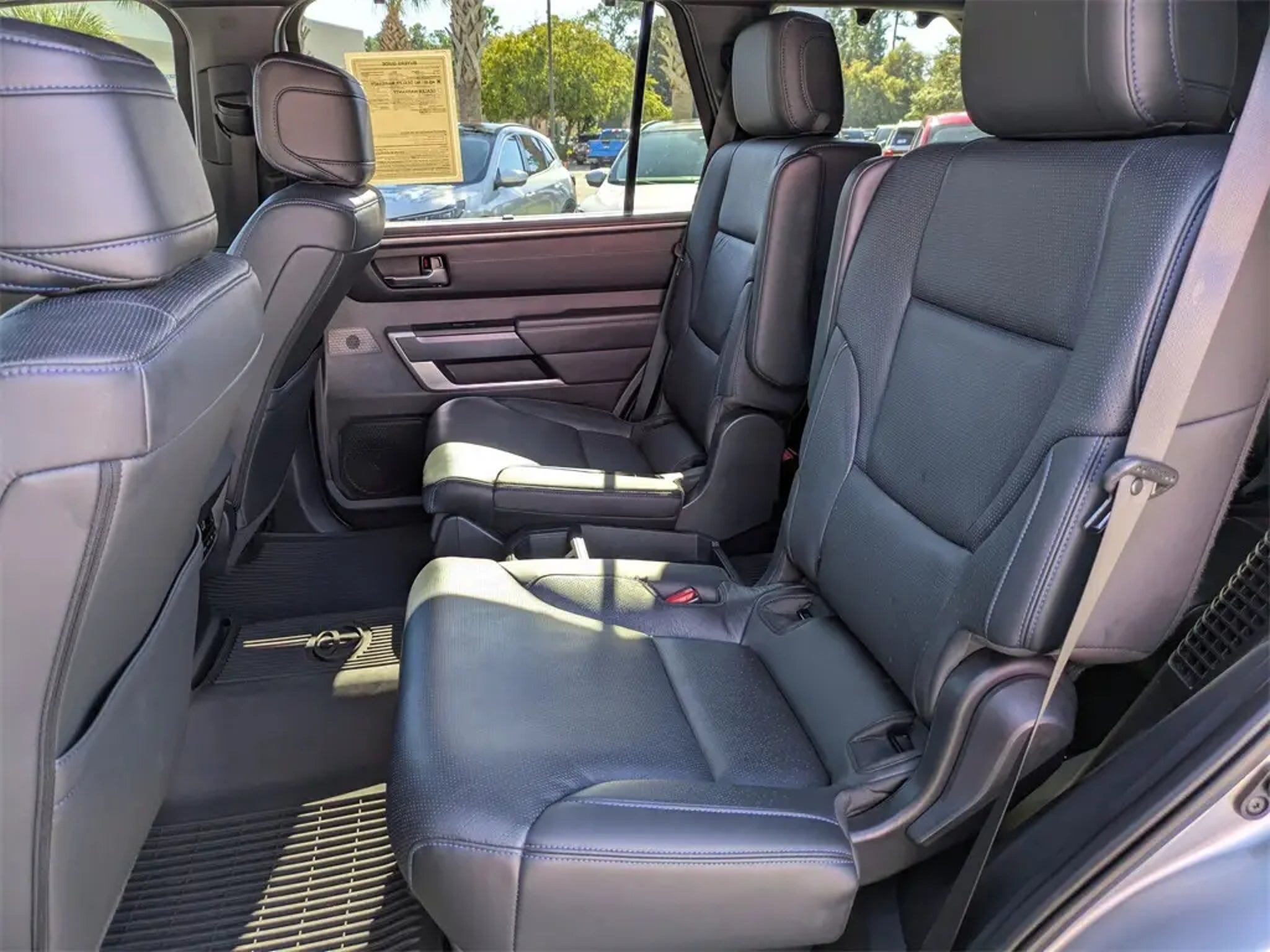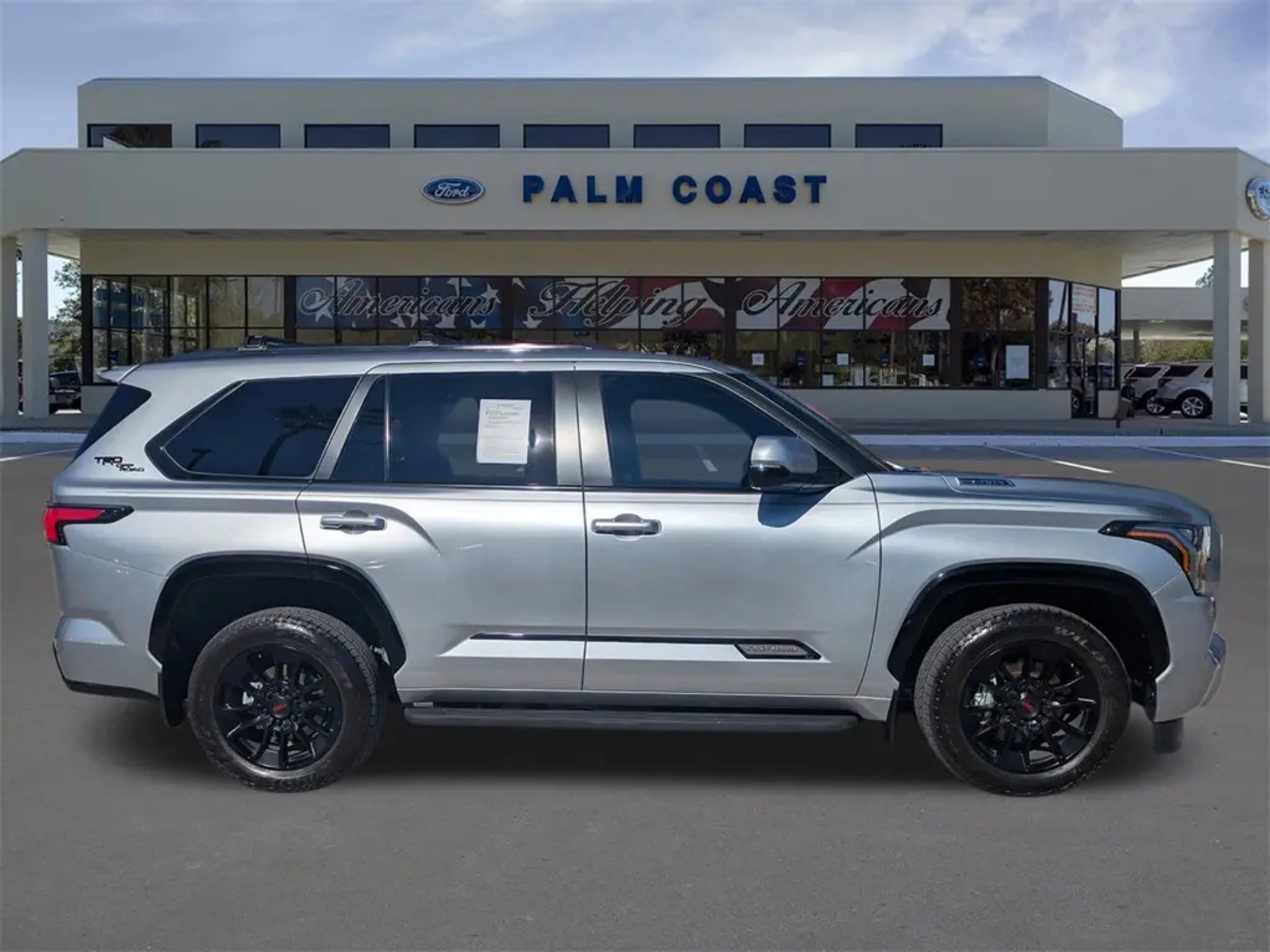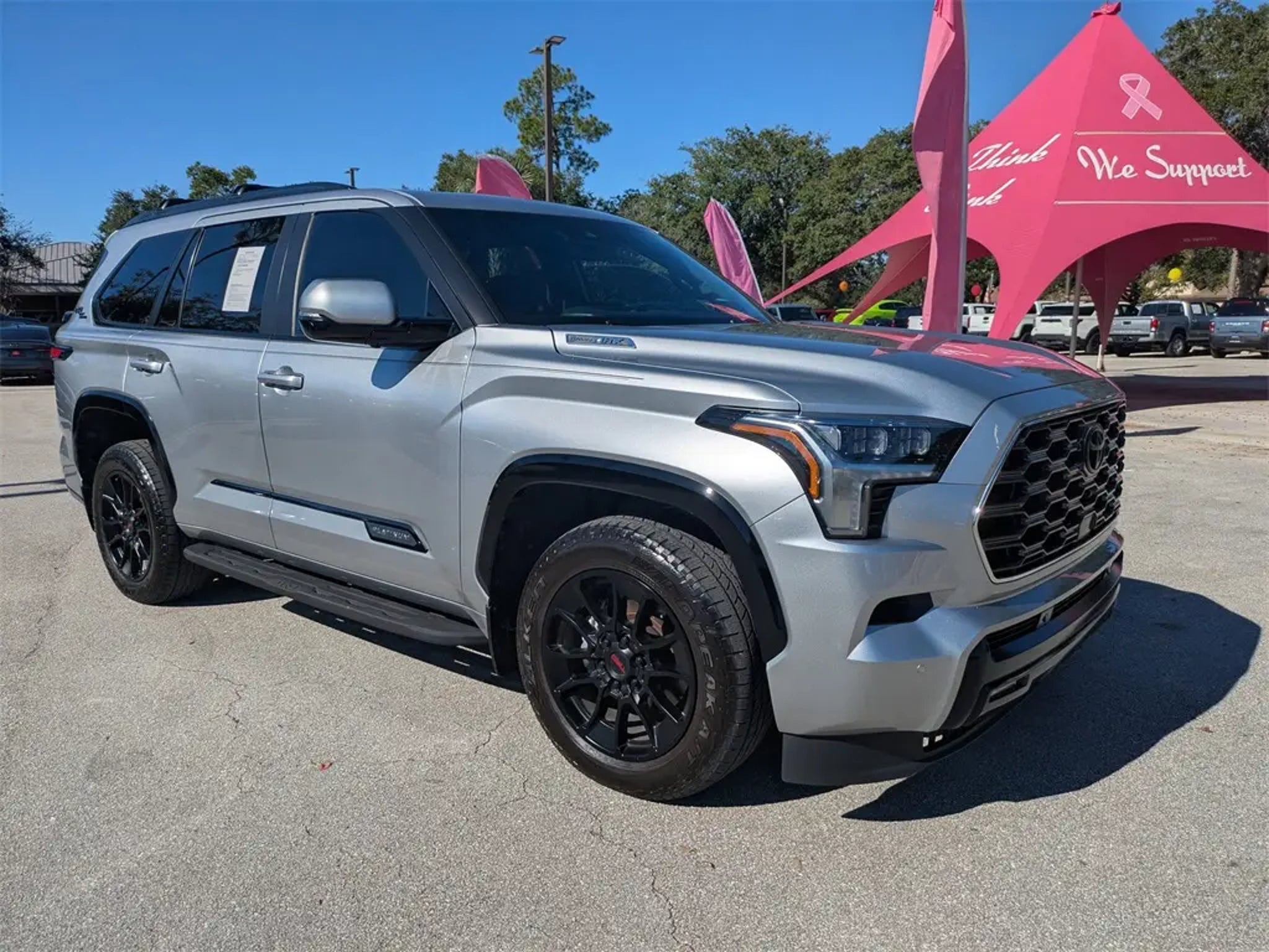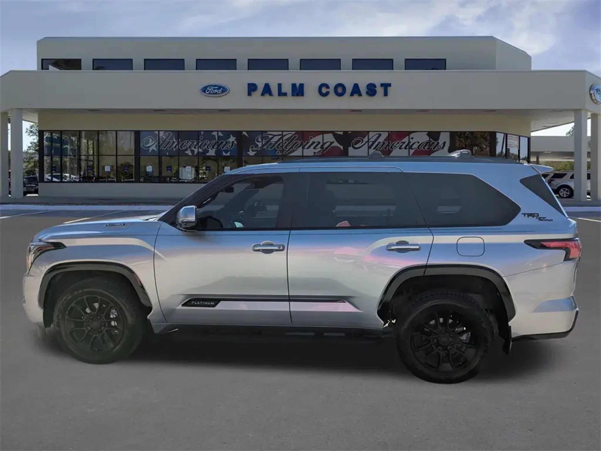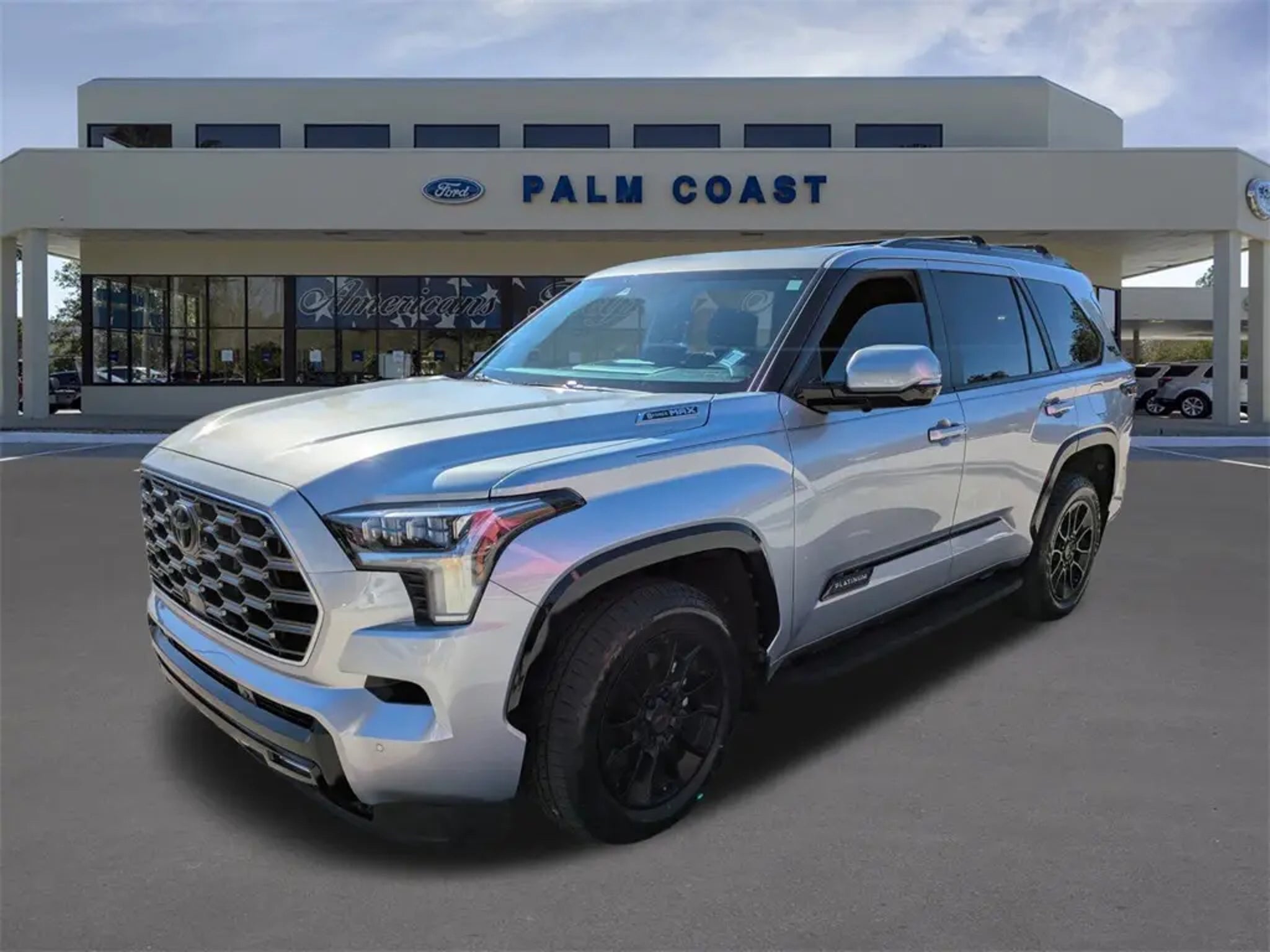 2024 Toyota Sequoia Platinum 4WD V6 Hybrid 10-Speed Automatic Celestial Silver Metallic V6 Hybrid, 10-Speed Automatic, 4WD. Clean CARFAX. CARFAX One-Owner. Priced below KBB Fair Purchase Price! Equipped with TRD Front Skid Plate (Under Cover & Protector), TRD Off-Road Package (Cast Aluminum Step & Step Cover, Multi-Terrain Back Monitor, and Wheels: 20 Black TRD Alloy), V6 Hybrid, 10-Speed Automatic, 4WD, 14 Speakers, 3.31 Axle Ratio, 3rd row seats: split-bench, 4-Wheel Disc Brakes, ABS brakes, Air Conditioning, Alloy wheels, AM/FM radio: SiriusXM, Anti-whiplash front head restraints, Apple CarPlay/Android Auto, Auto High-beam Headlights, Auto tilt-away steering wheel, Auto-dimming door mirrors, Auto-dimming Rear-View mirror, Automatic Power Extending Running Boards, Automatic temperature control, Brake assist, Bumpers: body-color, Compass, Delay-off headlights, Driver door bin, Driver vanity mirror, Dual front impact airbags, Dual front side impact airbags, Electronic Stability Control, Emergency communication system: Safety Connect (10-year trial), Exterior Parking Camera Rear, Front anti-roll bar, Front Bucket Seats, Front Center Armrest w/Storage, Front dual zone A/C, Front fog lights, Front reading lights, Front wheel independent suspension, Fully automatic headlights, Garage door transmitter: HomeLink, Head Up Display (HUD), Headlight cleaning, Heated & Ventilated Front Seats, Heated door mirrors, Heated front seats, Heated rear seats, Heated steering wheel, Illuminated entry, Knee airbag, Leather Seat Trim, Leather steering wheel, Low tire pressure warning, Memory seat, Navigation system: Drive Connect (1 year trial) includes Cloud Navigation with real time traffic and Google POI, Occupant sensing airbag, Outside temperature display, Overhead airbag, Overhead console, Panic alarm, Passenger door bin, Passenger vanity mirror, Power door mirrors, Power driver seat, Power Liftgate, Power moonroof, Power passenger seat, Power steering, Power windows, Premium audio system: JBL, Radio: JBL Premium Audio System, Rain sensing wipers, Rear air conditioning, Rear reading lights, Rear seat center armrest, Rear window defroster, Rear window wiper, Reclining 3rd row seat, Remote keyless entry, Security system, Speed control, Speed-sensing steering, Split folding rear seat, Spoiler, Steering wheel mounted audio controls, Tachometer, Telescoping steering wheel, Tilt steering wheel, Traction control, Trip computer, Turn signal indicator mirrors, Variably intermittent wipers, Ventilated front seats, Ventilated rear seats, Voltmeter, and Wheels: 20 Machined-Finish Black Alloy. Palm Coast Ford, We're Not That Far! Free deliveries within 200 miles. Call us today to experience the difference, .
