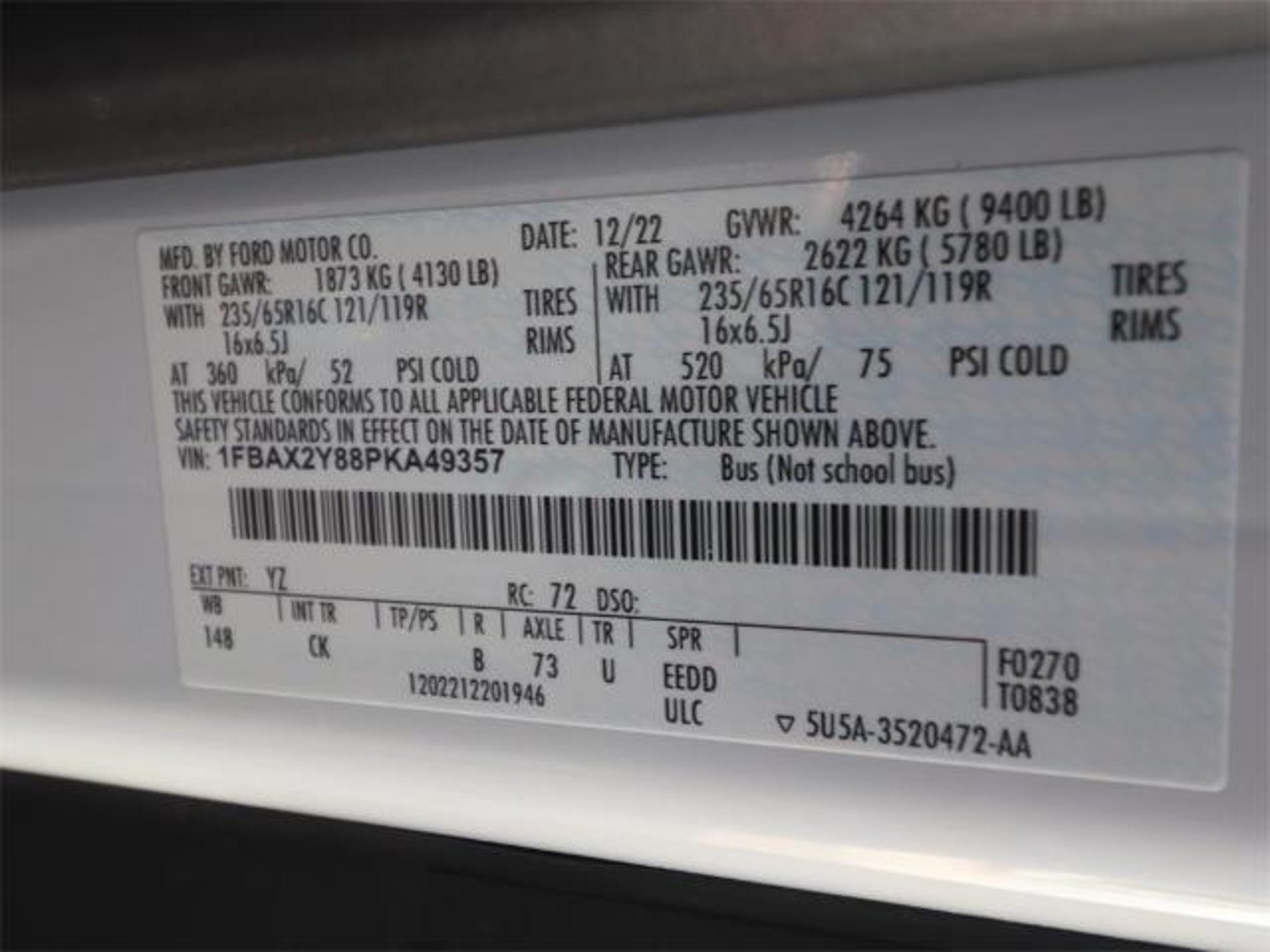 FACTORY CERTIFIED PROTECTIONS INCLUDED! ECONOMICAL FINANCE OPTIONS AVAILABLE FOR EVERYONE! RECON INCLUDED NO HIDDEN FEES! FREE TRANSPORTATION ASSISTANCE ANYWHERE! HIGHEST QUALITY CARS, TRUCKS, VANS! STRESS FREE BUYING EXPERIENCE! Odometer is 3630 miles below market average! Certified. GREAT CUSTOM PASSENGER VAN SELECTION!, BIG SCREEN NAVIGATION!, ALLOY WHEELS, BACK UP CAMERA, BLUETOOTH, KEYLESS ENTRY, THIRD ROW SEATING, FORD PASS CONNECT, HOT SPOT TELEMATICS MODEM, REMAINDER OF FACTORY WARRANTY!, FORD FACTORY CERTIFIED PROTECTION, 4G/LTE WIFI HOTSPOT!, FULLY SERVICED! READY TO ROLL!, CLEAN PASSENGER VANS TODAY, DELIVERED NOW!, 4GWI-FI, COLLISION ASSIST, LANE KEEPING SYSTEM, FORWARD COLLISION WARNING, BEST SELECTION! CERTIFIED PROTECTION!, RELIABLE AS SUNRISE!, PLEASE SEE 1 OWNER FLAWLESS CARFAX!, RECON INCLUDED NO HIDDEN FEES!, 15 PASSENGER MEDIUM ROOF TRANSIT 350 FORD CERTIFIED!, FORD CERTIFIED PROTECTION GOOD ANYWHERE IN THE USA!, ADULT OWNED, PRIDE IN OWNERSHIP SHOWS, DONT DELAY, APPLE CAR PLAY!, FACTORY CERIFIED 15 PASSENGER XLT 302/A OPTION PKG! ALL THE POWER GOODIES REAR ROOF A/C, BIG SCREEN NAVIGATION!, 15-Passenger Seats, 3rd row seats: split-bench, 4-Wheel Disc Brakes, 4th-Row Bench Seat, 8 Speakers, ABS brakes, Air conditioning, AM/FM radio, Auto High-beam Headlights, Automatic temperature control, Dark Palazzo Gray Cloth Bucket Seats, Dual front impact airbags, Dual front side impact airbags, Electronic Air Temperature Control, Electronic Stability Control, Front Bucket Seats, Front fog lights, Fully automatic headlights, Heated door mirrors, Illuminated entry, Low tire pressure warning, Navigation system: Connected Navigation, Order Code 302A, Panic alarm, Power door mirrors, Power steering, Power windows, Radio: AM/FM Stereo w/SYNC 4 & Nav, Rain sensing wipers, Rear air conditioning, Remote keyless entry, Speed control, Steering wheel mounted audio controls, Tachometer, Telescoping steering wheel, Tilt steering wheel, Traction control, Trip computer, Turn signal indicator mirrors, Variably intermittent wipers. Oxford White 2023 Ford Transit-350 XLT RWD 10-Speed Automatic with Overdrive 3.5L V6 Flex Fuel FINANCE WITH US! LOWEST RATES! BEST FINANCE OPTIONS! STRESS FREE PAYMENT PLANS! ASK ABOUT OUR SIGN AND DRIVE PAYMENT OPTIONS! WE MAKE IT EASY! Buyer must qualify for all EV government credits and/or cash back. Call for details.