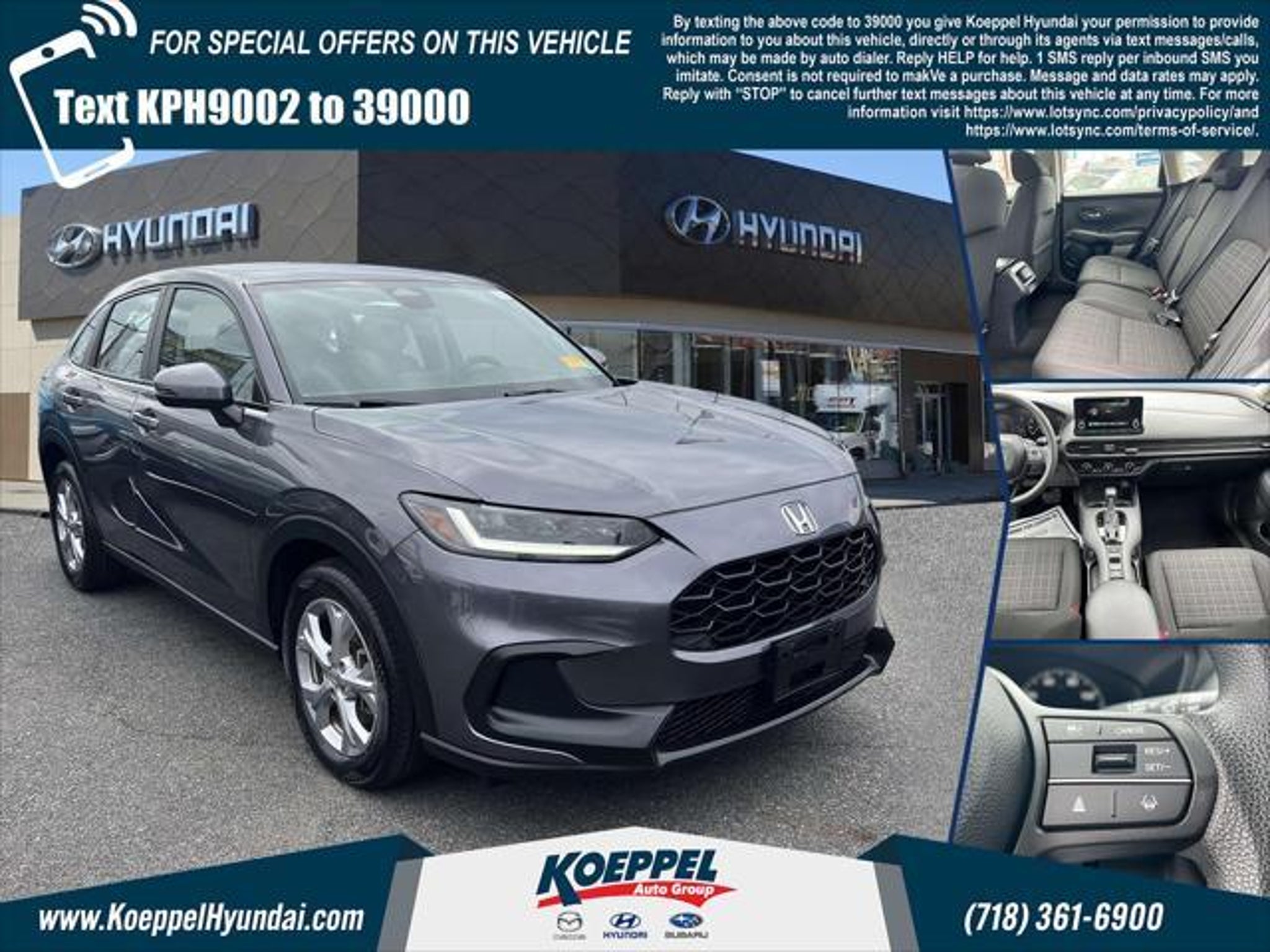 Here at Koeppel Hyundai, it is our mission to be your preferred dealership for Hyundai sales service in New York City. We have a wide selection of new Hyundai and used vehicles, and offer expert auto repair and parts and customer service with a smile! KBB Fair Market Range High: $22,733 KBB Fair Market Range Low: $20,611 CARFAX One-Owner. Clean CARFAX. Gray 2023 Honda HR-V LX AWD CVT 2.0L I4 DOHC 16V i-VTEC