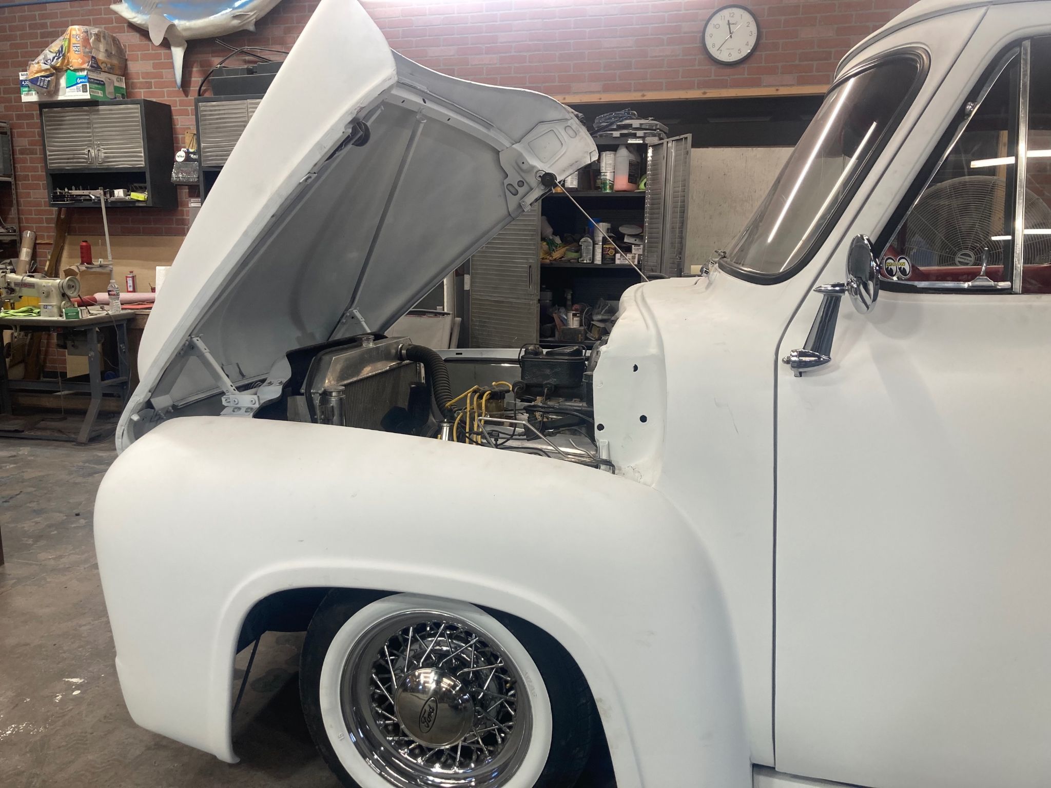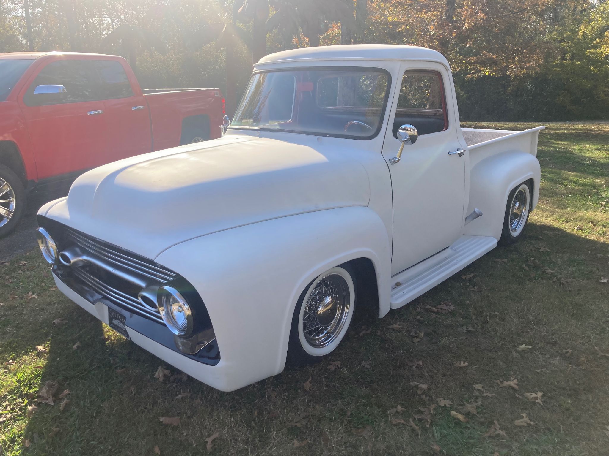 AND BIKES. THIS COOL TRUCK HAS SOM NEAT FEATURES. 1954 OLDS DASH, AND GRILL. 1952 BUICK TAIL LIGHTS. CUSYOM TAIL GATE. LATE MODEL FORD MUSTANG 302 V-8 5 SPEED, POWER DISC BRAKES, VOLARY FRONT END WITH TORTION BAR SYSPENSION, 9 INCH REAR END. REVERSE FORWARD HOOD. NEW ALUMINUM RADIATOR. NEW CHROME TILT COLUMN WITH CUSTOM STEERING WHEEL.NEW RED CUSTOM INTERIOR. DRIVES THE BEST. RUNS STRONG.