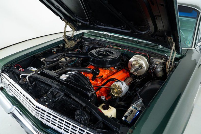 This 1963 Chevrolet Impala captures the best of early 1960s American style and craftsmanship. Under the hood sits a smooth-running 283 C. I. V8 paired with a 2-speed Powerglide transmission, providing effortless cruising power that defined the era. The Ivy Green Poly exterior pairs beautifully with the green cloth interior, giving this Chevy Impala a classic and elegant look from every angle.