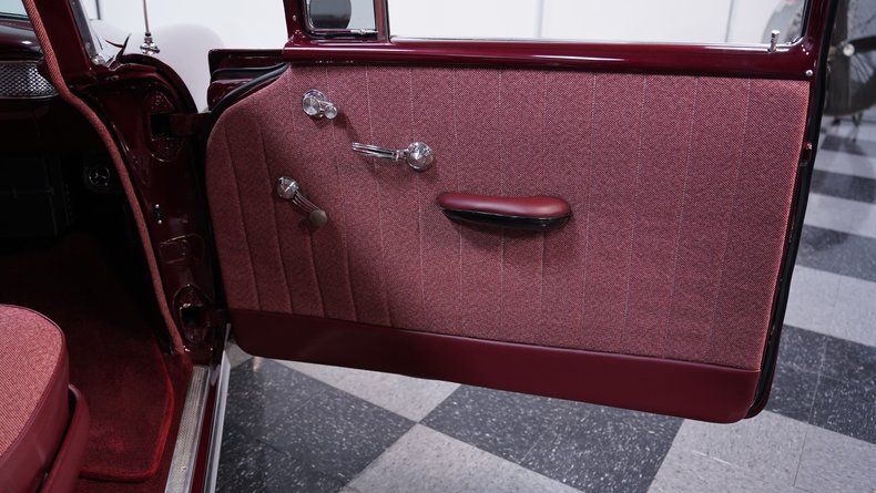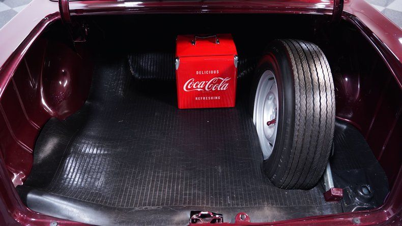 The very tasteful burgundy interior blends vinyl and cloth and reflects the same high standards as what's on display outside the doors, with a split-bench front seat that's free of any loose stitching or rips, door panels that sit flush against their surrounding steel, and an expanse of carpeting that also shows nicely. The tilting column features an aftermarket steering wheel, and the dash area beyond it is in fine shape, with a recently-installed stock-style instrument cluster sporting clear, easily readable gauges. At the center of the dash, an AM/FM stereo with an auxiliary port stands ready to cater to your audio requests, and there's a Vintage Air climate control system on board to keep you and your passengers comfortable throughout the year.