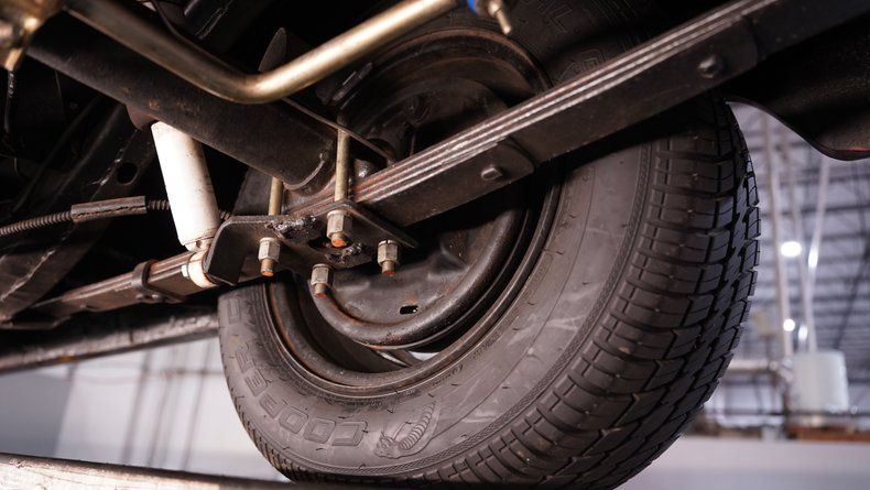 There's plenty to like beneath the hood, where a 350-cubic-inch crate V8 is ready to supply plenty of power, surrounded by fresh hoses and belts. It's outfitted with an Edelbrock 4-barrel carburetor and intake manifold and exhales into a pair of Sanderson Street Rod shorty headers that lead to a pair of FlowMaster mufflers. Sway bars at both ends minimize body roll and make this classic much nimbler while cornering, while air shocks in the back offer a level of adjustability not available with a stock configuration.