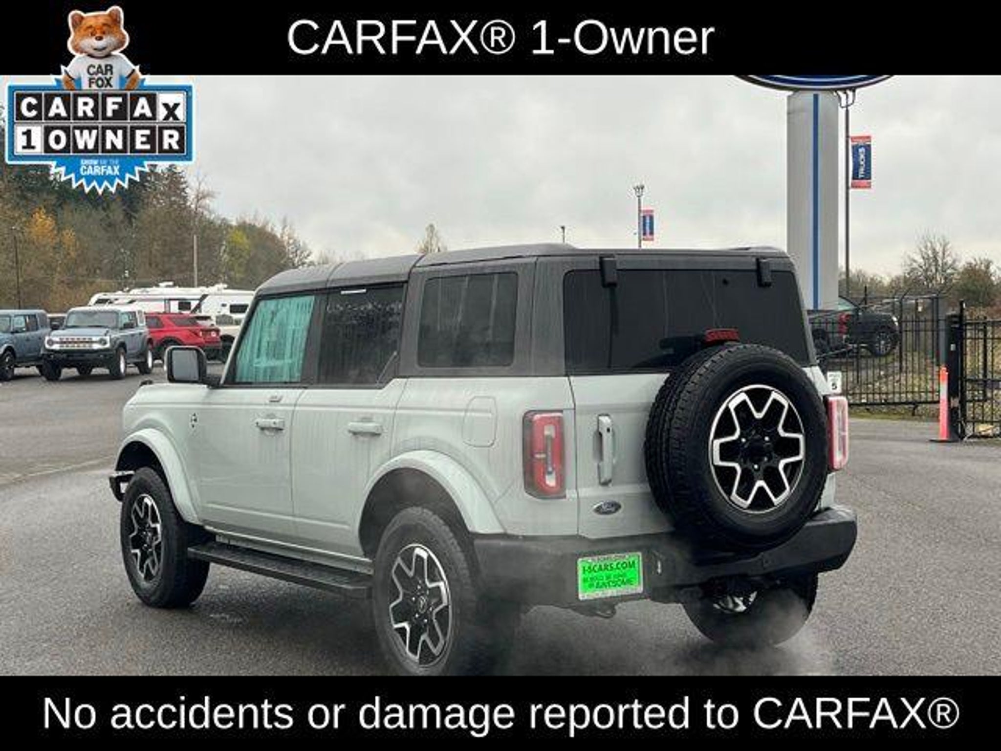 This 2023 Ford Bronco comes equipped with, Bronco Outer Banks Advanced, 4WD, 12 LCD Capacitive Touchscreen w/Swipe Capability, 2 Smart Charging USB Ports In Dashboard, 360-Degree Camera, 4-Wheel Disc Brakes, 7 Speakers, ABS brakes, Adaptive Cruise Control, Additional Sound Deadening, Air Conditioning, AM/FM radio: SiriusXM with 360L, AM/FM Stereo, Auto High-beam Headlights, Brake assist, Carbonized Gray Molded-In-Color Hard Top, Compass, Connected Built-In Navigation, Delay-off headlights, Driver door bin, Driver vanity mirror, Dual front impact airbags, Dual front side impact airbags, Electronic Stability Control, Emergency communication system: 911 Assist, Equipment Group 314A Lux Package, Evasive Steering Assist, Exterior Parking Camera Rear, Ford Performance Heavy-Duty Modular Front Bumper, Front & Rear Floor Liners w/o Carpet Floor Mats, Front anti-roll bar, Front Bucket Seats, Front Center Armrest, Front License Plate Bracket, Front Parking Sensors, Front reading lights, Front Row Top Panels Storage Bag, Front wheel independent suspension, Fully automatic headlights, Heated door mirrors, Heated Steering Wheel, Illuminated entry, Information on Demand Panel, Integrated roll-over protection, Keyless Entry Keypad, Low tire pressure warning, Occupant sensing airbag, Outside temperature display, Overhead airbag, Overhead console, Panic alarm, Passenger door bin, Passenger vanity mirror, Power door mirrors, Power steering, Power windows, Radio data system, Radio: B&O Sound System by Bang & Olufsen, Remote keyless entry, Security system, Sideview Mirrors, SiriusXM Radio w/360L, Speed control, Split folding rear seat, Steering wheel mounted audio controls, SYNC 4, Tachometer, Telescoping steering wheel, Tilt steering wheel, Traction control, Trip computer, Universal Garage Door Opener, Variably intermittent wipers, Wireless Charging Pad, Bronco Outer Banks Advanced, 4WD. Priced below KBB Fair Purchase Price! CARFAX One-Owner. Clean CARFAX. Odometer is 10863 miles below market average! Cactus Gray 2023 Ford Bronco Outer Banks 4WD 10-Speed Automatic 2.7L EcoBoost V6 We know that prospective customers are extremely well educated when researching their next vehicle. Awesome Ford has made it easy to get all the available vehicle information so you can spend less time researching and more time enjoying your purchase. Check out our new specials and used specials for additional savings on your next vehicle by clicking on the Dealership link on this page. As a premier Washington Ford dealer, we have a huge selection of new and used vehicles from which to choose.