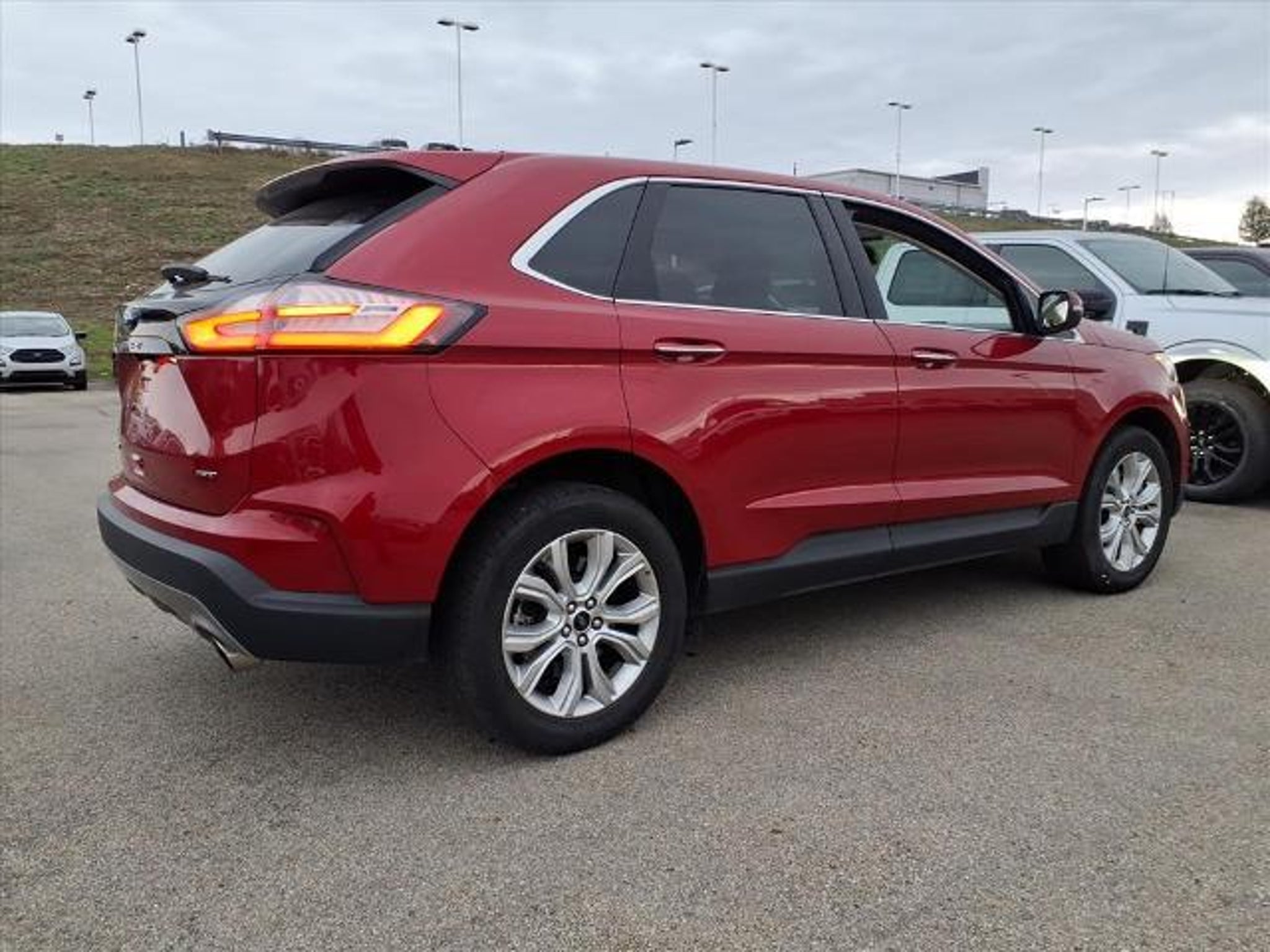 This 2024 Ford Edge Titanium is a certified pre-owned vehicle with a carfax report available. It has driven 26,271 miles and is powered by an all wheel drive 2.0 liter EcoBoost Turbo I4 250hp 275 lb-ft engine with direct injection. The rapid red metallic tinted clearcoat exterior gives it a sleek look while the medium soft ceramic interior provides comfort and style. It has a crash test rating of 5 out of 5 stars and features such as touch screen display, Bluetooth audio connection, blind spot sensor, hill start assist, on demand four wheel drive, Bluetooth phone connectivity, leather seats, and more. With its impressive fuel economy in city and highway driving of 21 mpg and 28 mpg respectively, this car is sure to be a great choice for anyone looking for a reliable and efficient ride.