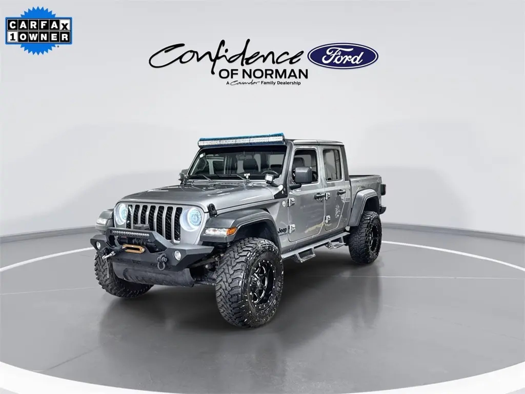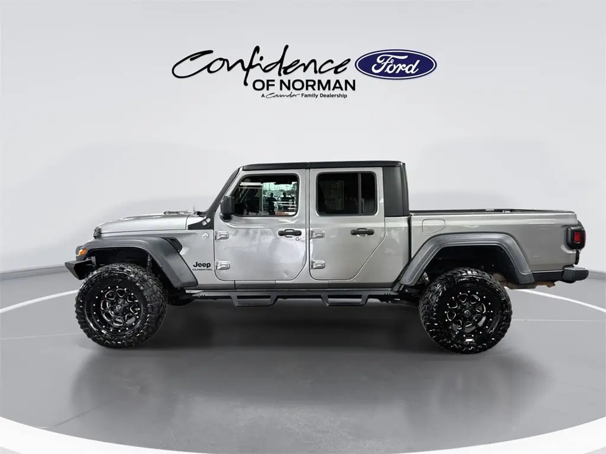 Welcome to Confidence Ford of Norman, a Cavender Auto Family dealership. This vehicle is located at 825 N Interstate Dr, Norman, OK 73069. Here at Cavender, we build relationships based on trust and integrity to exceed your expectations in your ownership experience. Quite simply, we strive to Make Confidence Happen! So stop by and allow us to serve your automotive needs we would love to meet you. Billet Silver Metallic Clearcoat 2021 Jeep Gladiator Sport 4WD 3.6L V6 24V VVT 8-Speed Automatic Features: Auxiliary Switch Group (240 Amp Alternator, 700 Amp Maintenance Free Battery, and Auxiliary Switches), GVWR: 6,250 lbs w/Max Tow Package, Max Tow Package w/4.10 Axle Ratio (Anti-Lock 4-Wheel Disc Heavy Duty Brakes, Anti-Spin Differential Rear Axle, Black Molded-In-Color Fender Flares (2-Piece), Class IV Hitch Receiver, Dana M210 Wide Front Axle, Dana M220 Wide Rear Axle, Daytime Running Lamp System, Heavy-Duty Engine Cooling, and Trailer Hitch Zoom), Quick Order Package 24B, ABS brakes, Black 3-Piece Hard Top, Freedom Panel Storage Bag, Rear Sliding Window, Rear Window Defroster, 110 mph Vehicle Max Speed Calibration, 4-Wheel Disc Brakes, 8 Speakers, Air Conditioning, AM/FM radio, Brake assist, Cloth Low-Back Bucket Seats, Compass, Delay-off headlights, Driver door bin, Driver vanity mirror, Dual front impact airbags, Dual front side impact airbags, Electronic Stability Control, For More Info, Call 800-643-2112, Front anti-roll bar, Front Bucket Seats, Front Center Armrest w/Storage, Front fog lights, Front reading lights, GPS Antenna Input, Integrated roll-over protection, Low tire pressure warning, MOPAR All-Weather Floor Mats (DISC), Normal Duty Suspension, Occupant sensing airbag, Outside temperature display, ParkView Rear Back-Up Camera, Passenger door bin, Passenger vanity mirror, Power steering, Radio data system, Radio: Uconnect 3 w/5' Display, Rear anti-roll bar, Rear reading lights, SiriusXM Radio Service, SiriusXM Satellite Radio, Speed control, Split folding rear seat, Steering wheel mounted audio controls, Tachometer, Telescoping steering wheel, Tilt steering wheel, Traction control, Trip computer, Variably intermittent wipers, and Wheels: 17' x 7.5' Black Steel Styled. CARFAX One-Owner. Clean CARFAX.