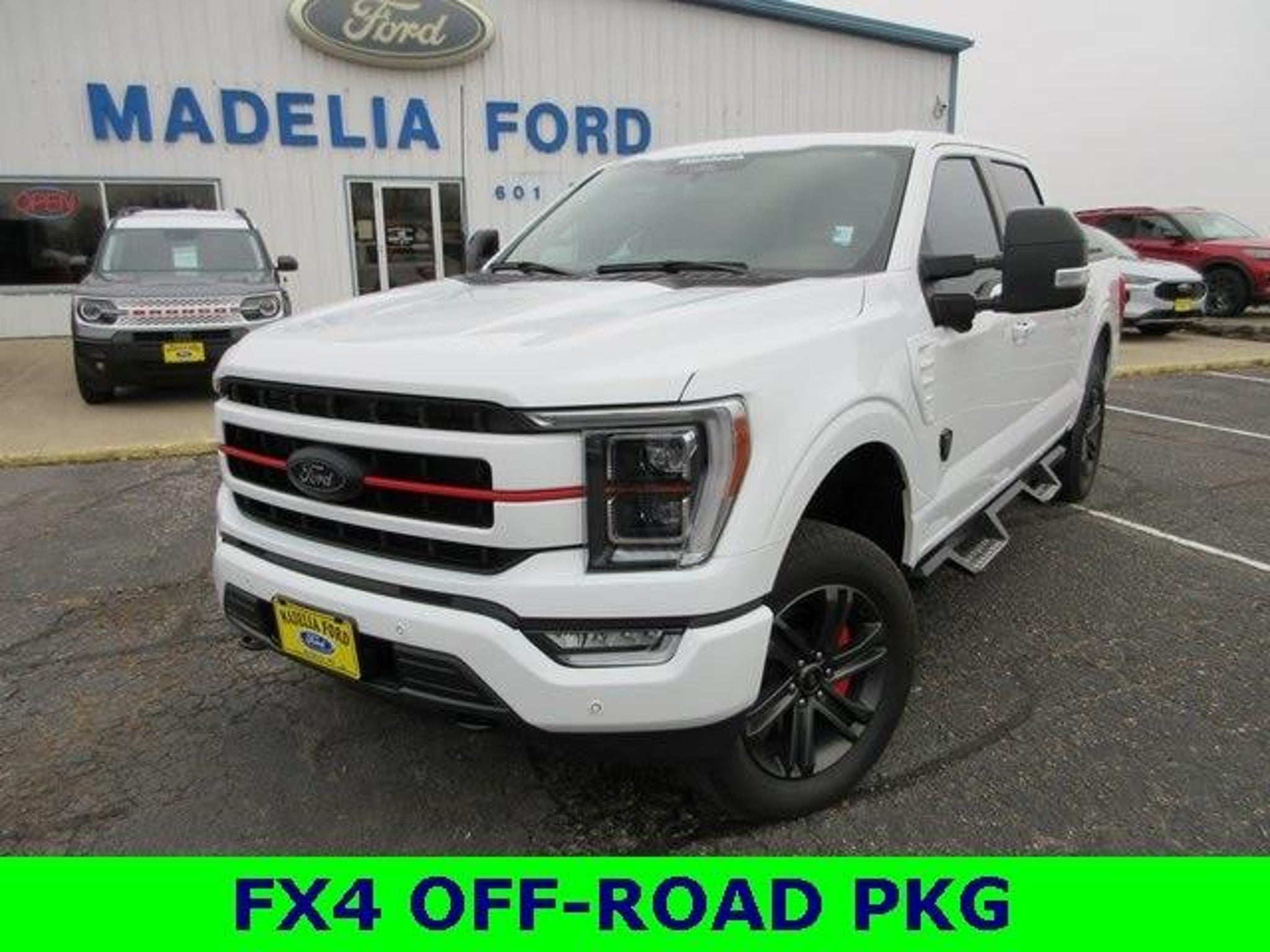 Recent Arrival! This Ford F-150 is well equipped and includes these key features and benefits, F-150 Lariat, 3.5L PowerBoost Full-Hybrid V6, 4WD, 2nd Row Heated Seats, Accent-Color Angular Step Bars, Bed Utility Package, Body-Color Front & Rear Bumpers, Box Side Decals, BoxLink, Chrome Single-Tip Exhaust, Class IV Trailer Hitch Receiver, Connected Built-In Navigation, Dark 2-Bar & 1 Minor Bar Style Grille, Electronic Locking w/3.73 Axle Ratio, Equipment Group 502A High, Evasive Steering Assist, Extended Range 36 Gallon Fuel Tank, Ford Co-Pilot360 Assist 2.0, FX4 Off-Road Package, Garage door transmitter, Hill Descent Control, Integrated Trailer Brake Controller, Intelligent Adaptive Cruise Control w/Stop & Go, Intersection Assist, Lariat Sport Appearance Package, LED Box Lighting, LED Projector w/Dynamic Bending Headlamps, Max Trailer Tow Package, Monotube Rear Shocks, Navigation system: Connected Navigation, Off-Road Tuned Front Shock Absorbers, Power Tailgate, Power Tilt/Telescoping Steering Column w/Memory, Pro Trailer Backup Assist & Pro Trailer Hitch Assist, Rain-Sensing Wipers, Rock Crawl Mode, Speed Sign Recognition, Tailgate Step w/Tailgate Work Surface, Twin Panel Moonroof, Wheels: 20 6-Spoke Dark Alloy Painted Aluminum, Wireless Charging Pad. 2023 Ford F-150 Lariat Oxford White Since 1945 at Madelia Ford it's about doing whatever it takes to make your experience a pleasant one. Whether you're coming in to buy or lease a new car or Certified Pre-Owned vehicle, or just need to get parts or service, you'll always get undivided attention from our entire staff. Going back FOUR Generations, everyone here at Madelia Ford is here to help your family, our friends and neighbors with a honest approach to buying a vehicle.