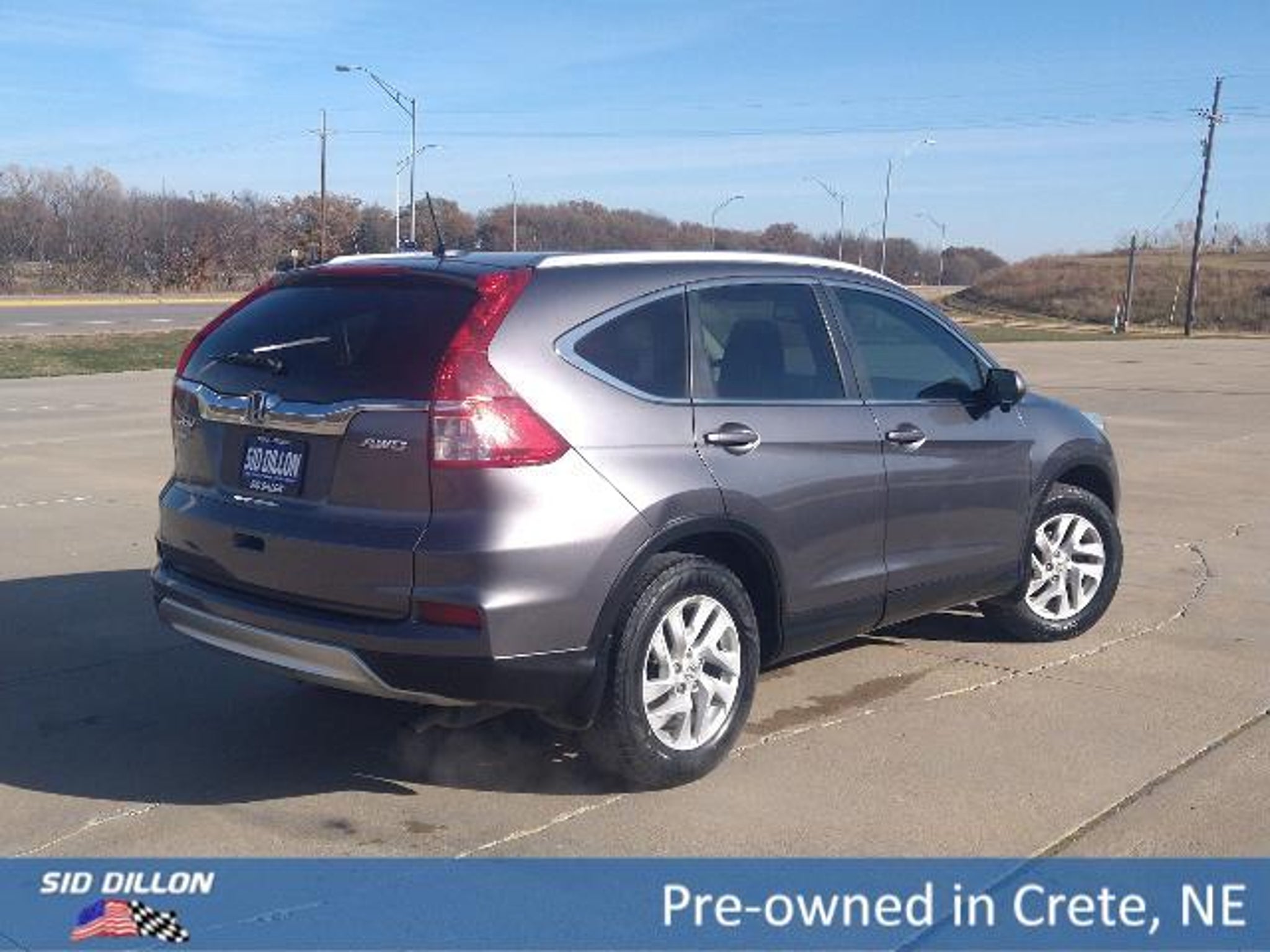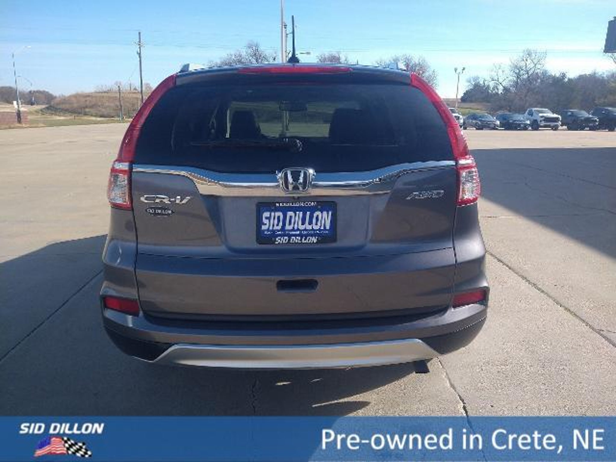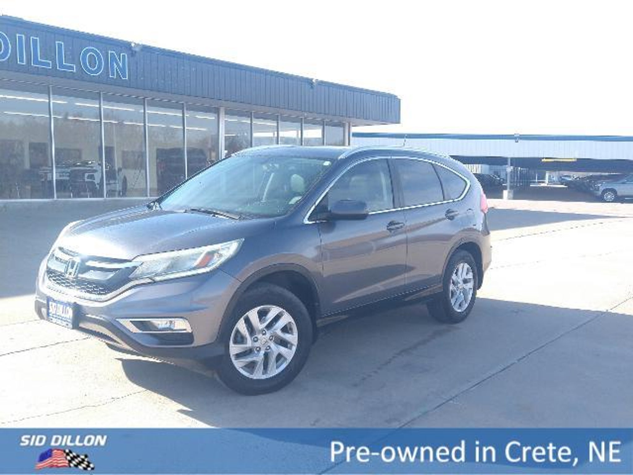 Safe and reliable, this 2015 Honda CR-V EX-L comfortably packs in your passengers and their bags with room to spare. Side Impact Beams, Right Side Camera, Rear Child Safety Locks, Outboard Front Lap And Shoulder Safety Belts -inc: Rear Center 3 Point, Height Adjusters and Pretensioners, Low Tire Pressure Warning.* Let the Honda CR-V Put Your Family's Safety First *Electronic Stability Control (ESC), Dual Stage Driver And Passenger Seat-Mounted Side Airbags, Dual Stage Driver And Passenger Front Airbags, Curtain 1st And 2nd Row Airbags, Back-Up Camera, Airbag Occupancy Sensor, ABS And Driveline Traction Control.* Expert Reviews!*As reported by KBB.com: * Winner, 2015 Kelley Blue Book Best Buy Award among small SUVs * Excellent resale value * High fuel efficiency * Easy-driving, car-like manners * Impressively large and useful interior* This Honda CR-V is a Safety Superstar! *KBB.com Brand Image Awards.*Fully-Loaded with Additional Options*Wheels: 17 Alloy, Valet Function, Trip Computer, Transmission: Continuously Variable w/Sport Mode, Tires: P225/65R17 102T All-Season, Tailgate/Rear Door Lock Included w/Power Door Locks, Strut Front Suspension w/Coil Springs.* Visit Us Today *Stop by Sid Dillon Ford Lincoln located at 2455 Hwy 33, Crete, NE 68333 for a quick visit and a great vehicle!*Thank you for choosing to visit Sid Dillon in Crete, Nebraska*Sid Dillon Crete has the brand new, used, or certified vehicle to meet your needs. We go the extra mile when you bring your vehicle in for service by providing free wash and vacuum. Schedule service on your vehicle in Crete at Sid Dillon. Contact our Internet Specialist at (402) 826-2668 for more information.