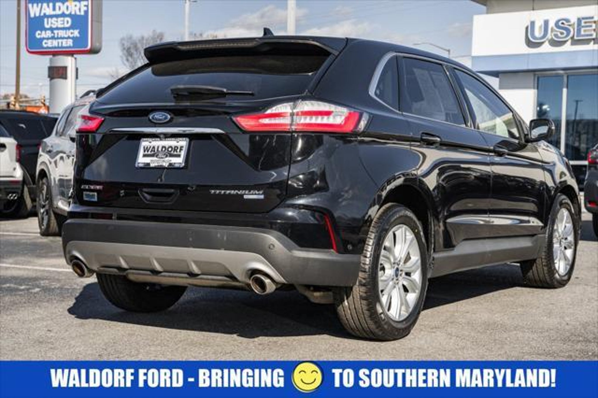 2020 Ford Edge Titanium AWD, Adaptive Cruise Control w/Stop & Go, Adaptive LED Headlamps, Auto-Dimming Driver's Sideview Mirror, Enhanced Active Park Assist, Equipment Group 301A, Evasive Steering Assist, Front 180-Degree Camera w/Split View & Washer, Heated Rear Seats, Lane Centering, Leather-Trimmed Heated/Cooled Sport Bucket Seats, Panoramic Vista Roof, SiriusXM Traffic & Travel Link, Voice-Activated Touchscreen Navigation System. 21/28 City/Highway MPG Odometer is 13374 miles below market average! Agate BlackOpen your door to the world of adventures with the sleek Agate Black 2020 Ford Edge. The Automatic EcoBoost 2.0L I4 GTDi DOHC Turbocharged VCT is built for the long haul, and packed with features such as, Equipment Group 301A (Adaptive Cruise Control w/Stop & Go, Adaptive LED Headlamps, Auto-Dimming Driver's Sideview Mirror, Enhanced Active Park Assist, Evasive Steering Assist, Front 180-Degree Camera w/Split View & Washer, Heated Rear Seats, Lane Centering, Leather-Trimmed Heated/Cooled Sport Bucket Seats, Panoramic Vista Roof, SiriusXM Traffic & Travel Link, and Voice-Activated Touchscreen Navigation System) and AWD. If you think the pictures look pretty just wait until you see it in your driveway! This Edge is big enough to fit everything you need for your day, plus whatever else life throws at you.Waldorf Ford in Waldorf, MD has the DC Metro Areas best value Pre Owned Used Cars, SUV's and Trucks! Call us at (240) 427-1373 or email us now and lock in the special E-Price on your next vehicle! Waldorf Ford has been a leading provider of great deals and phenomenal prices for customers in the DC Metro Area for over 25 years. Our Waldorf Ford Dealer specializes in new and pre-owned Ford vehicles, Ford Motor Credit Finance, Ford Service, and Ford parts. Our knowledgeable Ford Sales and Ford Service staff has been trained and certified by Ford to provide amazing customer service. Since Waldorf Ford has been selling and servicing Maryland, Virginia and DC for such a long time, our experience is second to none! Ever since 1995! Just check out our reviews online! Waldorf Ford offers Video Walkaround, Test Drive, Online Paperwork, Delivery and many more services for our customers. Waldorf Ford proudly serves the Washington DC Metro Area, Fairfax, Alexandria, Falls Church, Bethesda, Rockville, Centreville, Manassas, Haymarket, Gainesville, Vienna, Suitland, La Plata, Leonardtown, Prince Frederick, Lexington Park, Upper Marlboro. ALL of Charles County, Calvert County and St. Marys County.