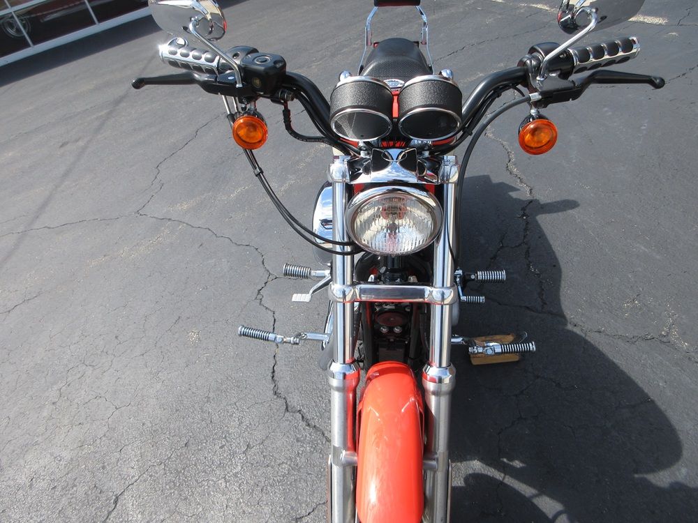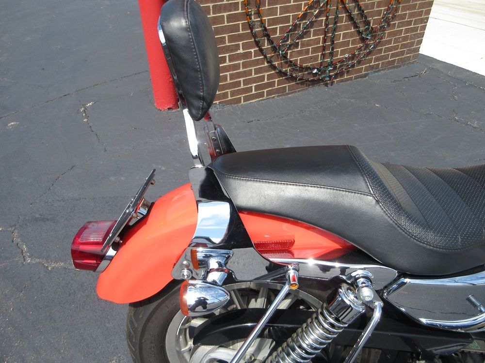 Since 1957 the Sportster has combined quick and responsive handling with a flat torque curve and unmistakable styling that make the Sportster a true American icon. The 1200R Roadster embodies a radical transformation with a redesigned powertrain that boasts high performance cams, high flow combustion chambers & ports and boasts an increased 6000 rpm redline making it a blast to ride! Other features worth mentioning are the dual front disc brakes, the tachometer and a completely redesigned fuel tank adorned with special graphics. This particular example was optioned in Racing Orange and has been accessorized with a factory security system, a quick release passenger backrest, custom driver & passenger footpegs with matching highway pegs, ISO handgrips, a Live to Ride gas cap and it sounds just plain nasty ripping through its performance exhaust system. It was just thoroughly serviced at which time it received a new battery, new tires, a new air filter, a carb kit as well as all new fluids, filters and gaskets. It is in excellent condition and only has 14,105 miles on it. We have priced it below its appraised value of $5,975 for a quick sale so if you like what you see time is of the essence!