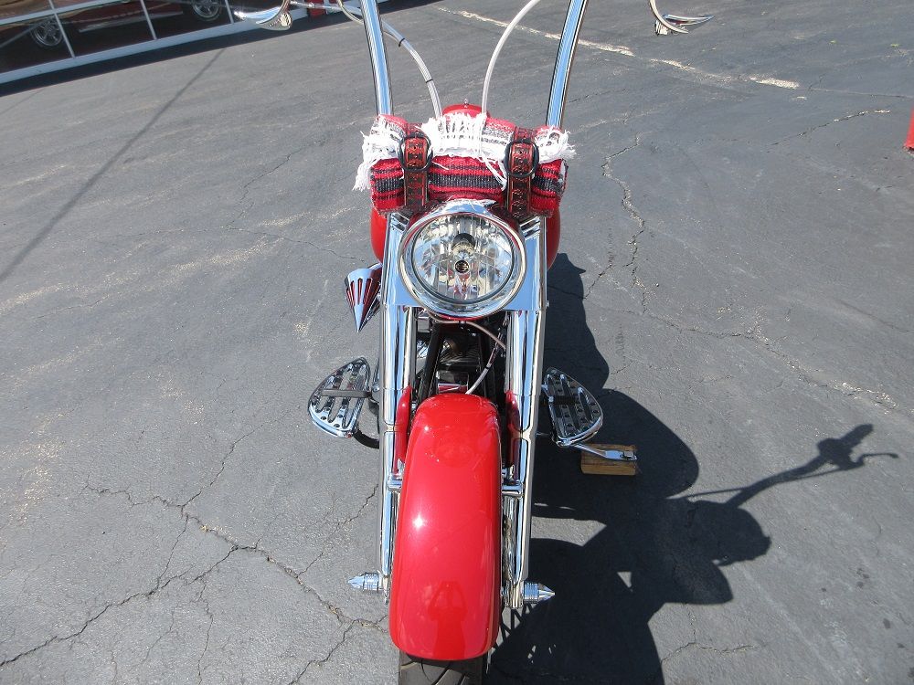 Designed to offer touring accommodations with early dresser styling the Heritage Softail Classic is equipped with a smooth riding black and chrome Twin Cam 88B engine. This particular example underwent a complete transformation to make it the sweet Cholo Softail that you see here. It was lowered front and rear and fit with a sweet set of fat spoke rims with a 21 up-front and an 18 on the rear both wrapped in whitewall tires. During the transformation there was an incredibly long list of chrome parts installed which include the chrome swing arm, 14” monkey bars, switch housings, switches, levers, billet dash, front end, axle covers, rotors, caliper covers, pulley, upper & lower belt guards, frame covers, primary cover, tranny cover, regulator cover, engine covers, tappet block covers, Arlen Ness mirrors, Arlen Ness floorboards, Pro 1 breathers, the performance air intake and it sounds just plain nasty ripping through its Samson 36” Fishtail exhaust. You will also appreciate that the rear blinkers are hidden in the fender struts, it has been upgraded with a Dynojet Power Commander V, it has Avon grips, a sweet La Pera solo seat as well as the iconic Mexican blanket roll strapped to the handlebars. Within the last 1,000 miles the bike was completely serviced which included a new battery, new gaskets, new tires, brakes, fresh fluids, new filters and a cam chain tensioner. All said and done well over $10,000 was spent transforming this bike into the sweet Cholo Softail you now see and that did not include the original cost of the bike. We are serious about finding it a new home and have priced it accordingly so if you like what you see we suggest that you reach out before it’s too late!
