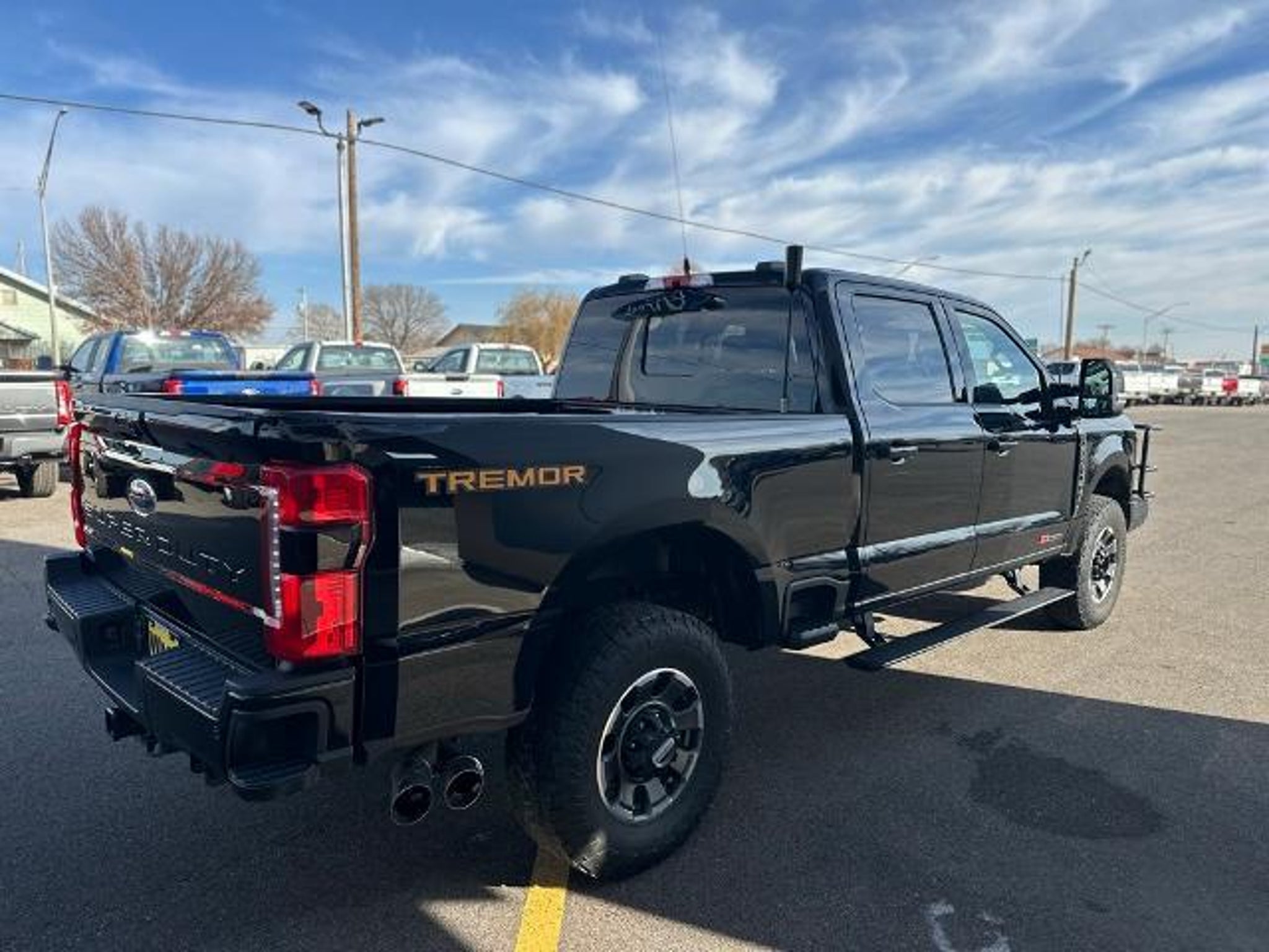 Agate Black Metallic 4WD Power Stroke 6.7L V8 DI 32V OHV Turbodiesel 10-Speed Automatic 4WD, 4-Way Adjustable Headrests, 4-Wheel Disc Brakes, 410 Amp Dual Alternators, 5th Wheel/Gooseneck Hitch Prep Package, 8 Speakers, ABS brakes, Adjustable pedals, Air Conditioning, All-Weather Floor Mats, Alloy wheels, AM/FM radio: SiriusXM with 360L, Auto High-beam Headlights, Auto tilt-away steering wheel, Auto-dimming Rear-View mirror, Automatic High Beam, Automatic temperature control, Black Tow Hooks, BLIS w/Cross-Traffic Alert, Body-Color Front & Rear Bumpers, Body-Color Mirror Caps, Brake assist, Bumpers: chrome, Chrome Exhaust Tip, Compass, Dark Painted Grille, Delay-off headlights, Driver door bin, Driver vanity mirror, Dual 68 AH/65 AGM Batteries, Dual front impact airbags, Dual front side impact airbags, Electronic Stability Control, Emergency communication system: SYNC 4 911 Assist, Engine Block Heater, Exterior Parking Camera Rear, F-250 >10K GVWR Package, Flow-Through Console, Front & Rear Wheel Well Liners (Pre-Installed), Front anti-roll bar, Front Bucket Seats, Front Center Armrest, Front dual zone A/C, Front fog lights, Front Leather-Trimmed 40/Console/40 Seats, Front reading lights, Front Sensing System, Fully automatic headlights, Garage door transmitter, Head-Up Display, Heated door mirrors, Heated front seats, Heated rear seats, Heated steering wheel, High Capacity 11.6 Axle Upgrade Package, Illuminated entry, Intelligent Adaptive Cruise Control w/Stop-and-Go, Lane Keeping Assist, Lane-Keeping System, Lariat Ultimate Package, Leather steering wheel, Low tire pressure warning, Memory seat, Navigation system: Connected Navigation, Order Code 608A, Outside temperature display, Overhead airbag, Overhead console, Panic alarm, Passenger door bin, Passenger vanity mirror, Pedal memory, Platform Running Boards, Post-Collision Braking, Power door mirrors, Power driver seat, Power passenger seat, Power steering, Power windows, Power-Deployable Running Boards, Pre-Collision Assist, Pro Power Onboard - 2kW, Pro Trailer Backup Assist, Pro Trailer Hitch Assist, Radio: B&O Sound System by Bang & Olufsen, Radio: B&O Unleashed Sound System by Bang & Olufsen, Rain sensing wipers, Rapid-Heat Supplemental Cab Heater, Rear reading lights, Rear seat center armrest, Rear step bumper, Rear window defroster, Remote keyless entry, Security system, SiriusXM Radio w/360L, Speed control, Split folding rear seat, Sport 4x4 Box Side Decal, Sport Appearance Package, Steering wheel memory, Steering wheel mounted audio controls
