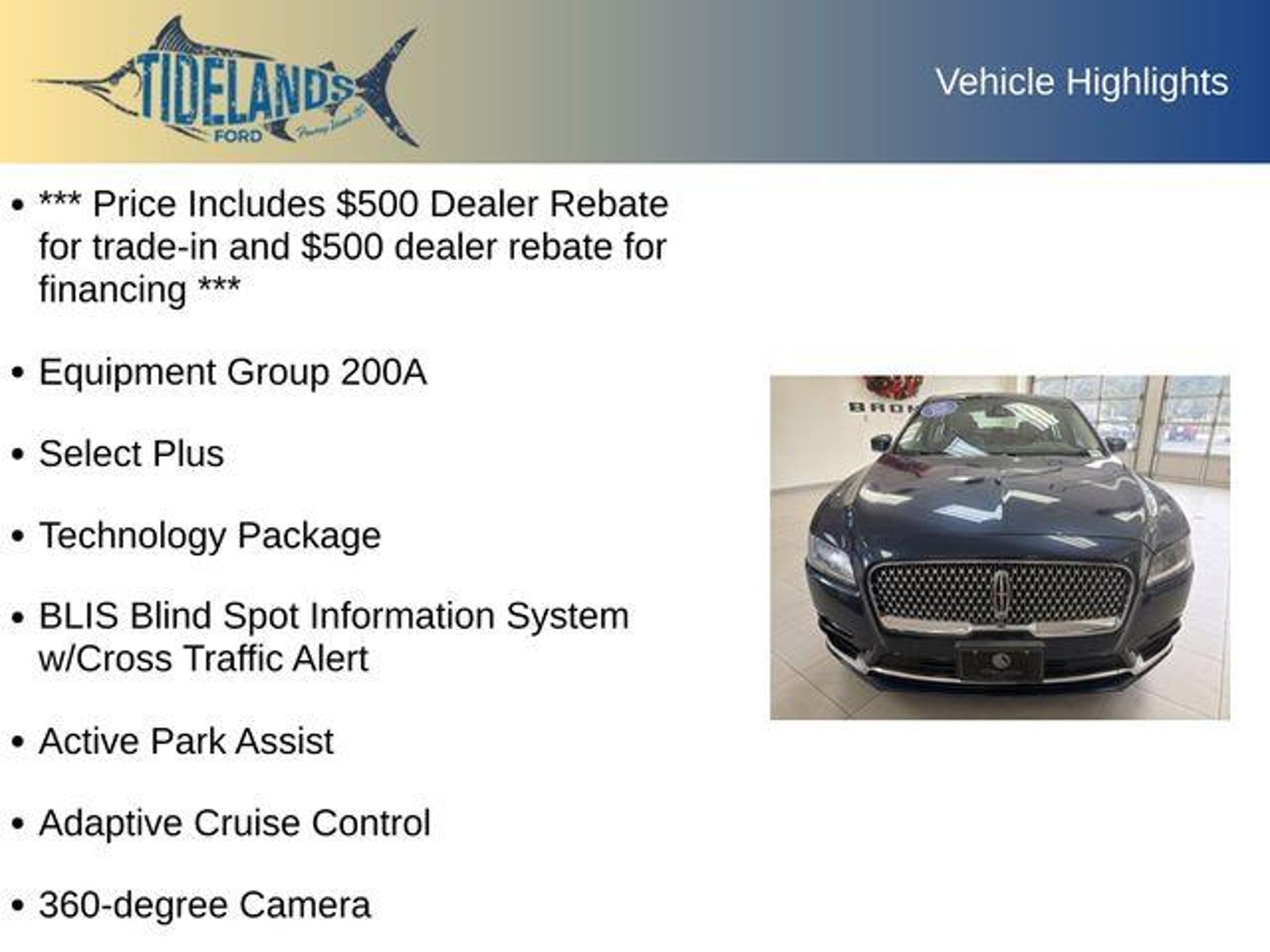 *** Price Includes $500 Dealer Rebate for trade-in and $500 dealer rebate for financing *** 360-degree Camera, Active Park Assist, Adaptive Cruise Control, Advanced Head-Up Display, Auto-Dimming Rear-View Mirror, BLIS Blind Spot Information System w/Cross Traffic Alert, Equipment Group 200A, Lane Keeping System, Pre-Collision Assist w/Pedestrian Detection, Rain-Sensing Wipers, Select Plus, Technology Package, Windshield Wiper De-Icer. Odometer is 2825 miles below market average! Vehicle may or may not come with two keys and floor mats. 18/27 City/Highway MPG Awards: * JD Power Automotive Performance, Execution and Layout (APEAL) Study