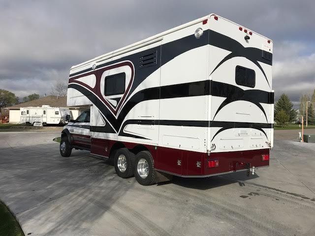The custom RAM 5500 ten-wheeler flatbed truck is equipped with a performance bulletproof engine, all emissions removed for improved reliability, and custom air suspension offering both an ultra-smooth ride and off-road clearance. Additional highlights include 35-inch off-road tires, a heavy-duty 12,000 lb. winch, and a self-contained hydraulic system for easy camper loading and unloading the removable camper can be lowered to the ground in under 10 minutes.