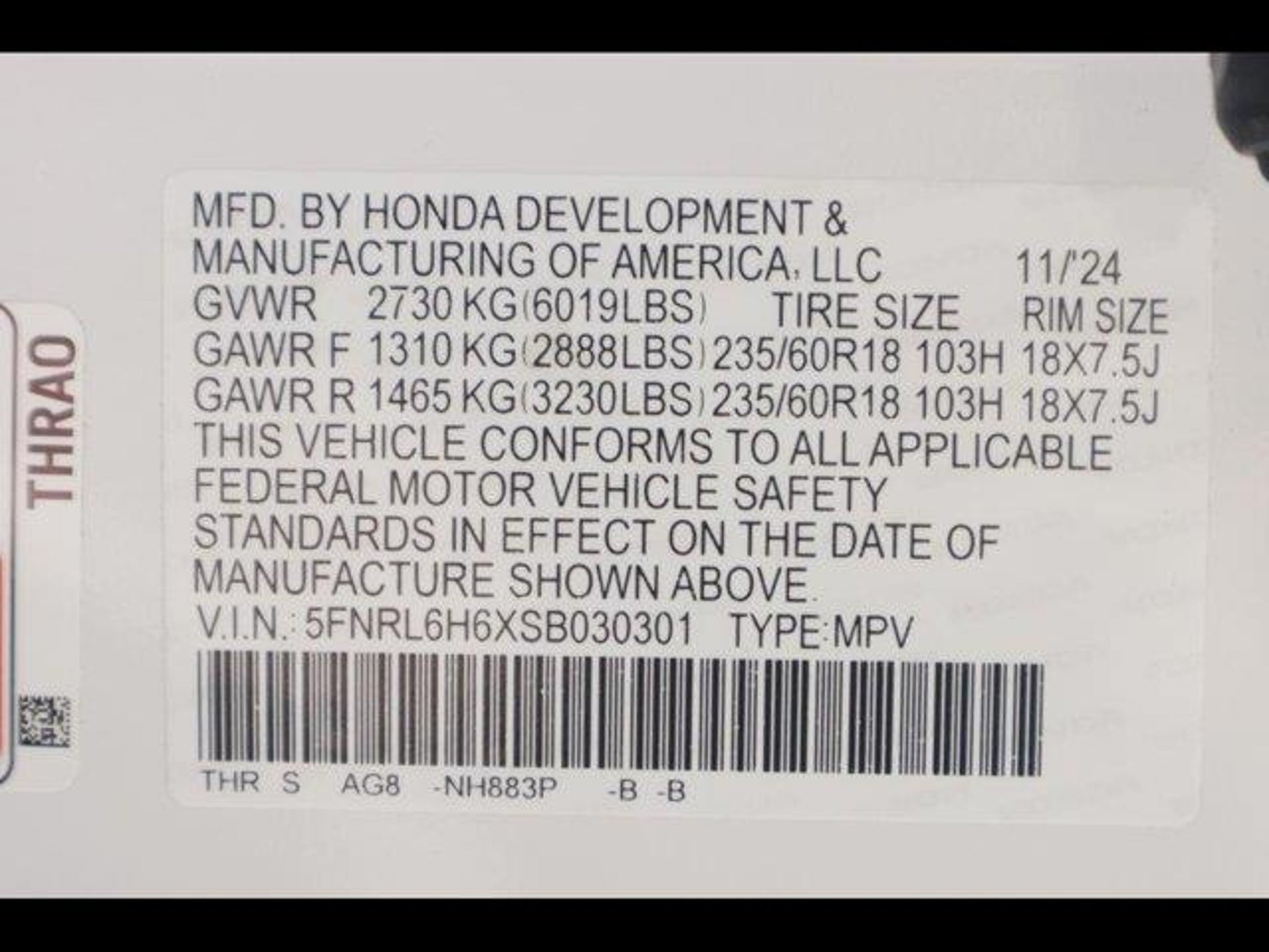 5FNRL6H6XSB030301 |