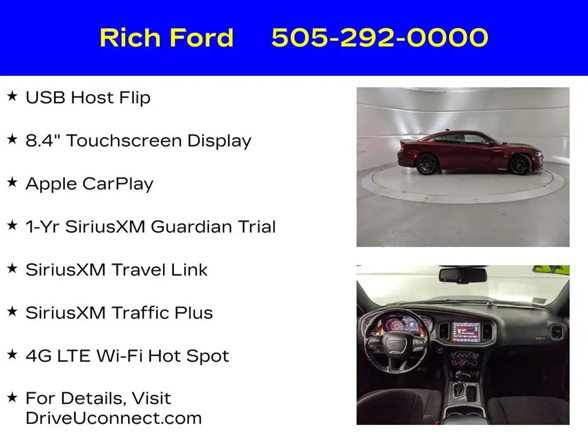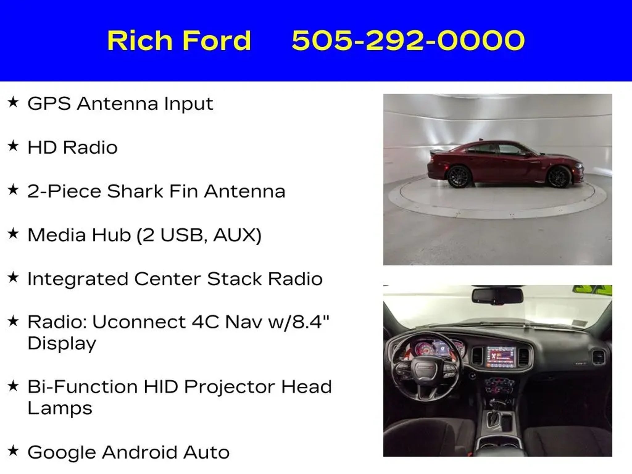 Experience the thrill of pure American muscle in the 2022 Dodge Charger R/T Scat Pack. This high-performance sedan is a true testament to Dodge's commitment to power and style, delivering an unparalleled driving experience that will leave you craving the open road. Boasting a powerful SRT HEMI 6.4L V8 engine, the Charger R/T Scat Pack unleashes an exhilarating 485 horsepower and 475 lb-ft of torque, channeled through an 8-speed automatic transmission and rear-wheel drive. This exceptional powertrain propels the Charger from 0 to 60 mph in a mere 4.3 seconds, ensuring you'll leave the competition in the dust. Key features include: "¢ Driver Convenience Group "¢ Navigation & Travel Group "¢ Quick Order Package 21W Scat Pack "¢ GPS Navigation "¢ 2-Piece Shark Fin Antenna "¢ HD Radio "¢ Bi-Function HID Projector Head Lamps "¢ 4G LTE Wi-Fi Hot Spot "¢ SiriusXM Traffic and Travel Link Services Boasting a striking Red exterior, the Charger R/T Scat Pack commands attention wherever it goes. The bold and aggressive styling, complemented by the signature Scat Pack badging, leaves no doubt about this vehicle's performance pedigree. Step inside the cabin and you'll be greeted by a wealth of premium features, including an 8.4-inch touchscreen display with Uconnect 4C Navigation, Apple CarPlay, and Android Auto integration. Comfort and convenience are also priorities, with dual-zone automatic climate control, heated front seats, and a heated steering wheel ensuring you and your passengers remain cocooned in luxury. The Charger's spacious interior and split-folding rear seats provide ample room for cargo and passengers alike, making it the perfect choice for both daily commutes and weekend adventures. Safety is also a top concern, and the Charger R/T Scat Pack delivers with a comprehensive suite of advanced driver-assistance technologies. Features like Blind Spot Monitoring, Rear Cross-Path Detection, and ParkView Rear Back-Up Camera provide added peace of mind, allowing you to navigate the roads with confidence. If you're in the market for a high-performance sedan that combines raw power, stunning design, and premium features, the 2022 Dodge Charger R/T Scat Pack is the perfect choice. Experience the thrill of the open road and schedule a test drive today. We're confident you'll be impressed by this exceptional vehicle.