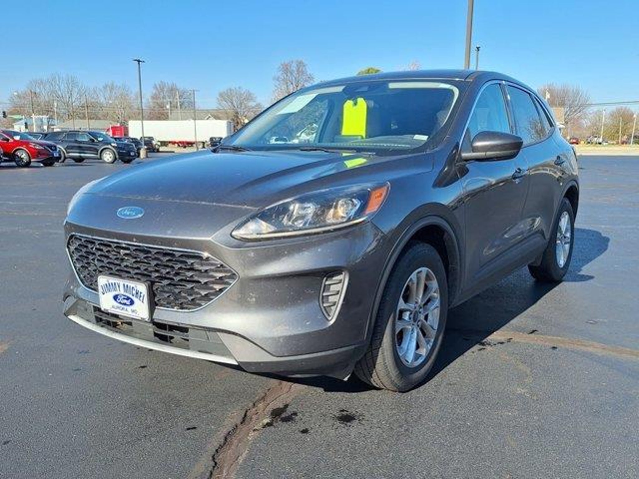 2020 Ford Escape SE 4D Sport Utility ***** 2 Free Oil Changes and 2 Free Tire Rotations ***** Escape SE 4D Sport Utility AWD Magnetic Metallic Equipment Group 200A Heated Unique Cloth Front Bucket Seats Power driver seat Remote keyless entry Steering wheel mounted audio controls SYNC 3 Communications & Entertainment System Wheels: 17 Shadow Silver-Painted Aluminum 3.81 axle ratio 4-Wheel Disc Brakes 6 Speakers ABS brakes Air Conditioning Alloy wheels AM/FM radio: SiriusXM AM/FM Stereo Auto High-beam Headlights Automatic temperature control Brake assist Bumpers: body-color Compass Delay-off headlights Driver door bin Driver vanity mirror Dual front impact airbags Dual front side impact airbags Easy Access Cargo Shade Electronic Stability Control Emergency communication system: SYNC 3 911 Assist Exterior Parking Camera Rear FordPass Connect Four wheel independent suspension Front anti-roll bar Front Bucket Seats Front Center Armrest Front reading lights Fully automatic headlights Heated door mirrors Heated front seats Illuminated entry Knee airbag Low tire pressure warning Occupant sensing airbag Outside temperature display Overhead airbag Overhead console Panic alarm Passenger door bin Passenger vanity mirror Power door mirrors Power steering Power windows Radio data system Rear anti-roll bar Rear reading lights Rear seat center armrest Rear window defroster Rear window wiper Speed control Speed-sensing steering Speed-Sensitive Wipers Split folding rear seat Spoiler Tachometer Telescoping steering wheel Tilt steering wheel Traction control Trip computer Variably intermittent wipers Local Trade **CLEAN AUTOCHECK** Escape SE 4D Sport Utility AWD Magnetic Metallic Equipment Group 200A Heated Unique Cloth Front Bucket Seats Power driver seat Remote keyless entry Steering wheel mounted audio controls SYNC 3 Communications & Entertainment System Wheels: 17 Shadow Silver-Painted Aluminum. Magnetic Metallic AWD 8-Speed Automatic 1.5L EcoBoost 26/31 City/Highway MPG Awards: * JD Power Automotive Performance Execution and Layout (APEAL) Study THIS VEHICLE IS EQUIPED WITH THE FOLLOWING FEATURES AND OPTIONS: Equipment Group 200A Escape SE 4D Sport Utility AWD Magnetic Metallic Heated Unique Cloth Front Bucket Seats Power driver seat Remote keyless entry Steering wheel mounted audio controls SYNC 3 Communications & Entertainment System Wheels: 17 Shadow Silver-Painted Aluminum 3.81 axle ratio 4-Wheel Disc Brakes 6 Speakers ABS brakes Air Conditioning Alloy wheels AM/FM radio: SiriusXM AM/FM Stereo Auto High-beam Headlights Automatic temperature control Brake assist Bumpers: body-color Compass Delay-off headlights Driver door bin Driver vanity mirror Dual front impact airbags Dual front side impact airbags Easy Access Cargo Shade Electronic Stability Control Emergency communication system: SYNC 3 911 Assist Exterior Parking Camera Rear FordPass Connect Four wheel independent suspension Front anti-roll bar Front Bucket Seats Front Center Armrest Front reading lights Fully automatic headlights Heated door mirrors Heated front seats Illuminated entry Knee airbag Low tire pressure warning Occupant sensing airbag Outside temperature display Overhead airbag Overhead console Panic alarm Passenger door bin Passenger vanity mirror Power door mirrors Power steering Power windows Radio data system Rear anti-roll bar Rear reading lights Rear seat center armrest Rear window defroster Rear window wiper Speed control Speed-sensing steering Speed-Sensitive Wipers Split folding rear seat Spoiler Tachometer Telescoping steering wheel Tilt steering wheel Traction control Trip computer and Variably intermittent wipers.