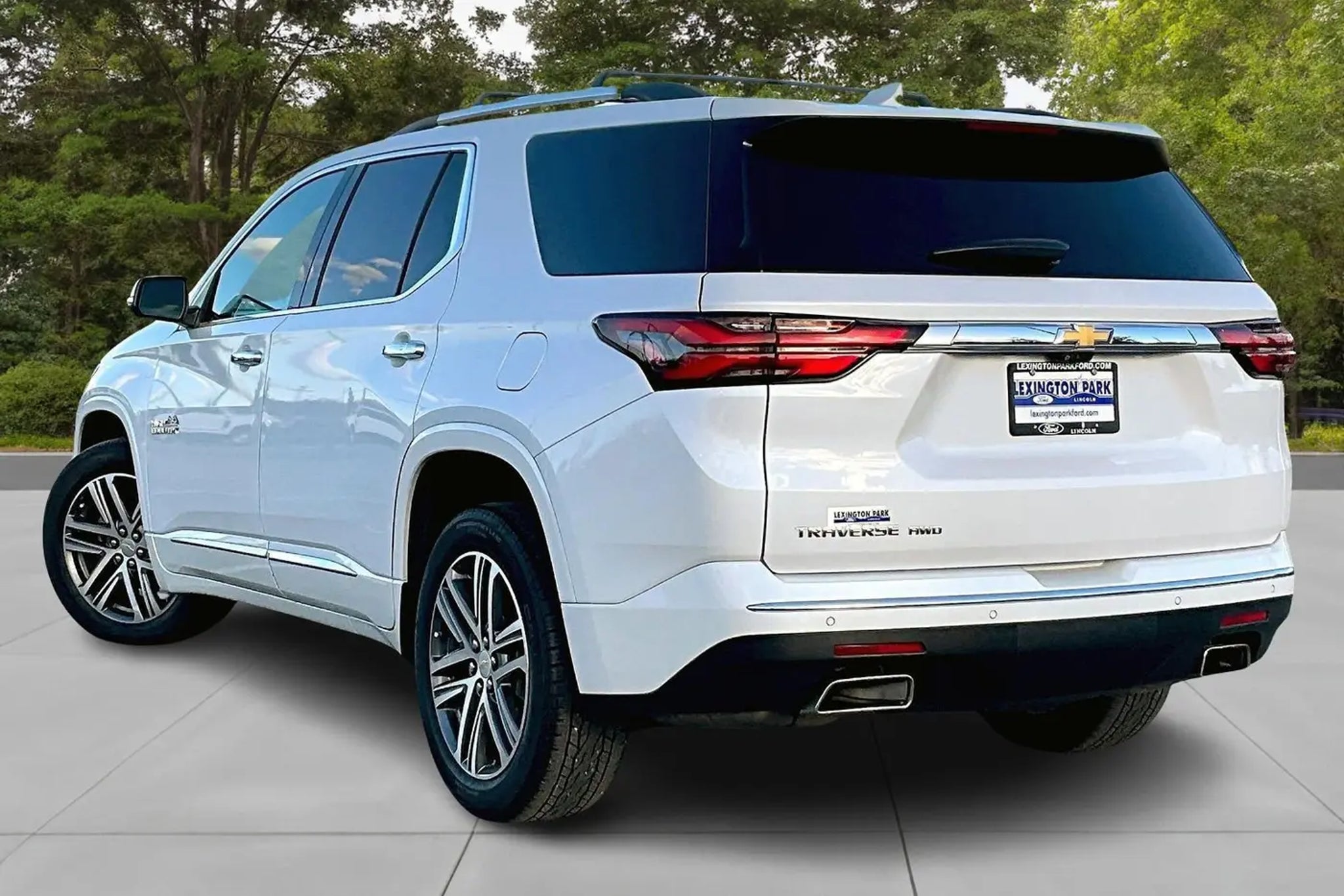 2023 Chevrolet Traverse High Country Iridescent Pearl Tricoat Traverse High Country, 3.6L V6 SIDI VVT, 9-Speed Automatic, AWD, Iridescent Pearl Tricoat, 20 Polished Aluminum Wheels, 3.49 Axle Ratio, 6-Way Power Front Passenger Seat, 8-Way Power Driver Seat Adjuster, Apple CarPlay/Android Auto, Auto High-beam Headlights, Auto-dimming door mirrors, Auto-dimming Rear-View mirror, Automatic temperature control, Bose Premium 10-Speaker Audio System Feature, Exterior Parking Camera Rear, Front dual zone A/C, Fully automatic headlights, Heated 2nd Row Outboard Position Seats, Heated door mirrors, Heated Driver & Front Passenger Seats, Heated rear seats, Heated steering wheel, Memory seat, Navigation System, Power door mirrors, Power driver seat, Power Liftgate, Power moonroof: Dual SkyScape, Power windows, Preferred Equipment Group 2LZ, Radio: Chevrolet Infotainment 3 Plus System w/Navi, Remote keyless entry, SiriusXM w/360L, Steering wheel memory, Steering wheel mounted audio controls, Telescoping steering wheel, Tilt steering wheel, Turn signal indicator mirrors, Ventilated Driver & Front Passenger Seats.We at LEXINGTON PARK FORD are driven to provide the finest automotive purchasing and ownership experience by not only meeting the customer's expectations, but consistently exceeding them. Our goal is to become your favorite local dealer through an unrivaled DEDICATION TO EXCELLENCE. CALL US AT OR visit us on the web at VEHICLE DISCLAIMER: ** Price excludes tax, tag, freight, and other governmental fees, customer selected options and the dealer's $799 processing fee. Price does not include additional options selected by the customer. All advertised vehicles are subject to actual dealer availability. Must qualify for all applicable rebates and discounts. Prices include all dealer rebates and dealer incentives. Please check with your dealer for more information. Images displayed may not be representative of the actual trim level of a vehicle. Colors shown are the most accurate representations available. Information provided is believed accurate but all specifications, pricing, and availability must be confirmed in writing (directly) with the dealer to be binding. Pricing may not include any customer selected accessories or options. Discount on in stock units only. All Inventory listed is subject to prior sale. Please consult dealership personnel for details. Price includes all costs to be paid by consumer except for sales tax, tags and 799 processing fee. All prices include all rebates paid to dealer. Rebates and prices are subject to change without notice. Pricing may include various rebates including Loyalty or Conquest rebates. See dealer for complete details. While every reasonable effort is made to ensure the accuracy of all prices and equipment, we are not responsible for any errors or omissions contained on these pages. Please verify any information in question with a dealership sales representative.