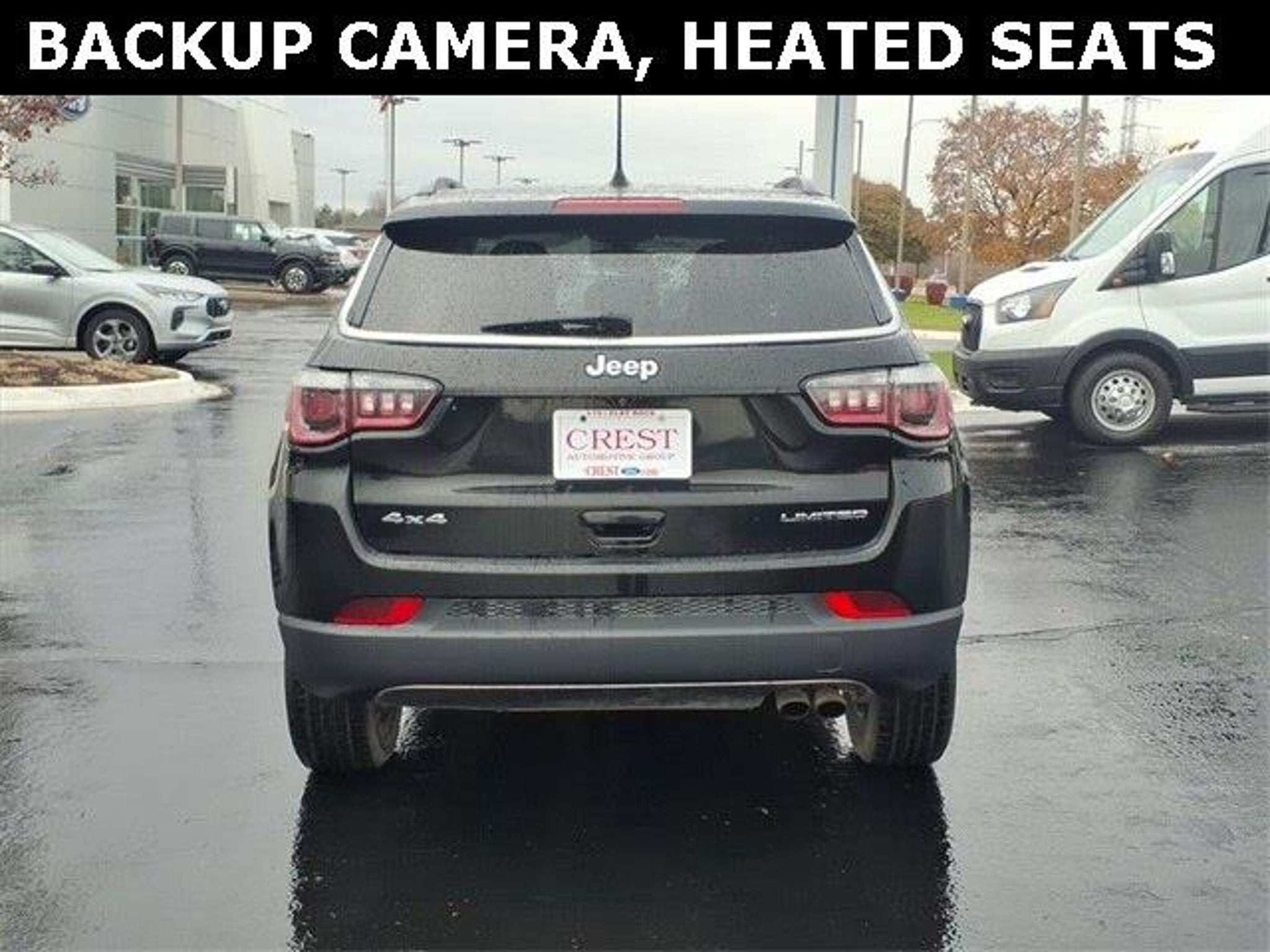Clean CARFAX. Android Auto, Apple CarPlay, Backup Camera, Bluetooth, Hands-Free, Cruise Control, Heated Seats, Keyless Entry, Keyless Start, Leather Seats, Remote Engine Start, New Front Bakes, 4WD, Quick Order Package 2GG. Diamond Black Crystal Pearlcoat 2019 Jeep Compass Limited 4WD 9-Speed 948TE Automatic 2.4L I4 22/30 City/Highway MPG Ford Blue Certified Details: * Transferable Warranty * 139 Point Inspection * Roadside Assistance * and 11,000 FordPass Rewards Points to use toward first maintenance visit * Limited Warranty: 3 Month/4,000 Mile (whichever comes first) after new car warranty expires or from certified purchase date * Vehicle History * Warranty Deductible: $100. 22/30 City/Highway MPG
