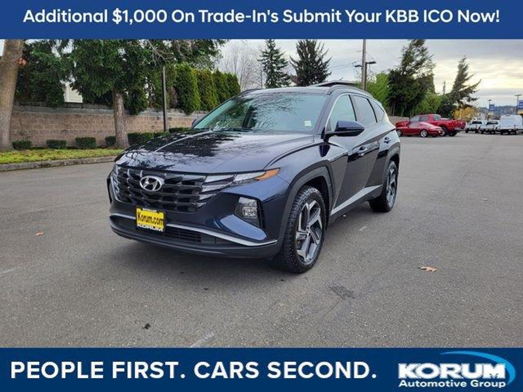 One Owner, Local Trade In, Navigation System, Leather, Panoramic Roof, Automatic Transmission, AWD, 3 Month/3,000 mile Limited Powertrain Warranty, Hyundai Tucson Hybrid SEL Convenience, 4D Sport Utility, I4, 6-Speed Automatic, AWD, Deep Sea, Gray Leather, Navigation System, Option Group 01. 37/36 City/Highway MPG2023 Hyundai Tucson Hybrid Deep Sea SEL Convenience I4At Korum, we provide our customers with real-time value pricing on every vehicle. How? We poll over 70,000 websites hourly to ensure our customers receive the BEST PRICES. We will never inflate vehicle prices or play pricing games as a part of our negotiation strategy with our customers.Located at the corner of River Road and Meridian in downtown Puyallup, WA, we have a large selection of cars, trucks and SUVs. Shop our huge selection of vehicles online or come visit us and take a test drive today. Limitations and exclusions apply. Any vehicle used for business or commercial purposes does not qualify. See dealer for complete details. Customer is responsible for sales tax, title, and license fee. A negotiable $200 documentation fee may be applied. Photos for illustration purposes only.