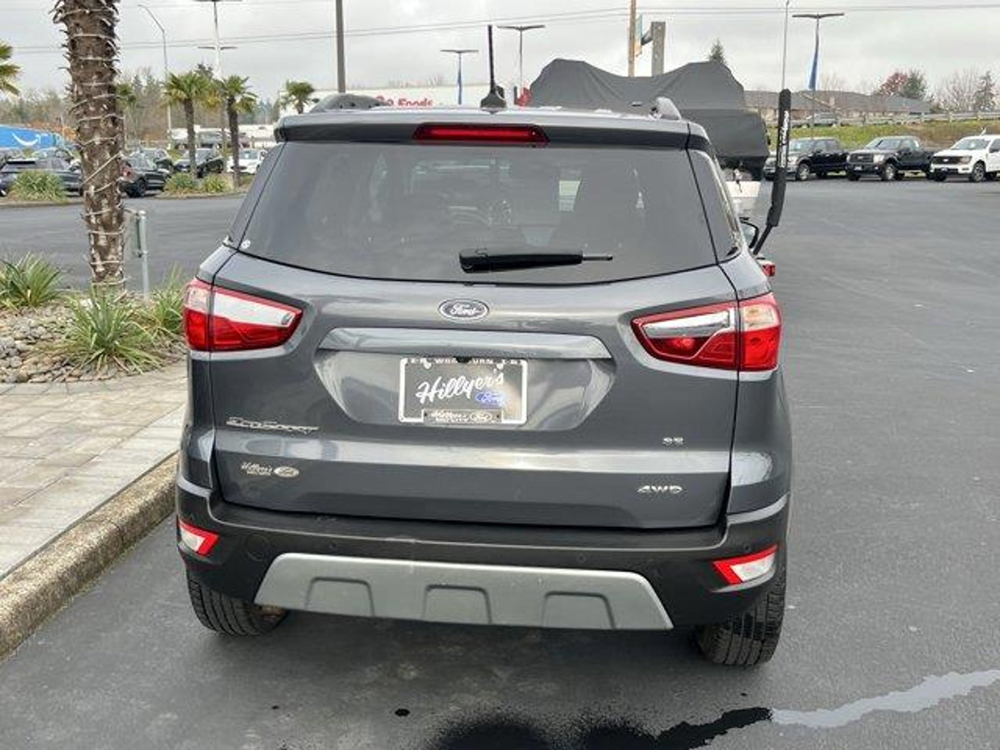 2020 Ford EcoSport SE Smoke 4WD 6-Speed Automatic 2.0L I4 Ti-VCT GDI3.51 Axle Ratio, 4-Wheel Disc Brakes, 6 Speakers, ABS brakes, Air Conditioning, Alloy wheels, AM/FM radio: SiriusXM, AppLink/Apple CarPlay and Android Auto, Automatic temperature control, Brake assist, Bumpers: body-color, Compass, Delay-off headlights, Driver door bin, Driver vanity mirror, Dual front impact airbags, Dual front side impact airbags, Electronic Stability Control, Emergency communication system: SYNC 3 911 Assist, Equipment Group 200A, Exterior Parking Camera Rear, Front anti-roll bar, Front Bucket Seats, Front Center Armrest, Front fog lights, Front reading lights, Front wheel independent suspension, Fully automatic headlights, Heated front seats, Illuminated entry, Knee airbag, Leather Shift Knob, Leather steering wheel, Low tire pressure warning, Occupant sensing airbag, Outside temperature display, Overhead airbag, Overhead console, Panic alarm, Passenger door bin, Passenger vanity mirror, Power door mirrors, Power driver seat, Power moonroof, Power steering, Power windows, Radio data system, Radio: AM/FM Stereo w/MP3 Capable, Rear anti-roll bar, Rear Parking Sensors, Rear seat center armrest, Rear side impact airbag, Rear window defroster, Rear window wiper, Remote keyless entry, Roof rack: rails only, SiriusXM Radio, Speed control, Speed-sensing steering, Split folding rear seat, Steering wheel mounted audio controls, SYNC 3 Communications & Entertainment System, Tachometer, Telescoping steering wheel, Tilt steering wheel, Tire Inflator & Sealant Kit, Traction control, Trip computer, Turn signal indicator mirrors, Unique Cloth Heated Front Bucket Seats, Variably intermittent wipers, Wheels: 16 Shadow Silver-Painted Aluminum.Come see us first, come see us last. Just come see us!!23/29 City/Highway MPGRemember Hillyer's Mid City Ford for the mid city DEAL not the big city STEAL!! Hillyer's has been family owned for over 25 years! Come to www.hillyers.com To See Our Specials!! Call us at (503) 981-4747 For help with any of our departments.