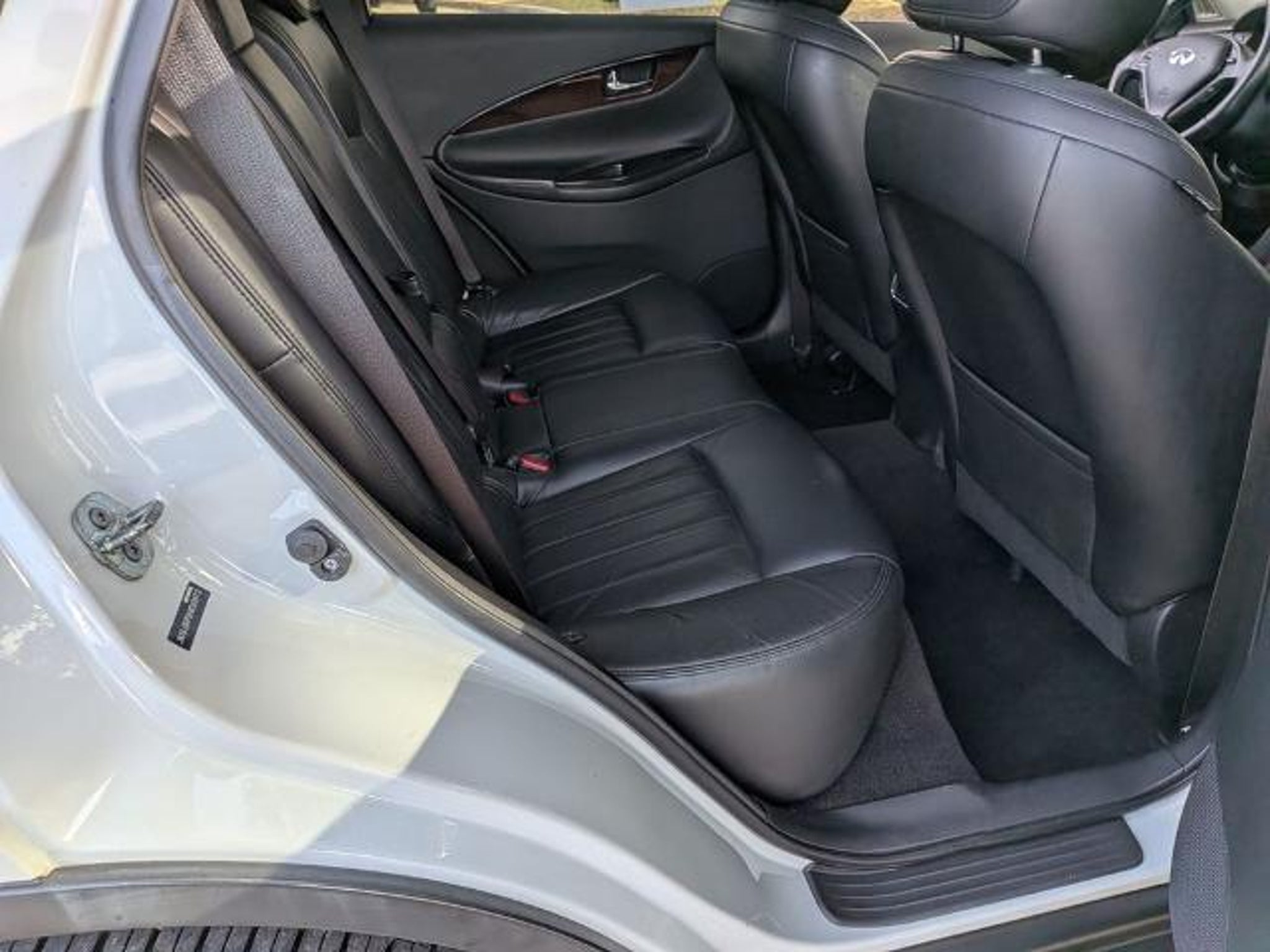Odometer is 19080 miles below market average! Here are more details on this Majestic White 2017 INFINITI QX50 with Graphite Leather interior trim at Sandy Sansing Dealerships. Come see the largest inventory on the Gulf coast. Backup Camera, Bluetooth, Advanced Climate Control System, Aluminum Roof Rails, Auto-Dimming Inside Mirror, Bose 11-Speaker Premium Audio System, Dual Occupant Memory System For Driver's Seat, Maple Interior Accents, Navigation System, Outside Mirrors w/Reverse Tilt-Down Feature, Power Tilt & Telescopic Steering Column, Premium Package, Radio: AM/FM/CD/DVD w/MP3 Playback Capability. Premium Package (Advanced Climate Control System, Aluminum Roof Rails, Auto-Dimming Inside Mirror, Bose 11-Speaker Premium Audio System, Dual Occupant Memory System For Driver's Seat, Maple Interior Accents, Outside Mirrors w/Reverse Tilt-Down Feature, Power Tilt & Telescopic Steering Column, Radio: AM/FM/CD/DVD w/MP3 Playback Capability, and HomeLink Universal Transceiver), Navigation System, 3.133 Axle Ratio, 4-Wheel Disc Brakes, 6 Speakers, ABS brakes, Air Conditioning, Alloy wheels, AM/FM radio: SiriusXM, Anti-whiplash front head restraints, Automatic temperature control, Brake assist, Bumpers: body-color, CD player, Delay-off headlights, Driver door bin, Driver vanity mirror, Dual front impact airbags, Dual front side impact airbags, Electronic Stability Control, Four wheel independent suspension, Front anti-roll bar, Front Bucket Seats, Front Center Armrest, Front dual zone A/C, Front fog lights, Front reading lights, Heated door mirrors, Heated Front Bucket Seats, Heated Rear Seats, Illuminated entry, Leather Shift Knob, Leather steering wheel, Leather-Appointed Seat Trim, Low tire pressure warning, Occupant sensing airbag, Outside temperature display, Overhead airbag, Overhead console, Panic alarm, Passenger door bin, Passenger vanity mirror, Power door mirrors, Power driver seat, Power moonroof, Power passenger seat, Power steering, Power windows, Radio data system, Radio: AM/FM/CD w/6 Speaker Audio System, Rear anti-roll bar, Rear reading lights, Rear seat center armrest, Rear window defroster, Rear window wiper, Remote keyless entry, Security system, Speed control, Speed-sensing steering, Speed-Sensitive Wipers, Split folding rear seat, Spoiler, Steering wheel mounted audio controls, Tachometer, Telescoping steering wheel, Tilt steering wheel, Traction control, Trip computer, Turn signal indicator mirrors, Variably intermittent wipers, and Wheels: 18 x 8.0 8-Spoke Aluminum-Alloy.