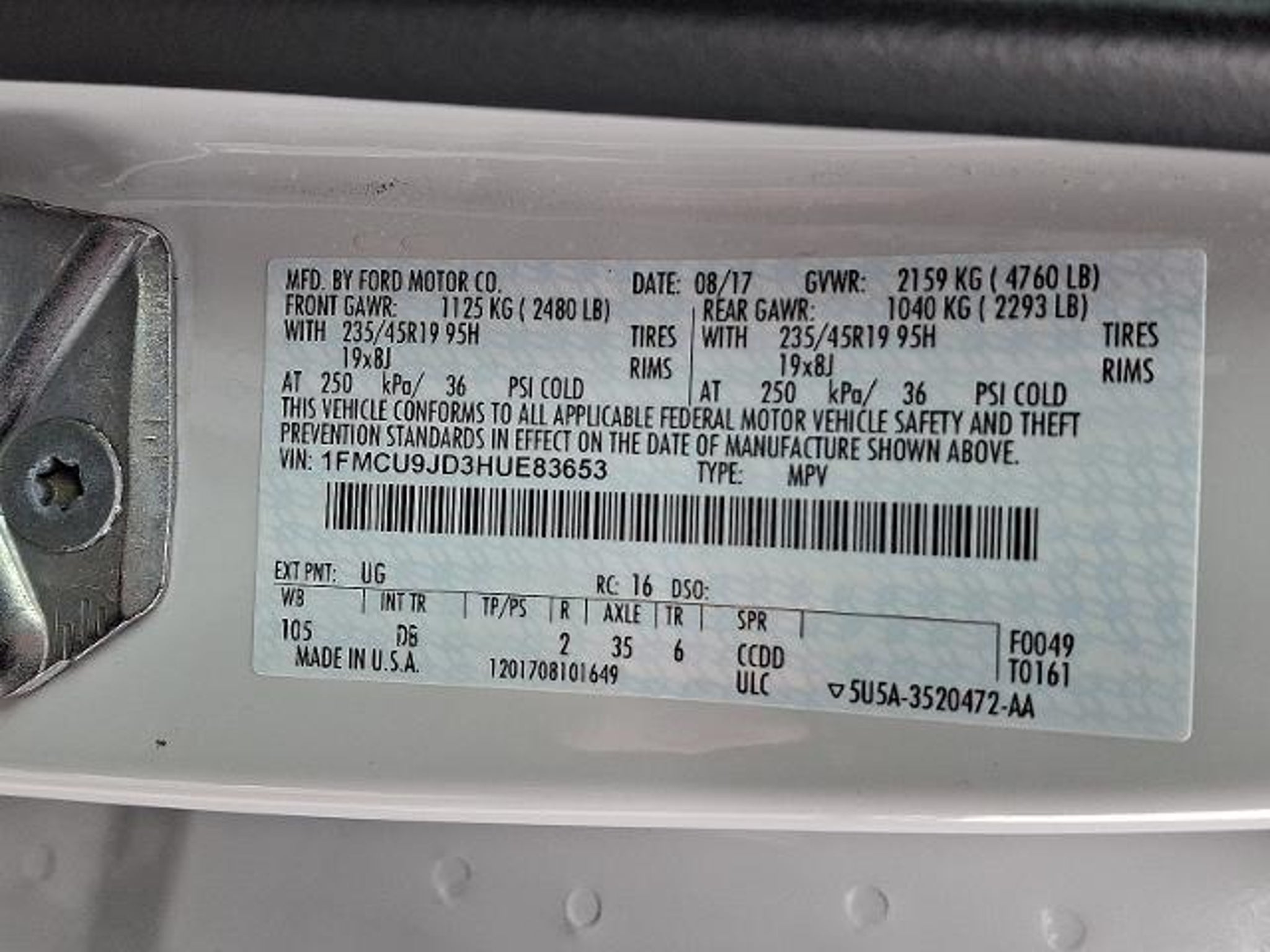 Details > 2017 Ford Escape AWD Titanium 4DR SUV For Sale in Whitehall, PA Private Party Sellers Click here to place your ad now! You auta tell them you saw the ad in AutaBuy when you call or email. 1/30 2/30 3/30 4/30 5/30 6/30 7/30 8/30 9/30 10/30 11/30 12/30 13/30 14/30 15/30 16/30 17/30 18/30 19/30 20/30 21/30 22/30 23/30 24/30 25/30 26/30 27/30 28/30 29/30 30/30 View 30 Photos View All Add to My Garage Parked in Your Garage! Gilboy Automotive Group Contact Seller: I would like to: Make Offer Check Availability Ask A Question Request More Photos Check Financing Options Send a copy of this message to me Add this listing to my garage Send to Mobile Mileage 85,607 Exterior Color White Platinum Doors 4 Engine 1.5L I4 Transmission 6 Speed Auto Stock # 259520A-764958251 VIN 1FMCU9JD3HUE83653 Estimated Monthly Payment $243 mo Apply Now J.J. Best Banc & Co. 2017 Ford Escape AWD Titanium 4DR SUV Description: One owner Clean Carfax Well Maintained and fully loaded. Looking for an AWD vehicle that is great on gas but wont break the bank?? This is it!!! Stop In Today And Save The Gilboy Way!! Gilboy Knows What Your Looking For!! Gilboys GOT IT! · Mileage: 85,607 · Color: White Platinum Price: $13,988. Mileage 85,607 Exterior Color White Platinum Doors 4 Engine 1.5L I4 Transmission 6 Speed Auto Stock # 259520A-764958251 VIN 1FMCU9JD3HUE83653 Estimated Monthly Payment $243 mo Apply Now J.J. Best Banc & Co. Add to My Garage Parked in Your Garage! Message Seller Gilboy Automotive Group Contact Seller: I would like to: Make Offer Check Availability Ask A Question Request More Photos Check Financing Options Send a copy of this message to me Add this listing to my garage Offered for sale by Gilboy Automotive Group WHITEHALL, PA Price: $13,988. Offered for sale by Gilboy Automotive Group WHITEHALL, PA [entire inventory] Ask Auta Intelligence What safety features does this model offer? What colors did these come in? Tell me more about this model What engine options did these come with? Can you show me more suvs for a similar price? What does this VIN number tell me? How easy are parts to find for this model? What trim levels were available for this model? What kind of mileage do these get? What factory options were available on this model? How far is this from me? What transmission options did these offer? How many of these were produced? When was this model first introduced? Do you have a similar car to sell? List It Now! Questions about this car? Ask Auta Intelligence for production numbers, available options, etc. · Subscribe to AutaBuy! · Send a Gift Subscription Notice to a Friend