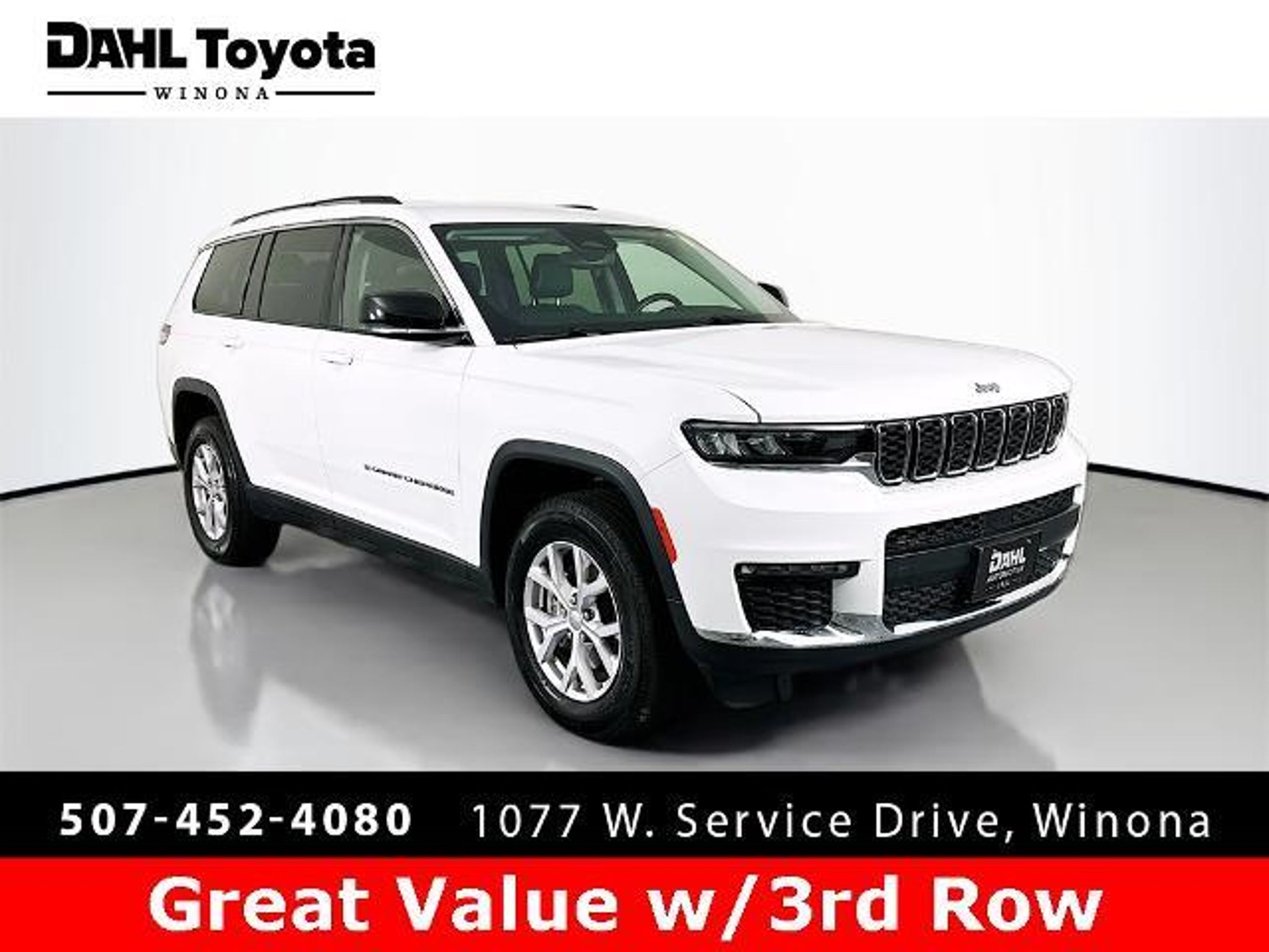 2022 Bright White Clearcoat Jeep Grand Cherokee L Limited 3.6L V6 24V VVT 4WD This Jeep Grand Cherokee L has many features and is well equipped including, 10.1 Touchscreen Display, 3.45 Rear Axle Ratio, 3rd row seats: split-bench, 4-Wheel Disc Brakes, 4G LTE Wi-Fi Hot Spot, 506 Watt Amplifier, 6 Speakers, 9 Amplified Speakers w/Subwoofer, ABS brakes, Active Noise Control System, Air Conditioning, All Radio Equipped Vehicles, Alloy wheels, AM/FM radio: SiriusXM with 360L, Anti-whiplash front head restraints, Apple CarPlay, Audio memory, Auto High-beam Headlights, Automatic temperature control, Brake assist, Bumpers: body-color, Capri Leather Seats, Compass, Connected Travel & Traffic Services, Connectivity - US/Canada, Delay-off headlights, Disassociated Touchscreen Display, Driver door bin, Driver vanity mirror, Dual front impact airbags, Dual front side impact airbags, Electronic Stability Control, Emergency communication system, For Details, Visit DriveUconnect.com, For More Info, Call 800-643-2112, Four wheel independent suspension, Front anti-roll bar, Front Bucket Seats, Front Center Armrest w/Storage, Front dual zone A/C, Front fog lights, Front reading lights, Fully automatic headlights, Garage door transmitter, Global Telematics Box Module (TBM), Google Android Auto, GPS Antenna Input, GPS Navigation, HD Radio, Heated door mirrors, Heated front seats, Heated rear seats, Heated steering wheel, Illuminated entry, Integrated Center Stack Radio, Integrated Voice Command w/Bluetooth, Knee airbag, Leather steering wheel, Low tire pressure warning, Manual Fold Seatbacks, Memory seat, Normal Duty Suspension, Occupant sensing airbag, Outside temperature display, Overhead airbag, Overhead console, Panic alarm, ParkView Rear Back-Up Camera, Passenger door bin, Passenger vanity mirror, Power door mirrors, Power driver seat, Power Liftgate, Power passenger seat, Power steering, Power windows, Quick Order Package 22E, Radio data system, Radio: Uconnect 5 Nav w/10.1 Display, Radio: Uconnect 5 w/8.4 Display, Rear air conditioning, Rear anti-roll bar, Rear reading lights, Rear window defroster, Rear window wiper, Reclining 3rd row seat, Remote keyless entry, Security system, SiriusXM Radio Service, SiriusXM Satellite Radio, SiriusXM w/360L, Speed control, Speed-Sensitive Wipers, Split folding rear seat, Spoiler, Steering wheel mounted audio controls, Tachometer, Telescoping steering wheel, Tilt steering wheel, Traction control, Trip computer, Turn signal indicator mirrors, USB Host Flip, Variably intermittent wipe