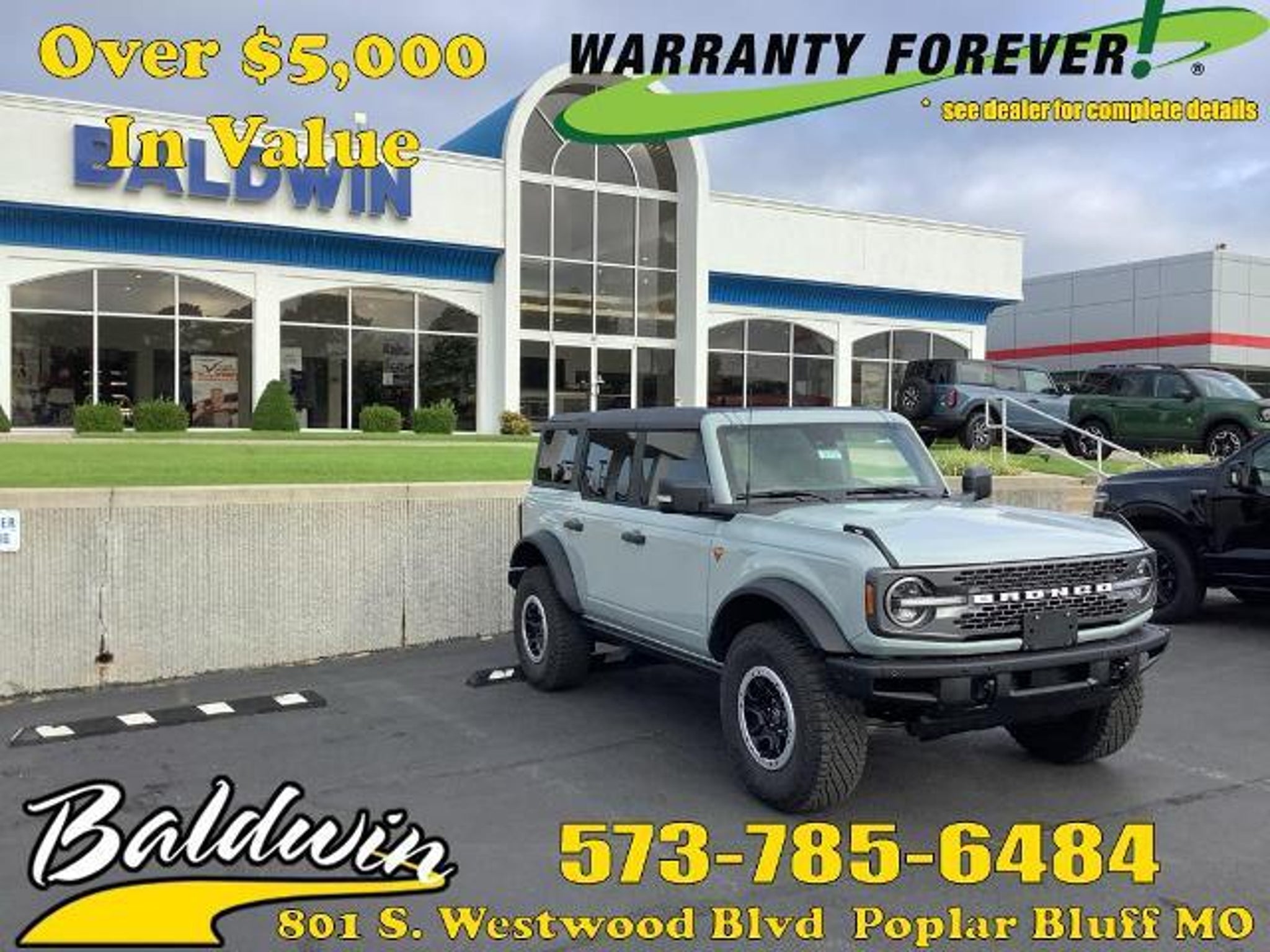 *Equipment* Protect the vehicle from unwanted accidents with a cutting edge backup camera system. An off-road package is equipped on this model. Apple CarPlay: Seamless smartphone integration for this model - stay connected and entertained on the go! Bluetooth technology is built into it keeping your hands on the steering wheel and your focus on the road. Enjoy the heated seats in this Ford Bronco you will never buy a vehicle without them. Everyone loves the comfort of having a warm seat on those cold winter days. The vehicle is pure luxury with a heated steering wheel. The leather seats in this vehicle are a must for buyers looking for comfort durability and style. This vehicles Cross-Traffic Alert: Safeguarding you from unexpected traffic when reversing. This 1/2 ton suv comes equipped with Android Auto for seamless smartphone integration on the road. Start this 2024 Ford Bronco from inside with remote start. *Packages* Equipment Group 334A High/lux Package: Rear Parking Sensors; Power Outlet - Back Side of Center Floor Console; Auto-Dimming Interior Rearview Mirror; Driver and Front Passenger Illuminated Sliding Visor Vanity Mirrors; Evasive Steering Assist; Heated Steering Wheel; Additional Sound Deadening; Information on Demand Panel; Wireless Charging Pad; Dual-Zone Electronic Automatic Temperature Control; Ambient Footwell Lighting; Remote Start System; 2-Door Intelligent Access with Lock/unlock; 17 Machined Carbonized Aluminum Wheels; Dual Smart Charging USB Ports; Front Row Heated Seats; Adaptive Cruise Control; B&O Sound System by Bang and Olufsen; Front Parking Sensors; 360-Degree Camera; LT285/70R17 A/T Tires; Universal Garage Door Opener; Sideview Mirrors. Sasquatch Package: High Clearance Fender Flares; High Clearance Suspension; Position-Sensitive Bilstein Shock Absorbers. Ford Co-Pilot360: Auto High-Beam Headlamps; Rear View Camera; Pre-Collision Assist with Automatic Emergency Braking; Blind Spot Information System (BLIS); Lane-Keeping System. Leather-Trimmed/vinyl Bucket Seats. Carbonized Gray Molded-In-color Hard Top. Cactus Gray. Front and Rear Floor Liners Without Carpet Floor Mats. **Equipment listed is based on original vehicle build and subject to change. Please confirm the accuracy of the included equipment by calling the dealer prior to purchase.** *Manufacturer Incentives* Price includes: Guaranteed Incentives: $3000 - Retail Customer Cash - Exp. 3/31/2025. Contact dealer to verify final pricing.