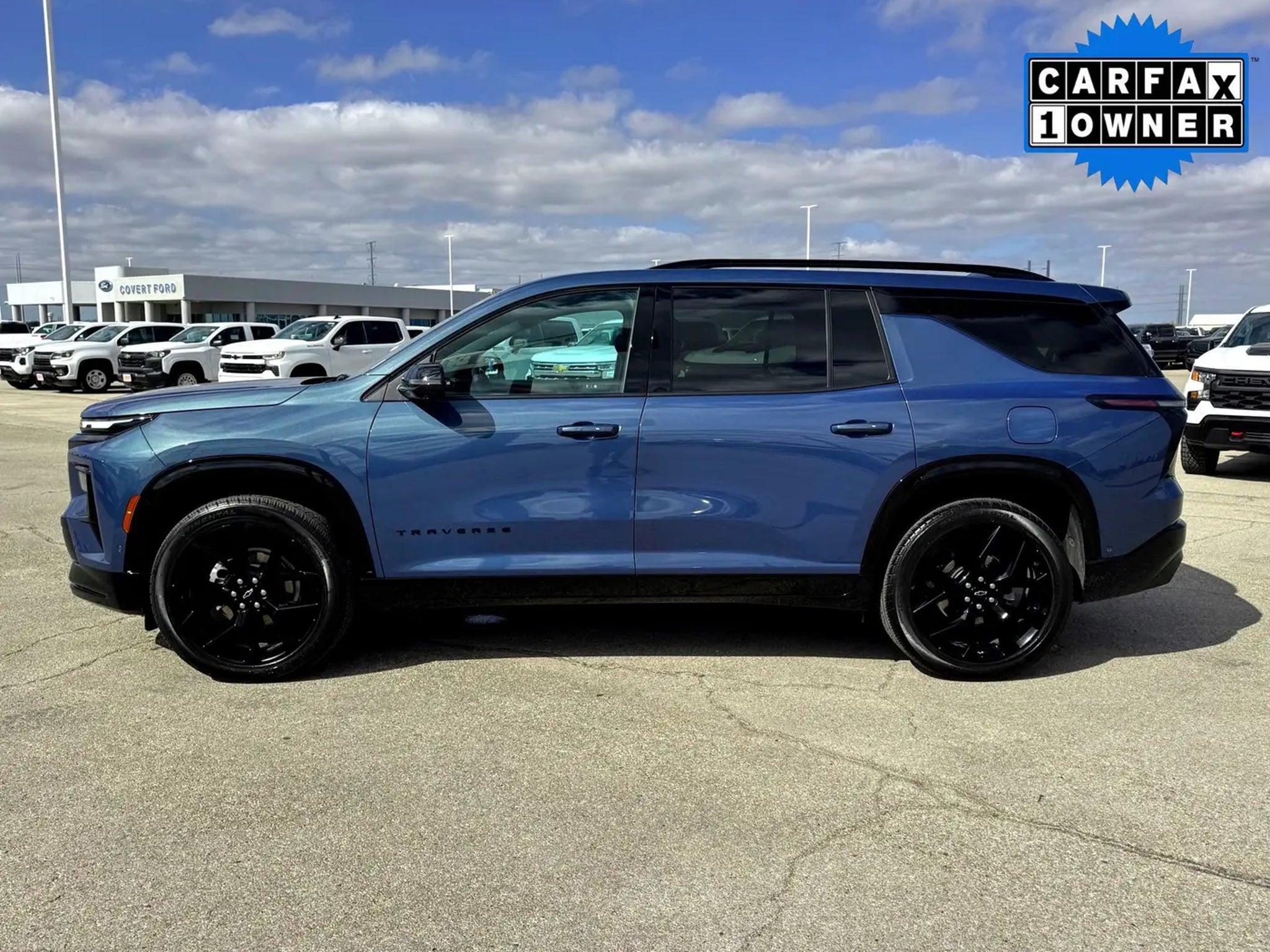 Priced below KBB Fair Purchase Price! 2024 Chevrolet Traverse 4D Sport Utility 2.5L DOHC Lakeshore Blue MetallicFWD, CLEAN CARFAX, HEATED SEATS, LEATHER, LOCAL TRADE, NAVIGATION, NON SMOKER, ONE OWNER, PANORAMIC SUNROOF, 3rd row seats: split-bench, 4-Wheel Disc Brakes, 6-Way Power Front Passenger Seat Adjuster, 8-Way Power Driver Seat Adjuster, ABS brakes, Air Conditioning, Apple CarPlay/Android Auto, Auto High-beam Headlights, Auto-dimming door mirrors, Automatic temperature control, Bose Premium 10-Speaker Audio System Feature, Brake assist, Bumpers: body-color, Compass, Delay-off headlights, Driver 4-Way Power Lumbar Seat Adjuster, Driver door bin, Driver vanity mirror, Dual front impact airbags, Dual front side impact airbags, Electronic Stability Control, Emergency communication system, Exterior Parking Camera Rear, Four wheel independent suspension, Front anti-roll bar, Front Bucket Seats, Front Center Armrest, Front dual zone A/C, Front Passenger 4-Way Power Lumbar Seat Adjuster, Front reading lights, Fully automatic headlights, Heated door mirrors, Heated front seats, Heated rear seats, Heated steering wheel, Illuminated entry, Low tire pressure warning, Navigation System, Not Equipped w/Heated Wiper Park, Occupant sensing airbag, Outside temperature display, Overhead airbag, Overhead console, Panic alarm, Passenger door bin, Passenger vanity mirror, Perforated Leather-Appointed Seat Trim, Power door mirrors, Power driver seat, Power Liftgate, Power moonroof, Power passenger seat, Power steering, Power windows, Preferred Equipment Group 1RS, Radio: 17.7 Diagonal Display, Rain sensing wipers, Rear air conditioning, Rear anti-roll bar, Rear reading lights, Rear window defroster, Rear window wiper, Remote keyless entry, Security system, SiriusXM w/360L, Speed control, Speed-sensing steering, Spoiler, Sport steering wheel, Steering wheel mounted audio controls, Tachometer, TBD Axle Ratio, Telescoping steering wheel, Tilt steering wheel, Traction control, Trip computer, Turn signal indicator mirrors, Variably intermittent wipers, Ventilated front seats, Voltmeter, Wheels: 22 High Gloss Black Painted Aluminum.We are just a short drive from these areas Austin 78758, Round Rock 78665,78664, Georgetown 78626,78628,78633, Pflugerville 78660, Killeen 76540,76542, Temple 76513, 76502,76504, Elgin 78621, Taylor 76574, Bartlett 76511, Thorndale 76577, Coupland 78615, Granger 76530, Thrall 76578, Liberty Hill 78642, Leander 78641,78646, Jarell 76537, 78626 Cedar Park 78613,78630 Please come out and be a part of the Covert family.