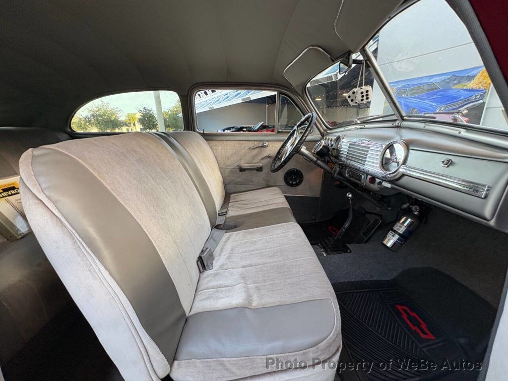1947 Chevrolet Fleetmaster Why This Car Is Special The 1947 Chevrolet Fleetmaster stands as a remarkable testament to post-war American ingenuity and style. With its eye-popping red and purple flame exterior and a host of modern upgrades, this Fleetmaster is not merely a car; it's a bridge between the classic charm of the 1940s and the high-performance expectations of todays discerning collector. Ideal for someone who cherishes vintage aesthetics but craves contemporary reliability and power, this vehicle is a collector's dream. Features List - Speed shop comp cam 280H 350 V8 engine - Holley 670 CFM Street Avenger carburetor - Accel Blueprint HEI ignition system - Cyclone Headers - Walker Cobra radiator with Cooling Components Fan - TCI Street Rodder TH350 automatic transmission - TCI 9' 2.70 Night Special Converter - Engineered Components, Inc. Mustang Dual FR Master Cylinder - BF Goodrich TA tires on American Racing Wheels - Updated 1977 GM wiring - A suite of Classic Instruments gauges - Sun Super Tach and Auto Meter Speedometer - Dakota Digital Gear Shift Sender - Modern electric wipers and digital tach - Pioneering sound system with components from Pioneer and Kicker - Specialty Purple Sound System by Street/Glow Kicker - Passed the NSRA 23-point safety inspection - Includes a specialty owners manual Mechanical Under the hood lies a robust 280H 350 V8 engine equipped with a Holley 670 CFM Street Avenger, ensuring not just power but also precision in performance. The Cyclone Headers complement the Accel Blueprint HEI ignition system to provide a reliable and explosive driving experience. Cooling is managed by a Walker Cobra radiator paired with a Cooling Components Fan, showcasing a setup that is built to handle high performance without overheating issues. Interior Inside, the Fleetmaster offers a plush gray cloth interior that juxtaposes modern comfort with classic styling. The vehicle features a technically equipped dashboard including Classic Instruments gauges, a Sun Super Tach, and an Auto Meter Speedometer, all modern touches that respect the vintage feel. Electric wipers and a digital tach offer convenience while maintaining the cars classic charm. The superb Pioneer / Kicker sound system ensures that your ride is as entertaining as it is comfortable. Exterior The vibrant red body with striking purple flames makes for a head-turning appearance. This Fleetmasters exterior is finished to show quality, with attention to detail that respects its heritage while making a bold contemporary statement. The American Racing Wheels wrapped in BF Goodrich TA tires do not only add to the visual appeal but also enhance the driving dynamics of this classic. Conclusion This 1947 Chevrolet Fleetmaster is a seamless blend of the past and the present, making it a truly special vehicle for anyone who values both performance and style in a classic car. It offers an escape to the nostalgia of the 1940s while delivering the excitement of modern technology and engineering. Experience this perfect marriage of old and new by visiting us or calling at 941-254-6608 to learn more about this exquisite vehicle. Disclaimer Information found on the website is presented as given to us by the owner of the car, whether on consignment or from the owner we bought it from. Some Photos, materials for videos, descriptions and other information are provided by the consignor/seller and is deemed reliable, but Skyway Classics does not warranty or guarantee this information. Skyway Classics is not responsible for information that may incorrect or a publishing error. The decision to purchase should be based solely on the buyers personal inspection of the vehicle or by a professional inspection service prior to offer or purchase being made. WeBe Autos Specializes in Marketing and Advertising Muscle, Classic, Vintage and Specialty Cars. We offer Professional Photography, HD Movies, and Staging that Sells Cars. Let us showcase and sell your specialty car. Please visit our website for more details. Keep in Touch, Michael Runnalls Specialty Car Marketing & Media WeBe Autos Ltd. Long Island, NY 11780 Michael@WeBeAutos.com www.WeBeAutos.com (O)631-339-0399 (C)516-729-2003 Skype: webeautos (F)631-389-2605 - - - Contact Michael Runnalls at 631-339-0399 or Michael@WeBeAutos.com for more information. -