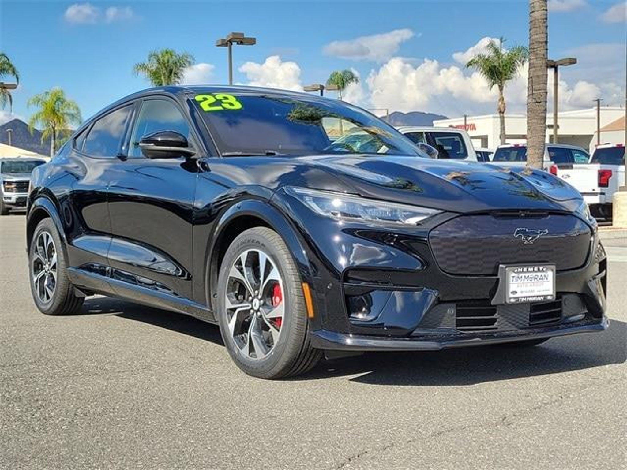 CARFAX One-Owner. Equipment Group 400A GT Performance Edition (Aluminum Applique Instrument Panel w/Unique Design Heated Perforated ActiveX Performance Seats MagneRide Dampening System and Wheels: 20 x 8 Machined-Face Aluminum) Interior Protection Package (Pre-Installed) (1st & 2nd Row Floor Liners w/o Carpet Mats and Cargo Floor Liner) Mustang Nite Pony Package (Black Painted Center Wheel Cap Grille Pony w/Painted Black Outline Mach-E 4X Badge w/ Painted Black Outline and Wheels: 20 Hi-Gloss Painted Black) 10 Speakers 4-Wheel Disc Brakes ABS brakes Air Conditioning Alloy wheels AM/FM radio: SiriusXM with 360L AM/FM Stereo Apple CarPlay/Android Auto Auto High-beam Headlights Auto-dimming Rear-View mirror Automatic temperature control Axle Ratio: 9.05 Brake assist Bumpers: body-color Compass Delay-off headlights Driver door bin Driver vanity mirror Dual front impact airbags Dual front side impact airbags Electronic Stability Control Emergency communication system: 911 Assist Exterior Parking Camera Rear Four wheel independent suspension Front anti-roll bar Front Bucket Seats Front Center Armrest Front dual zone A/C Front reading lights Fully automatic headlights Garage door transmitter Heated ActiveX Sport Seats Heated door mirrors Heated front seats Heated steering wheel Illuminated entry Knee airbag Low tire pressure warning Memory seat Navigation system: Connected Navigation Occupant sensing airbag Outside temperature display Overhead airbag Overhead console Panic alarm Passenger door bin Passenger vanity mirror Power door mirrors Power driver seat Power Liftgate Power passenger seat Power steering Power windows Radio data system Rain sensing wipers Rear anti-roll bar Rear seat center armrest Rear side impact airbag Rear window defroster Rear window wiper Remote keyless entry Security system SiriusXM Radio w/360L Speed control Speed-sensing steering Speed-Sensitive Wipers Split folding rear seat Spoiler Steering wheel mounted audio controls SYNC 4A w/Enhanced Voice Recognition Telescoping steering wheel Tilt steering wheel Traction control Trip computer Turn signal indicator mirrors Variably intermittent wipers and Wheels: 20 Machined-Face Aluminum. Shadow Black 2023 Ford Mustang Mach-E GT AWD Single-Speed Automatic Dual Electric Motor 90/77 City/Highway MPG Welcome to Tim Moran Ford! Located in Hemet CA Tim Moran Ford is proud to be one of the premier dealerships in the area. From the moment you walk into our showroom youll know our commitment to Customer Service is second to none. We strive to make your experience with Tim Moran Ford a good one for the life of your vehicle. Whether you need to Purchase Finance or Service a New or Pre-Owned Ford you ve come to the right place. Dont settle for less...When others cant Tim Moran Can!