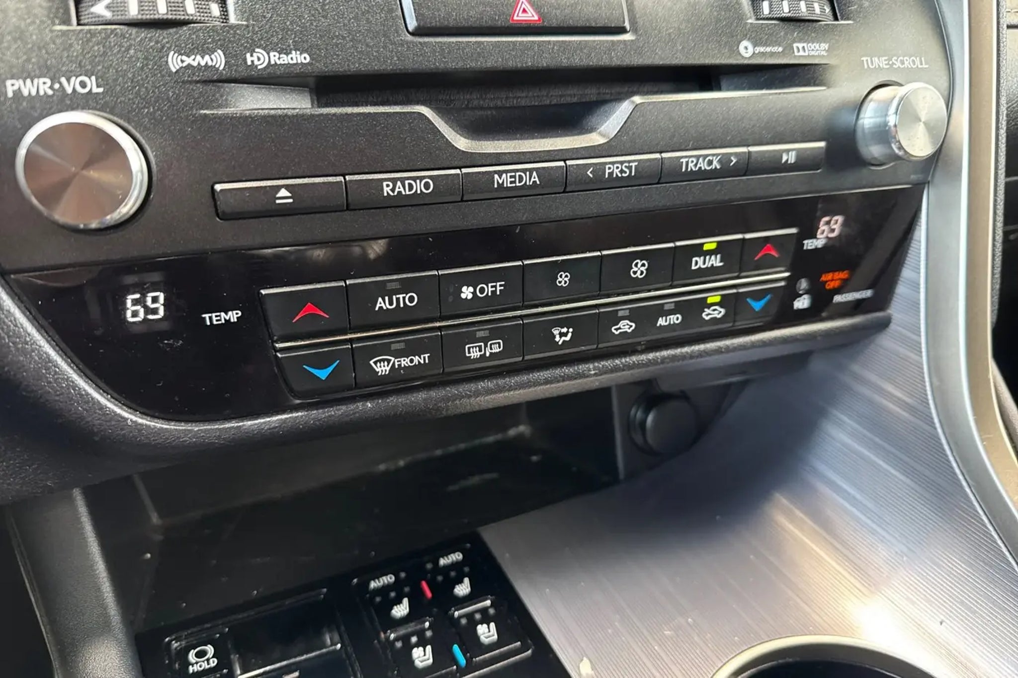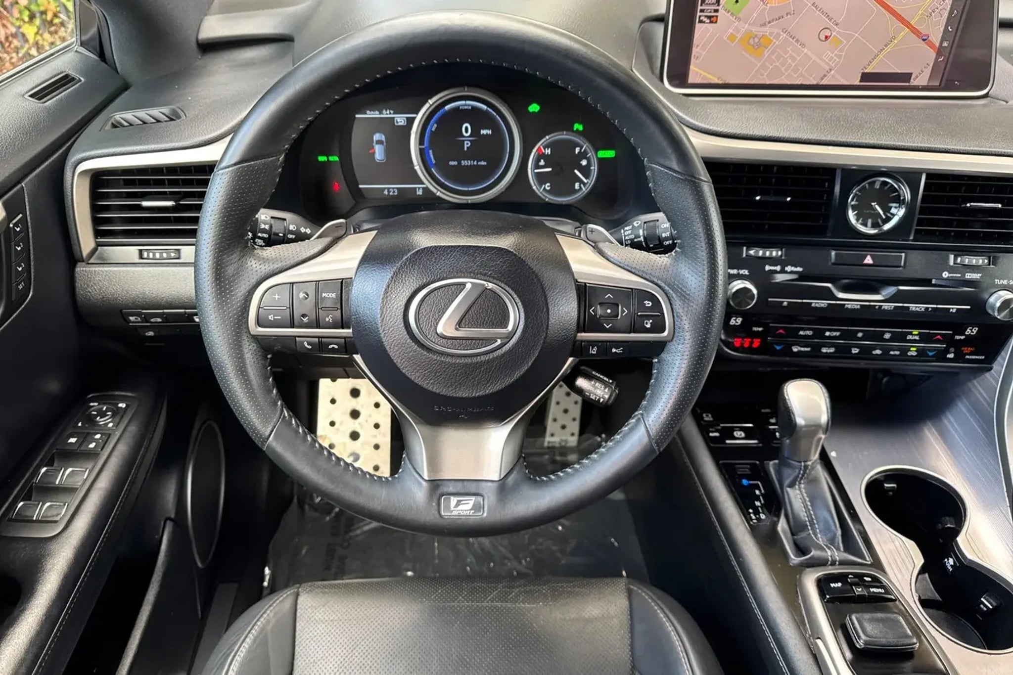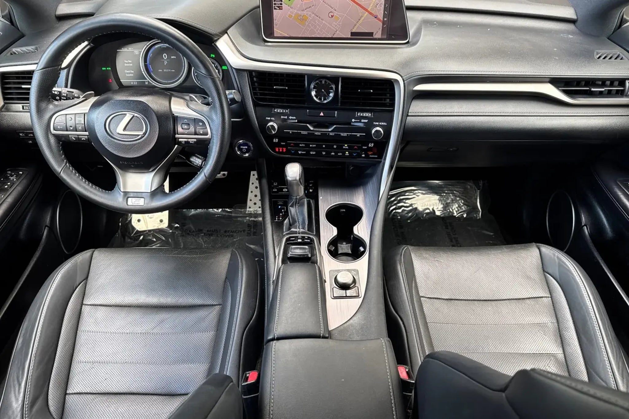 This 2019 Atomic Silver Lexus RX 450h F Sport AWD is well equipped and includes these features and benefits: AWD, Black w/F SPORT Leather, ABS brakes, Active Cruise Control, Alloy wheels, Electronic Stability Control, Front dual zone A/C, Heated & Ventilated Front Bucket Seats, Heated door mirrors, Heated front seats, Heated rear seats, Illuminated entry, Low tire pressure warning, Power Liftgate, Remote keyless entry, Traction control, 3.54 Axle Ratio, 4-Wheel Disc Brakes, 9 Speakers, Adaptive suspension, Air Conditioning, AM/FM radio: SiriusXM, AM/FM/CD Radio, Anti-whiplash front head restraints, Auto High-beam Headlights, Auto tilt-away steering wheel, Auto-dimming door mirrors, Auto-dimming Rear-View mirror, Automatic temperature control, Black Electrochromic Outer Mirrors, Brake assist, Bumpers: body-color, CD player, Delay-off headlights, Driver door bin, Driver vanity mirror, Dual front impact airbags, Dual front side impact airbags, Emergency communication system: Lexus Enform w/Safety Connect, Exterior Parking Camera Rear, F SPORT Heated Steering Wheel w/Paddle Shifters, F SPORT Leather, F SPORT Tuned Suspension, F SPORT Wheel Caps, Four wheel independent suspension, Front anti-roll bar, Front Bucket Seats, Front Center Armrest, Front fog lights, Front reading lights, Fully automatic headlights, Garage door transmitter: HomeLink, Heated steering wheel, Illuminated Aluminum Door Trim, Knee airbag, Leather Shift Knob, Leather steering wheel, Lexus Enform Wi-Fi, Memory seat, Occupant sensing airbag, Outside temperature display, Overhead airbag, Overhead console, Panic alarm, Passenger door bin, Passenger vanity mirror, Power door mirrors, Power driver seat, Power passenger seat, Power steering, Power windows, Radio data system, Rain sensing wipers, Rear anti-roll bar, Rear reading lights, Rear seat center armrest, Rear side impact airbag, Rear window defroster, Rear window wiper, Security system, Speed control, Speed-sensing steering, Split folding rear seat, Spoiler, Sport steering wheel, Steering wheel memory, Steering wheel mounted audio controls, Tachometer, Telescoping steering wheel, Tilt steering wheel, Trip computer, Turn signal indicator mirrors, Variably intermittent wipers, Ventilated front seats, and Wheels: 20 x 7.5 Dk Metallic Super Chrome Finish. AWD, Black w/F SPORT Leather, ABS brakes, Active Cruise Control, Alloy wheels, Electronic Stability Control, Front dual zone A/C, Heated & Ventilated Front Bucket Seats, Heated door mirrors, Heated front seats, Heated rear seats, Illuminated entry, Low tire pressure warning, Power Liftgate, Remote keyless entry, Traction control. Odometer is 25065 miles below market average! 31/28 City/Highway MPG Awards: * 2019 KBB.com 5-Year Cost to Own Awards * 2019 KBB.com 10 Best Luxury SUVs * 2019 KBB.com Best Resale Value Awards * 2019 KBB.com Brand Image Awards