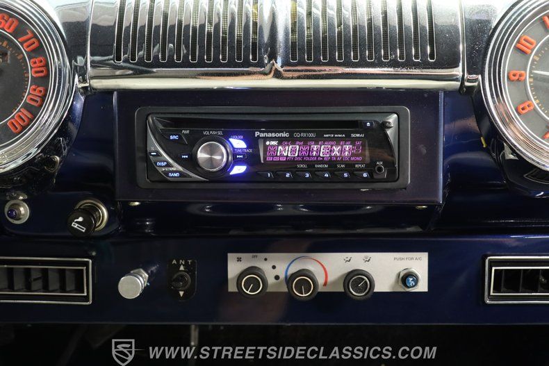 Step inside to a well-preserved interior that combines vintage appeal with thoughtful enhancements. The dash features upgraded autometer gauges alongside the original-style speedometer, maintaining classic aesthetics while providing precise readings. A split bench seat offers comfortable seating, all wrapped in vinyl upholstery that complements the car's era. Vintage air conditioning controls, manual windows, and door locks add authenticity, while a tilt steering column enhances driving comfort. This interior invites you to enjoy every journey with a blend of classic style and practical upgrades.