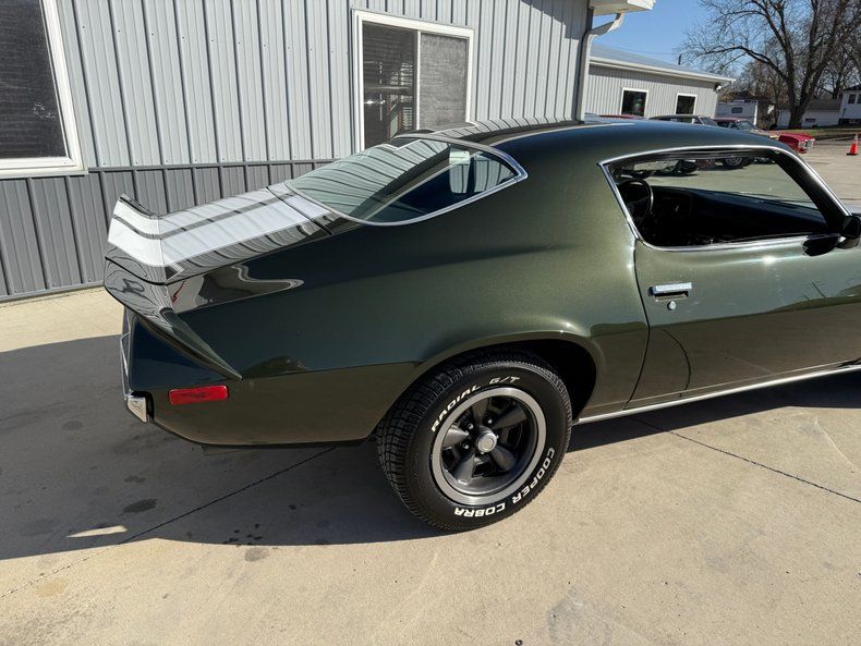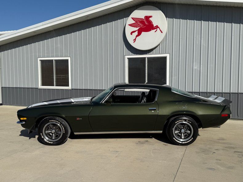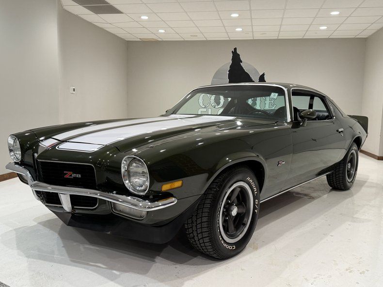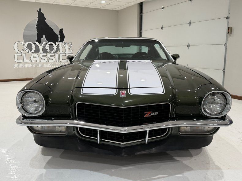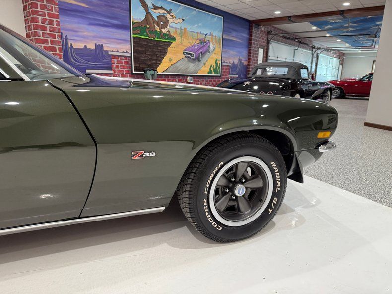 VEHICLE HIGHLIGHTS - Real Deal Z28 - #'s Matching 350ci/330hp LT1 V8 Engine - 4 Speed Manual Transmission - Comprehensive Restoration - Beautifully Restored in its Original Exterior Color Code 49 Antique Green exterior Paint - Nicely Restored Black Bucket Seat Interior - Upgraded Digital Gauges that look like factory - Z28 Wheels - Power Steering - Power Front Disc Brakes - Beautifully Detailed Undercarriage painted red oxide primer - Posi Rear End with 3.73 Gears - Very Nice Real Deal Z28 Camaro