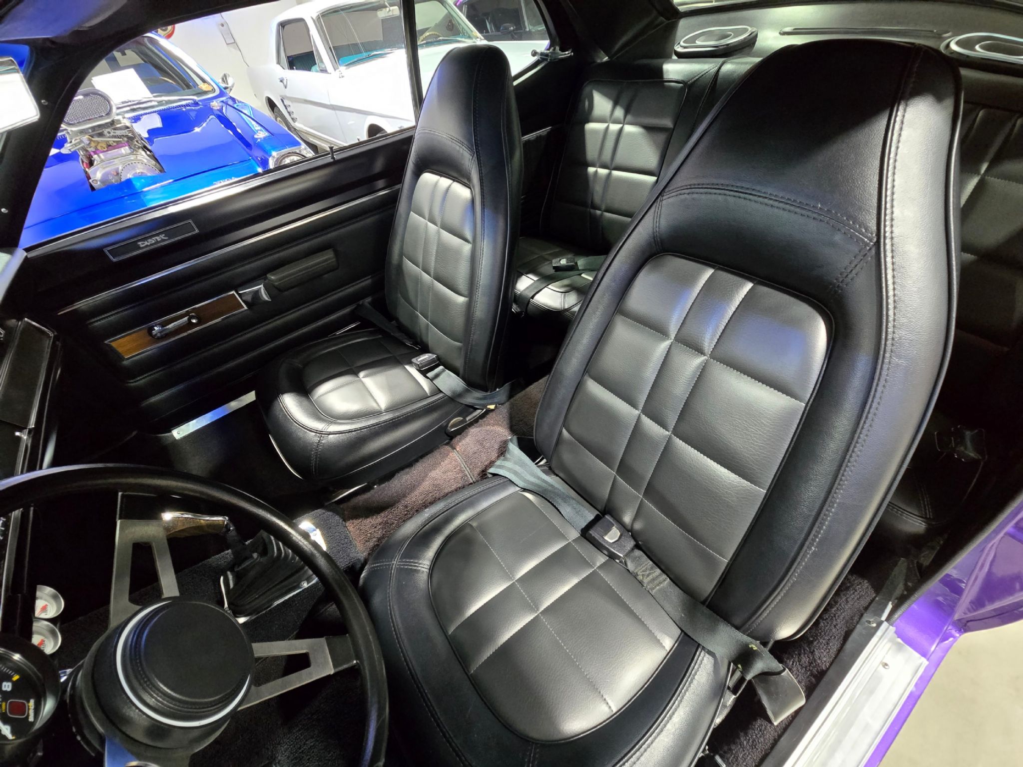 1971 Plymouth Duster, In-violet metallic with a factory 340 4-speed! Very nice car with some pretty cool upgrades. The original fender tag is not with the car, but we do have a rubbing of it, and a replacement is on order. At least with the information we can confirm a lot about this sweet Duster. Codes are as follows: VS29 confirms its a real duster 2-door sports hardtop, E55 confirms its a 340 4-bbl and D21 means a 4-speed from factory. The car now has a Tremec 5-speed in its place. FC7 in two locations on the tag translates to In-Violet paint both on the top and bottom from factory! LX4X9 " low grade trim, vinyl split bench with armrest in black, M21 -roof drip rail moldings, N41 " Dual Exhaust, N42 " Chrome Exhaust tips, N85 " Tachometer, R11 " 2 watt AM radio, V6X Longitudinal stripes in black, B51 " Power Brakes, H31 " Rear window defogger, J25 " 3-speed wipers, J81 " Rear spoiler Wing type, TX9 " Black velvet, V8X " Transverse stripes in black. VX8 EN2 " Tail blackout. Power steering has now been added to the car which makes it that much more drivable. Plenty of modifications have been added under the hood, but in a tasteful way. The 340 is now very rowdy with upgrades to squeeze out more performance. Theres a chromed set of headers, aluminum intake and new carb, plus Mopar Performance Valve covers and air cleaner. Lots of the bits and pieces have been chromed or replaced with billet/brushed aluminum replacements. The car now sports 4-wheel disc brakes and upgraded Mopar styled billet wheels and tires. Cal tracks have been added. Recently all of the correct decaling and stripes have been installed to match factory specs. Inside is very nice. Carpets are not factory, but a little order. Upholstery is in good shape. Dash has a trip meter, full gauges and that tach, plus an aftermarket tachometer and aftermarket accessory gauges. The pistol grip shifter looks great and displays the new shift pattern for the slick shifting 5-speed. The original radio is in place, but a modern unit with cd and remote is hidden in the glove box. The trunk has custom finishing and is very nice! The overall restoration of the car is top notch with great paint (painted bottom too) and nice chrome and brightwork. Car shows 92,000 miles, but with a 5-digit odometer and modifications, true milage is unknown.