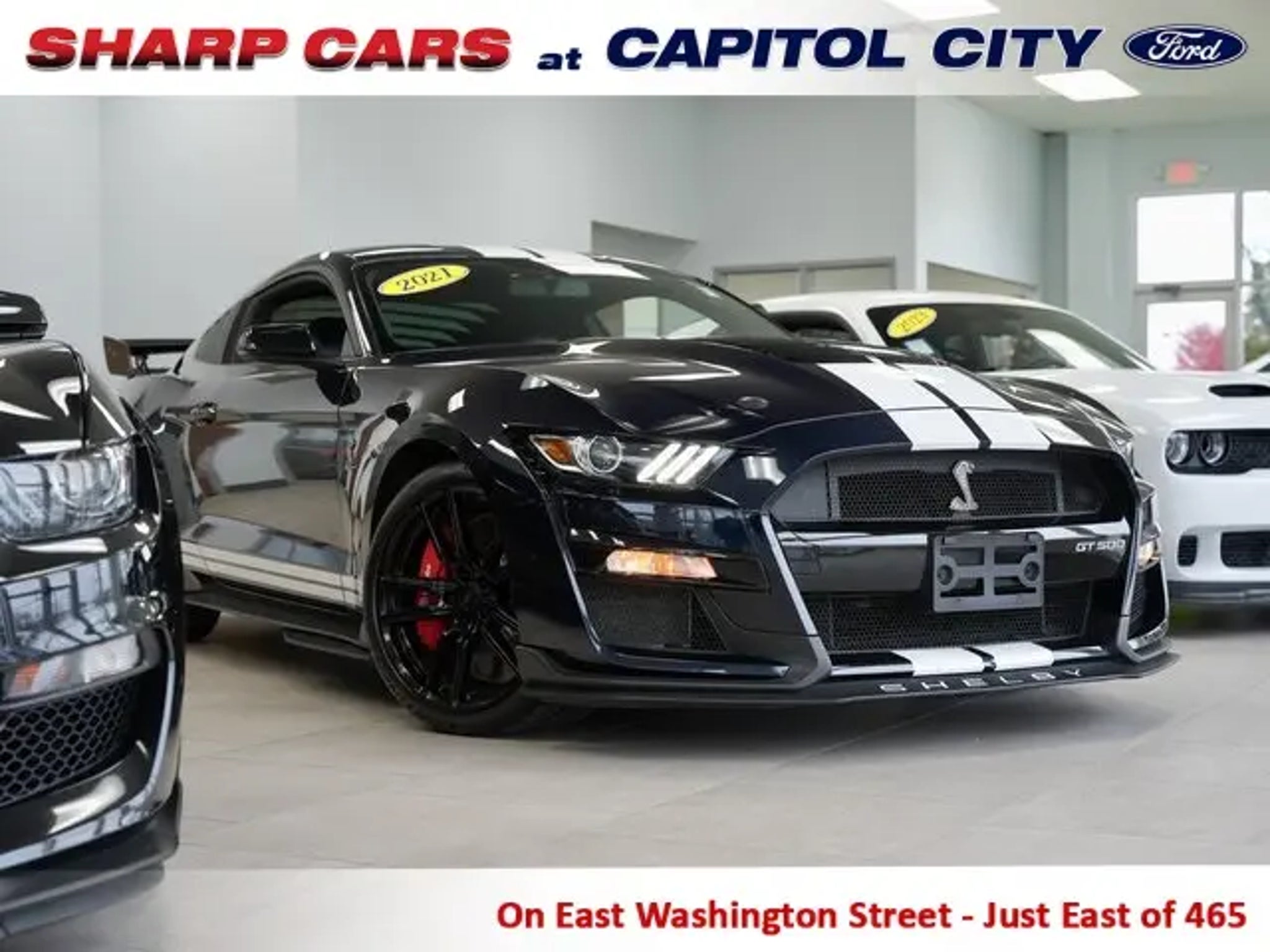 Clean CARFAX. Black 2021 Ford Mustang Shelby GT500 5.2L V8 7-Speed Automatic RWD Impressively Different. This vehicle has been through our meticulous reconditioning process and serviced by our Factory Certified Technicians. Our pre-owned vehicles with less than 100,000 miles and 15 years or newer come with a FREE three month/3,000 mile powertrain warranty so our clients can buy with confidence. Price does not include applicable tax, title, license, convenience fee, $249.95 documentation fee and $299 theft protection that must be paid by the customer. One great advantage of shopping with us is that we have three other locations full of inventory. If you do not see exactly what you are looking for, call us and we will find it for you!