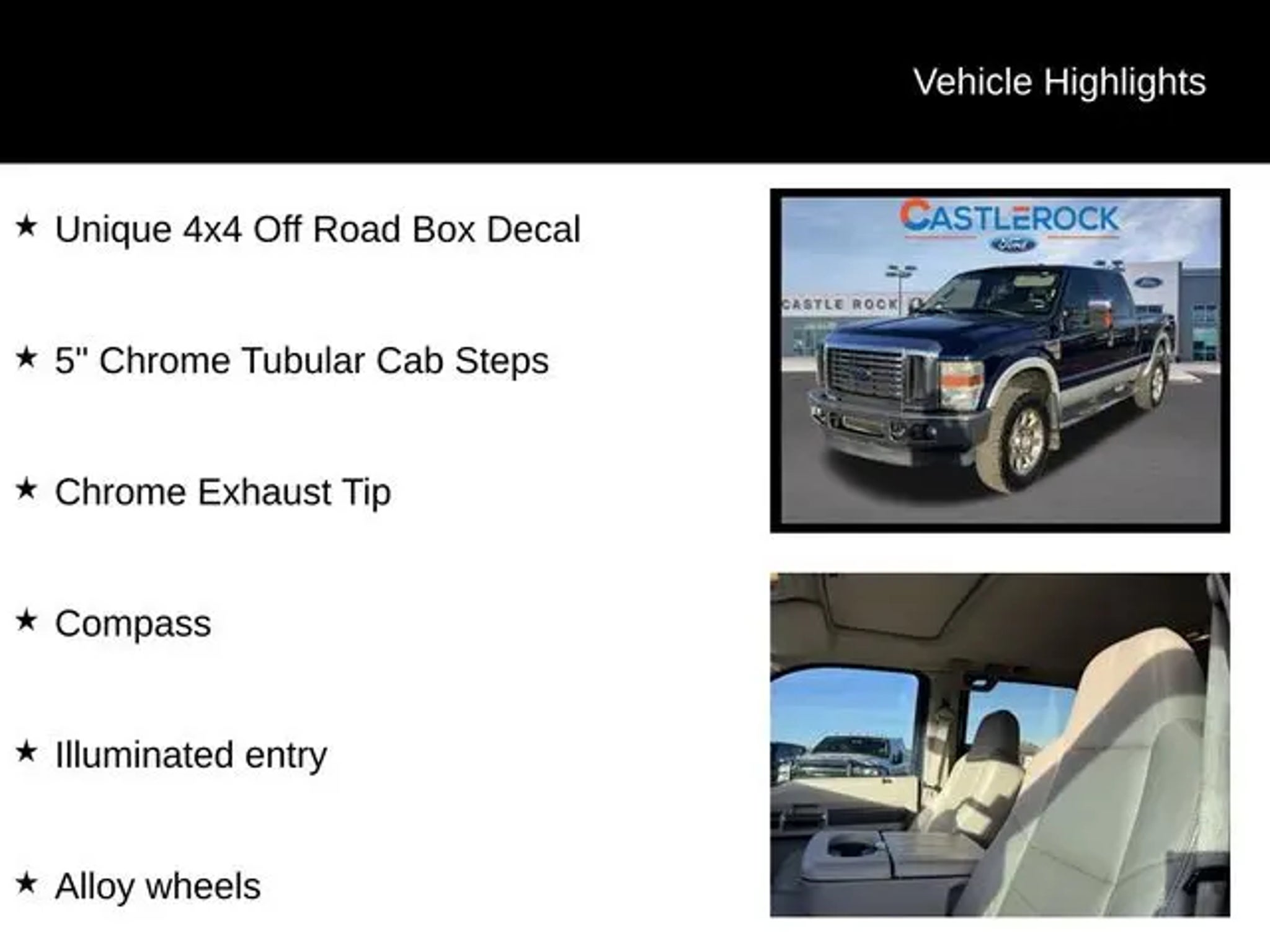 Discover the power and capability of this 2008 Ford F-350SD Lariat. Boasting a robust 6.4L Power Stroke V8 Diesel engine and a TorqShift 5-speed automatic transmission, this truck is built to handle any job with ease. Equipped with 4-wheel drive, this F-350 is ready to conquer any terrain, whether you're hauling heavy loads or exploring off-road adventures. "¢ 5-Speed Automatic (TorqShift) Transmission "¢ 4x4 Off Road Package "¢ Chrome Package "¢ 5 Chrome Tubular Cab Steps "¢ Chrome Exhaust Tip "¢ Unique 4x4 Off Road Box Decal "¢ Unique Chrome Mirror Caps "¢ Front Dual-Zone Air Conditioning "¢ Remote Keyless Entry "¢ ABS Brakes "¢ Low Tire Pressure Warning "¢ Alloy Wheels This Lariat trim level offers a premium driving experience, with features like leather-trimmed seating, power driver's and passenger's seats, and a leather-wrapped steering wheel with audio and climate controls. Stay connected and entertained with the AM/FM radio and CD player, while the dual-zone automatic climate control keeps you and your passengers comfortable. The exterior of this F-350 is dressed to impress, with a Dark Blue Pearl Clearcoat Metallic paint job and a chrome-accented package that adds a touch of sophistication. The 18-inch premium forged polished aluminum wheels and chrome exhaust tip complete the rugged yet refined look. Whether you're tackling tough jobs or seeking a capable and comfortable daily driver, this 2008 Ford F-350SD Lariat is the perfect choice. With its powerful diesel engine, advanced 4x4 capabilities, and premium interior features, this truck is ready to elevate your driving experience. Visit our showroom today to take this impressive F-350 for a test drive and discover the difference it can make in your life.