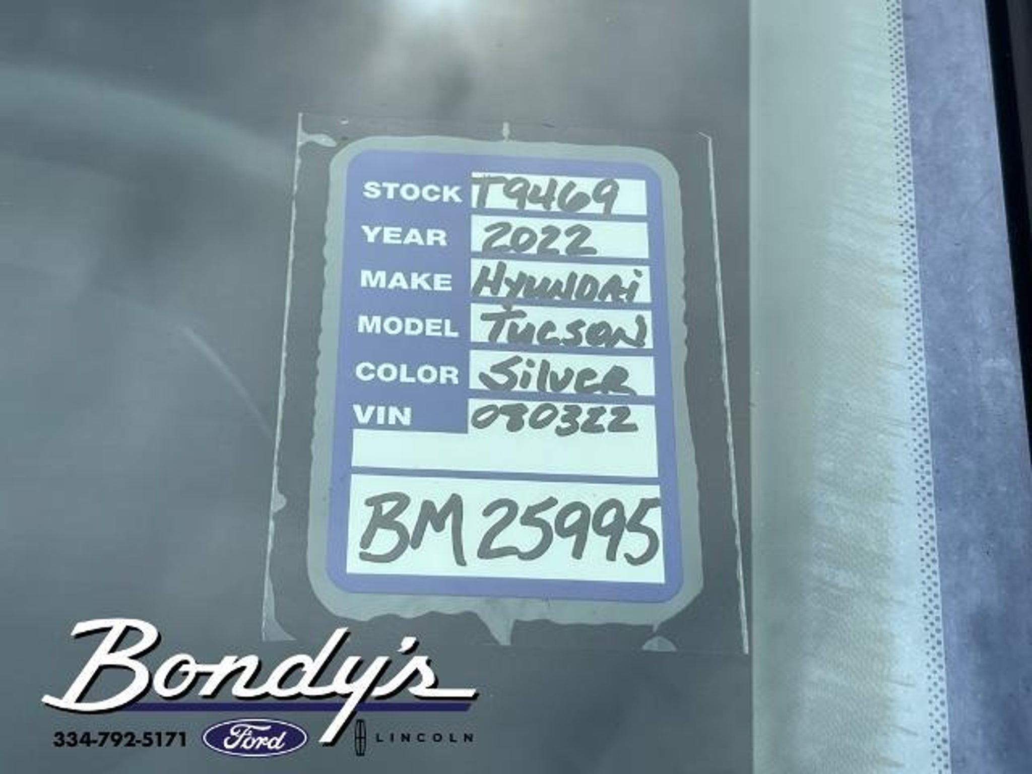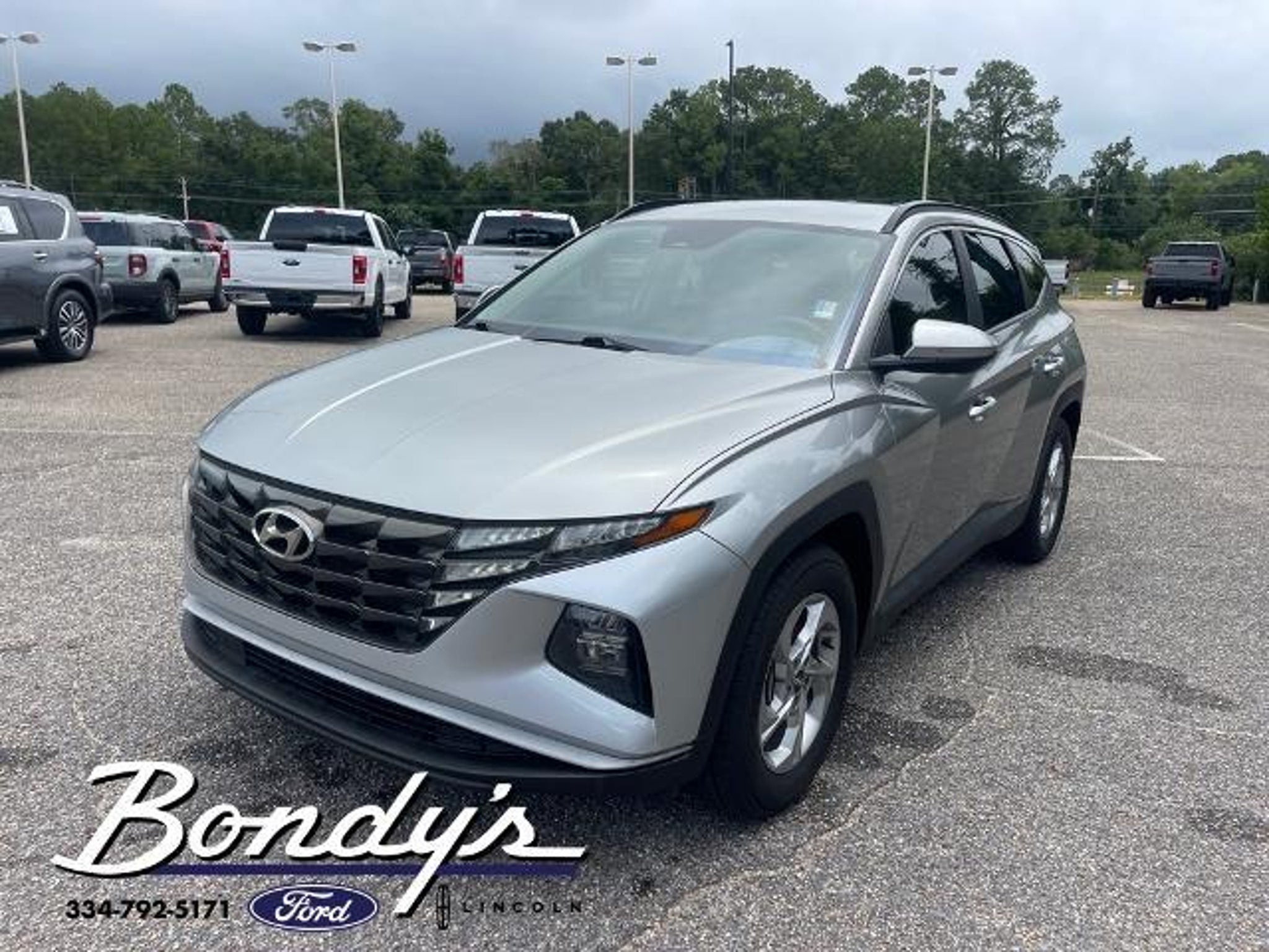 Priced below KBB Fair Purchase Price! CARFAX One-Owner. Clean CARFAX. 2022 Hyundai Tucson SEL 3.648 Axle Ratio, 4-Wheel Disc Brakes, 6 Speakers, ABS brakes, Air Conditioning, Alloy wheels, AM/FM radio: SiriusXM, Apple CarPlay & Android Auto, Auto High-beam Headlights, Brake assist, Bumpers: body-color, Cargo Cover, Cargo Net, Cargo Tray, Carpeted Floor Mats, Delay-off headlights, Driver door bin, Driver vanity mirror, Dual front impact airbags, Dual front side impact airbags, Electronic Stability Control, Emergency communication system: Blue Link Connected Car Service (3-year complimentary subscription), Four wheel independent suspension, Front anti-roll bar, Front Bucket Seats, Front Center Armrest, Front reading lights, Fully automatic headlights, Heated door mirrors, Heated Front Bucket Seats, Heated front seats, Illuminated entry, Low tire pressure warning, Occupant sensing airbag, Option Group 01, Outside temperature display, Overhead airbag, Overhead console, Panic alarm, Passenger door bin, Passenger vanity mirror, Power door mirrors, Power driver seat, Power steering, Power windows, Radio data system, Radio: AM/FM/HD/SiriusXM Audio System, Rear anti-roll bar, Rear seat center armrest, Rear window defroster, Rear window wiper, Remote keyless entry, Roof rack: rails only, Security system, Speed control, Split folding rear seat, Spoiler, Stain & Odor Resistant Cloth Seat Trim, Steering wheel mounted audio controls, Tachometer, Telescoping steering wheel, Tilt steering wheel, Traction control, Trip computer, Turn signal indicator mirrors, Variably intermittent wipers, Wheels: 17 x 7.0J Alloy. Shimmering Silver FWD 2.5L I4 DGI DOHC 16V LEV3-ULEV70 187hp 8-Speed Automatic with SHIFTRONIC THIS VEHICLE IS LOCATED AT BONDY'S FORD LINCOLN AT 3615 ROSS CLARK CIRCLE DOTHAN, AL 36303. PLEASE CALL US AT 800-239-5171 TO ASK US ANY QUESTIONS! MON-FRI SALES IS HERE FROM 8:30 TO 7:00 AND SAT 8:30 TO 6:00. WE ARE CLOSED ON SUNDAYS. Call Toll Free 800-239-5171 or 334-792-5171.