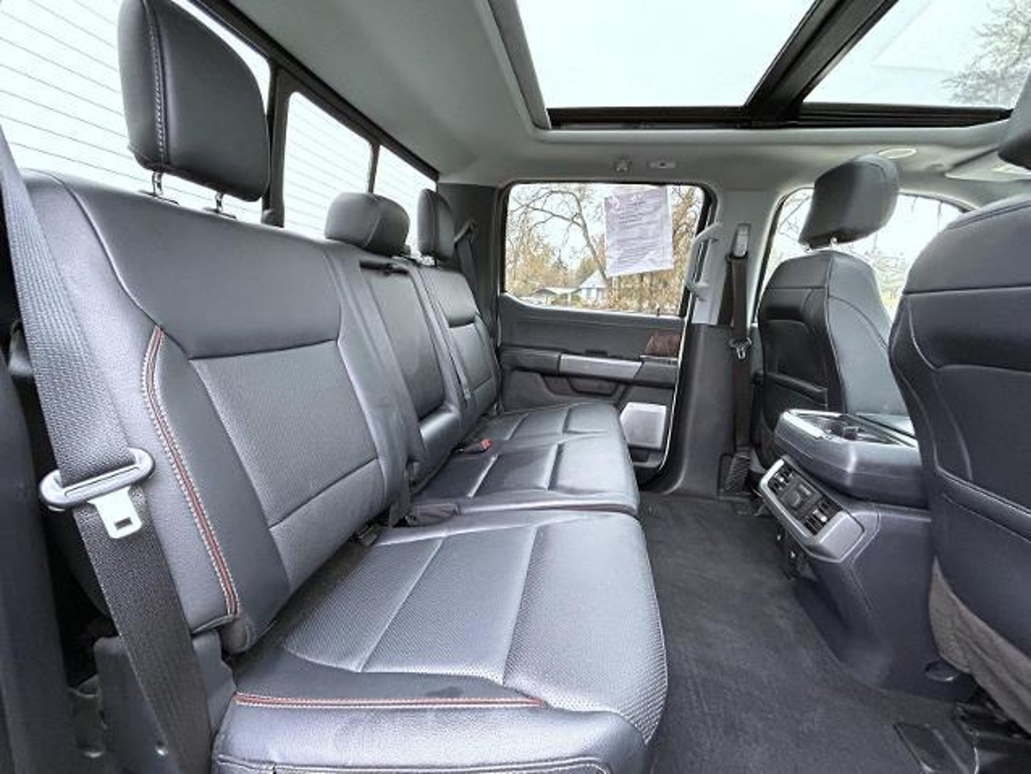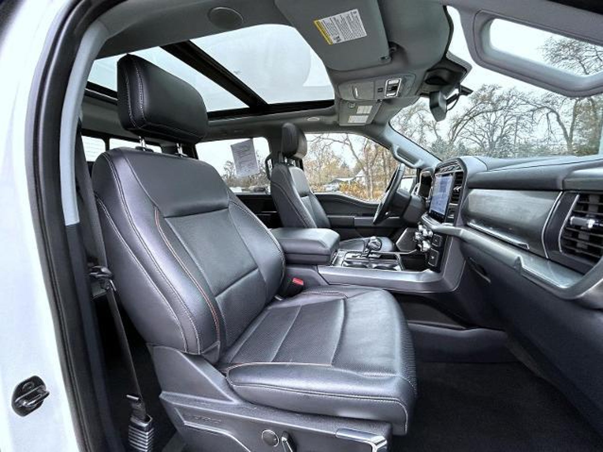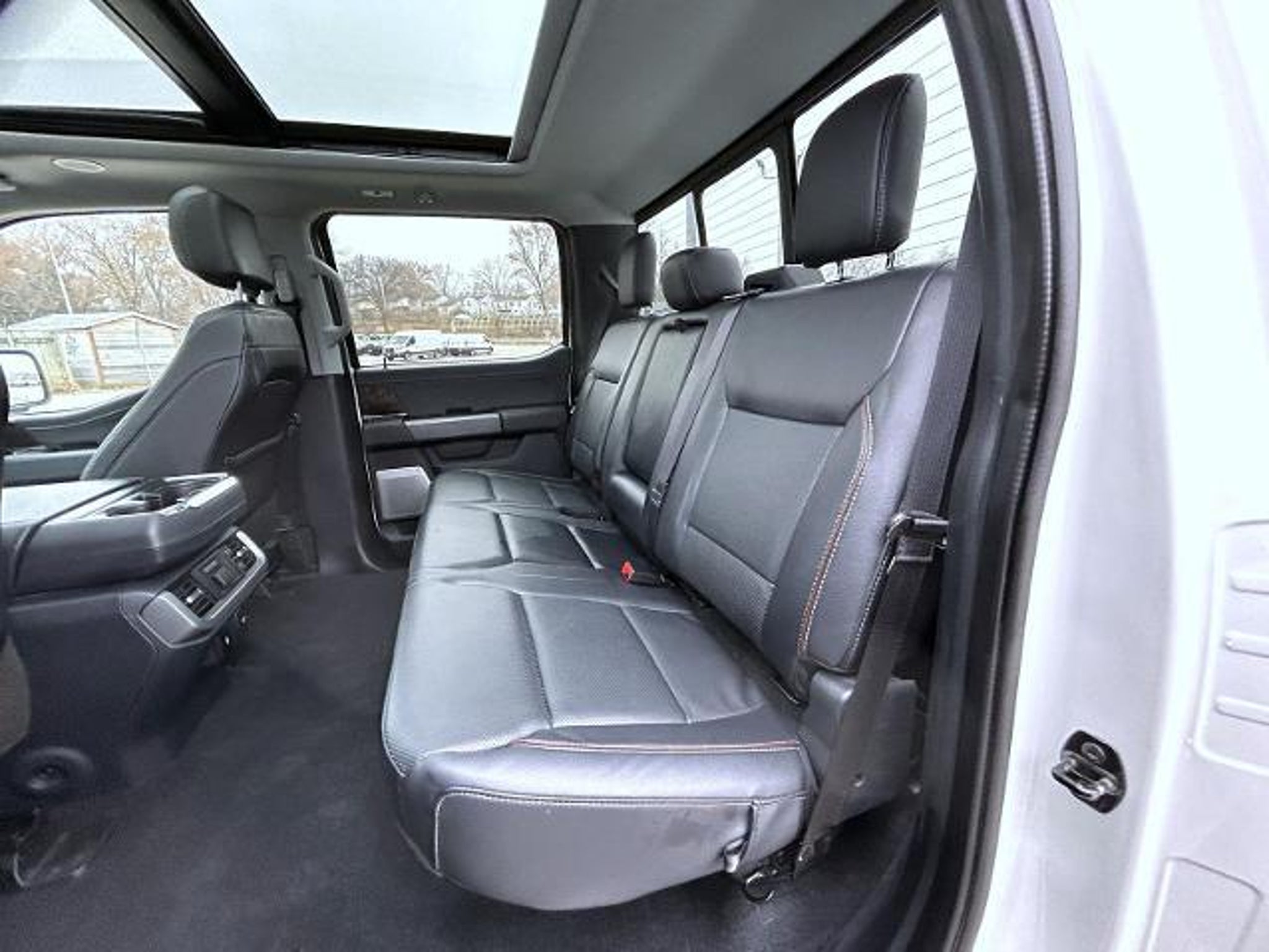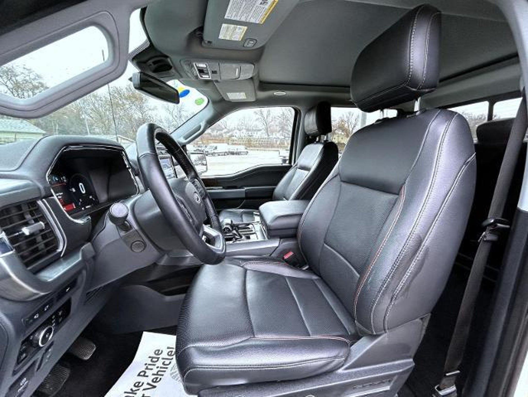 Star White Metallic Tri-Coat 2023 Ford F-150 Lariat 4WD 10-Speed Automatic PowerBoost Full-Hybrid V6 3.5 L PowerBoost Full-Hybrid V6 3.5 L, 4WD, 2nd Row Heated Seats, 360 Degree Camera, 4-Wheel Disc Brakes, 8 Speakers, ABS brakes, Adjustable pedals, Air Conditioning, Alloy wheels, AM/FM radio: SiriusXM with 360L, Auto High-beam Headlights, Auto Start-Stop Removal (DISC), Auto-dimming door mirrors, Auto-dimming Rear-View mirror, Automatic temperature control, Brake assist, Bumpers: chrome, Center High-Mounted Stop Lamp CHMSL Camera Removal, Chrome wheels, Class IV Trailer Hitch Receiver, Compass, Connected Built-In Navigation, Delay-off headlights, Driver door bin, Driver vanity mirror, Dual front impact airbags, Dual front side impact airbags, Electronic Stability Control, Emergency communication system: SYNC 4 911 Assist, Equipment Group 502A High, Evasive Steering Assist, Exterior Parking Camera Rear, Ford Co-Pilot360 Assist 2.0, Front anti-roll bar, Front Bucket Seats, Front Center Armrest, Front dual zone A/C, Front fog lights, Front reading lights, Front wheel independent suspension, Fully automatic headlights, Garage door transmitter, Heated door mirrors, Heated front seats, Heated steering wheel, Illuminated entry, Inclination/Intrusion Sensor Removal, Integrated Trailer Brake Controller, Intelligent Adaptive Cruise Control w/Stop & Go, Intersection Assist, Leather-Trimmed Bucket Seats, LED Projector w/Dynamic Bending Headlamps, LED Sideview Mirror Spotlights, Low tire pressure warning, Memory seat, Occupant sensing airbag, Outside temperature display, Overhead airbag, Overhead console, Panic alarm, Passenger door bin, Passenger vanity mirror, Pedal memory, Power door mirrors, Power driver seat, Power passenger seat, Power steering, Power Tilt/Telescoping Steering Column w/Memory, Power windows, Power-Deployable Running Boards, Pro Trailer Backup Assist & Pro Trailer Hitch Assist, Radio data system, Radio: B&O Sound System by Bang & Olufsen, Radio: B&O Unleashed Sound System by Bang & Olufsen, Rain-Sensing Wipers, Rear reading lights, Rear seat center armrest, Rear step bumper, Rear window defroster, Remote keyless entry, Security system, Speed control, Speed Sign Recognition, Speed-sensing steering, Split folding rear seat, Steering wheel mounted audio controls, SYNC 4 w/Enhanced Voice Recognition, Tachometer, Telescoping steering wheel, Tilt steering wheel, Traction control, Trailer Tow Package, Trip computer, Turn signal indicator mirrors, Twin Panel Moonroof, Variably intermittent wipers, Venti