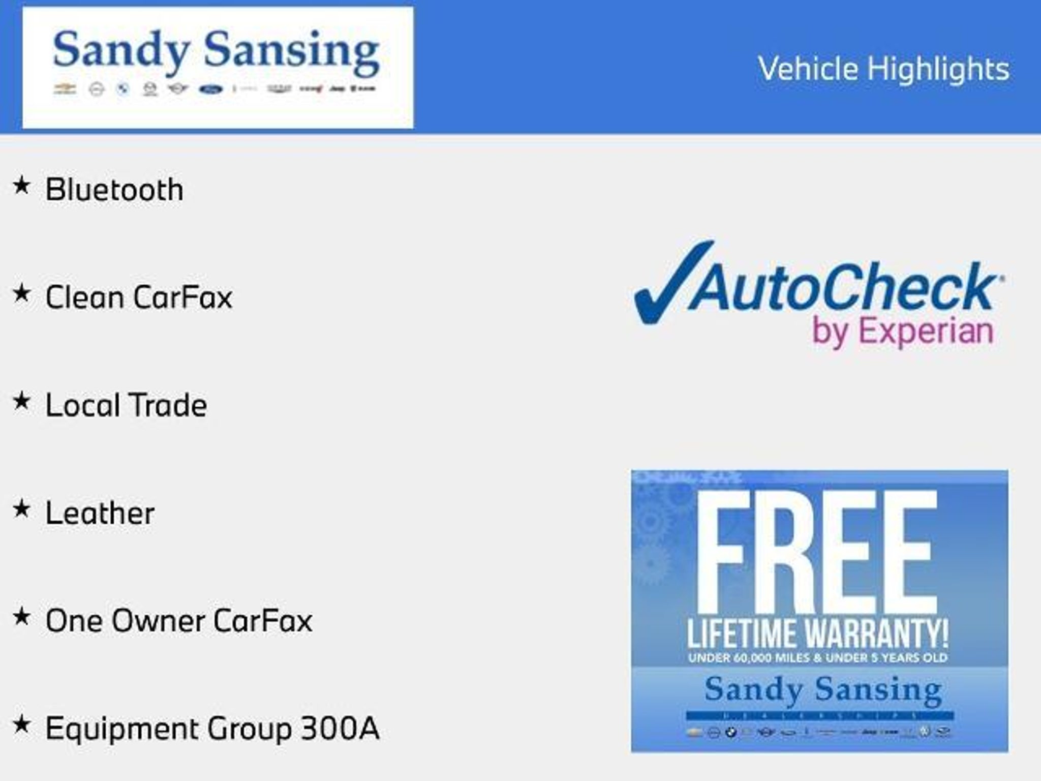 Here are more details on this Oxford White 2023 Ford Bronco Sport with Ebony/Roast Leather interior trim at Sandy Sansing Dealerships. Come see the largest inventory on the Gulf coast. Bluetooth, Clean CarFax, Local Trade, Leather, One Owner CarFax, Equipment Group 300A. Equipment Group 300A, 3.80 Axle Ratio, 4-Wheel Disc Brakes, 4G LTE Wi-Fi Hotspot Credit, 6 Speakers, ABS brakes, Air Conditioning, Alloy wheels, AM/FM radio: SiriusXM, AM/FM Stereo, Auto High-beam Headlights, Auto-dimming Rear-View mirror, Automatic temperature control, Brake assist, Compass, Delay-off headlights, Driver door bin, Driver vanity mirror, Dual front impact airbags, Dual front side impact airbags, Electronic Stability Control, Emergency communication system: SYNC 3 911 Assist, Four wheel independent suspension, Front anti-roll bar, Front Bucket Seats, Front Center Armrest, Front dual zone A/C, Front fog lights, Front License Plate Bracket, Front reading lights, Fully automatic headlights, Heated door mirrors, Heated Rear Seats, Heated steering wheel, Illuminated entry, Knee airbag, Leather Trimmed Heated Sport Contour Bucket Seats, Low tire pressure warning, Memory seat, Occupant sensing airbag, Outside temperature display, Overhead airbag, Overhead console, Panic alarm, Passenger door bin, Passenger vanity mirror, Power door mirrors, Power driver seat, Power passenger seat, Power steering, Power windows, Radio data system, Rain sensing wipers, Rear anti-roll bar, Rear Parking Sensors, Rear reading lights, Rear seat center armrest, Rear window defroster, Rear window wiper, Remote keyless entry, Security system, SiriusXM, Speed control, Speed-sensing steering, Speed-Sensitive Wipers, Split folding rear seat, Steering wheel mounted audio controls, SYNC 3 Communications & Entertainment System, SYNC 3/Apple CarPlay/Android Auto, Tachometer, Telescoping steering wheel, Tilt steering wheel, Traction control, Trip computer, Variably intermittent wipers, and Wheels: 18 Ebony Black-Painted Aluminum.