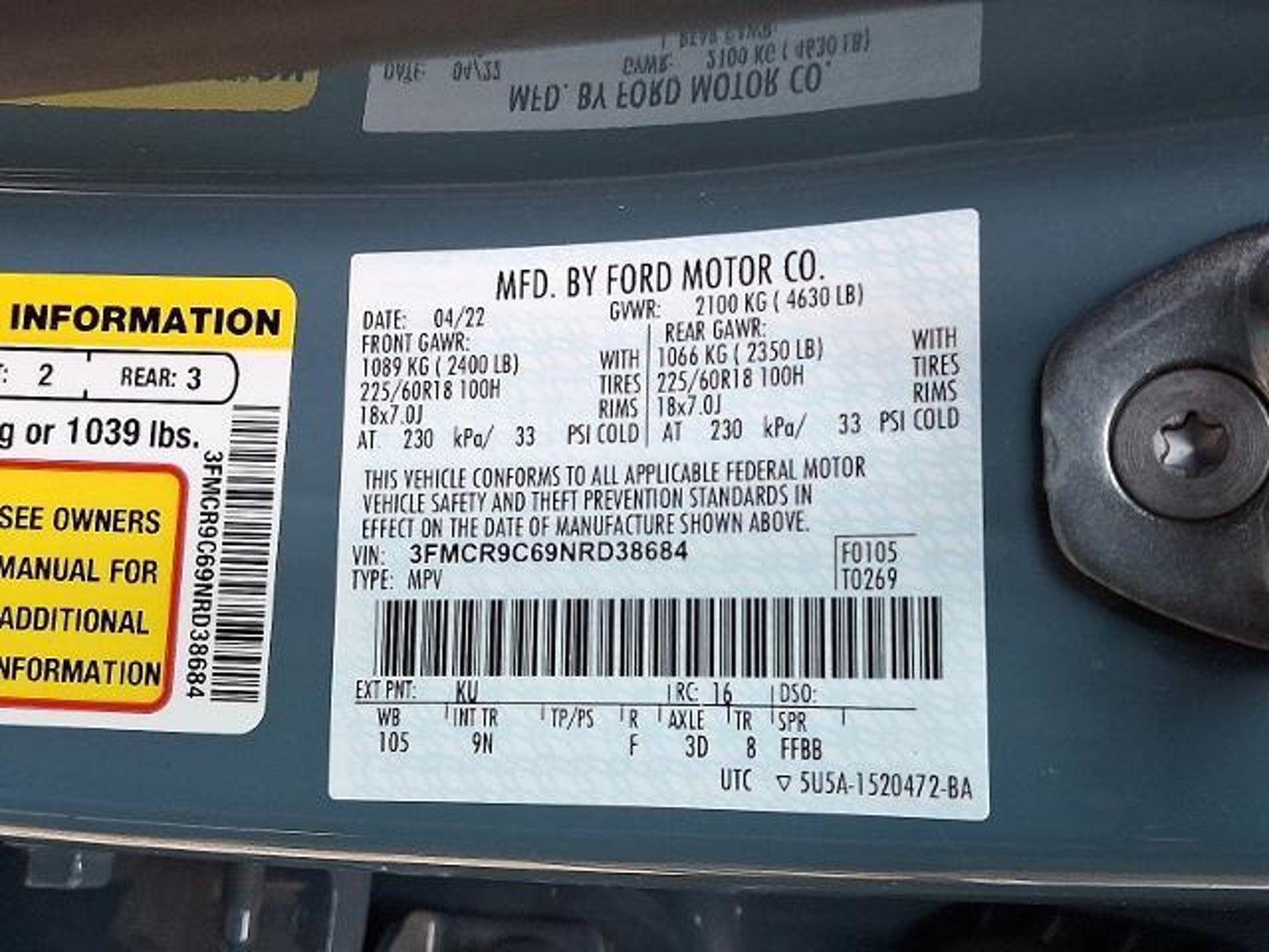 VIN 3FMCR9C69NRD38684