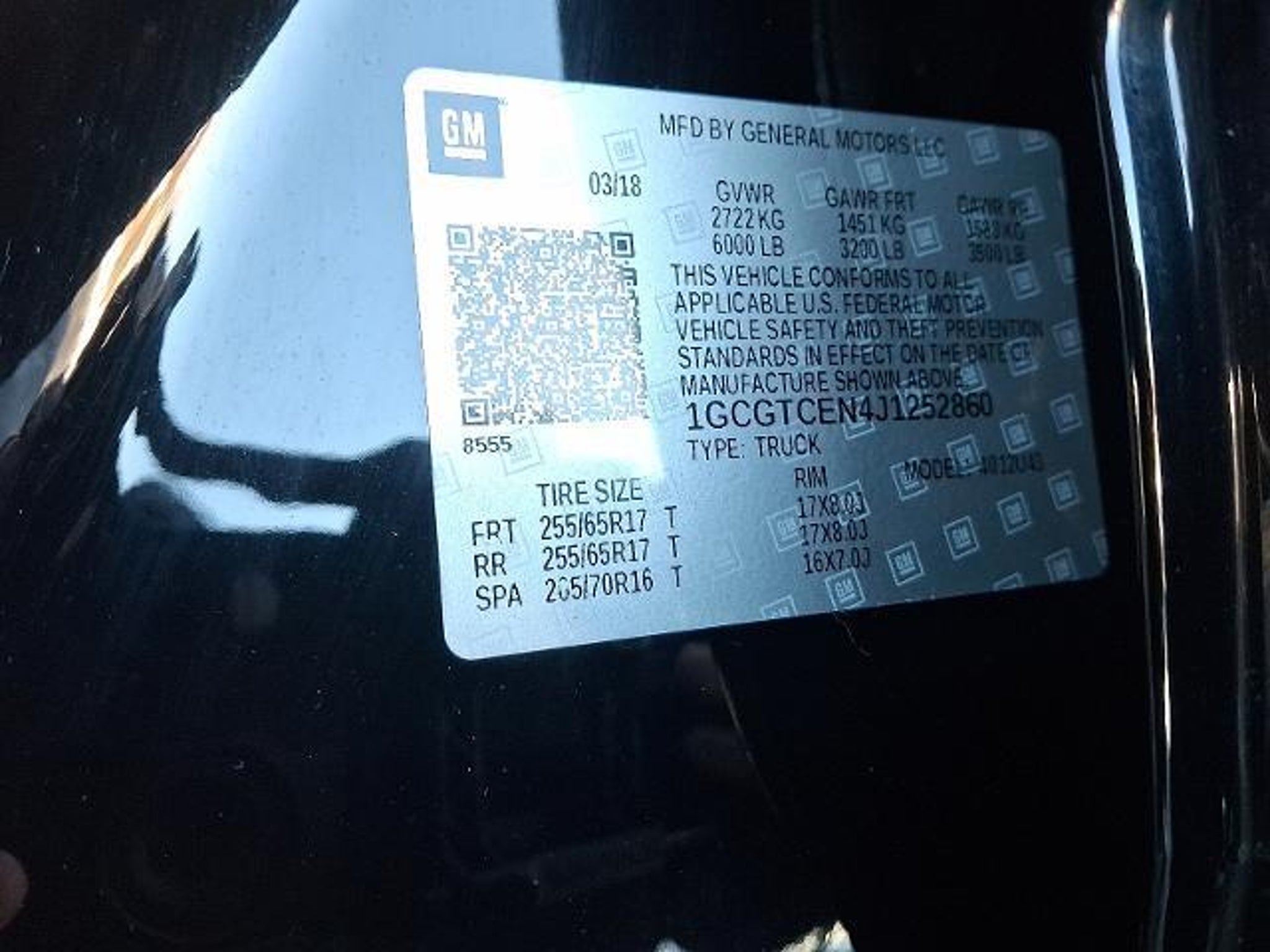 1GCGTCEN4J1252860 |