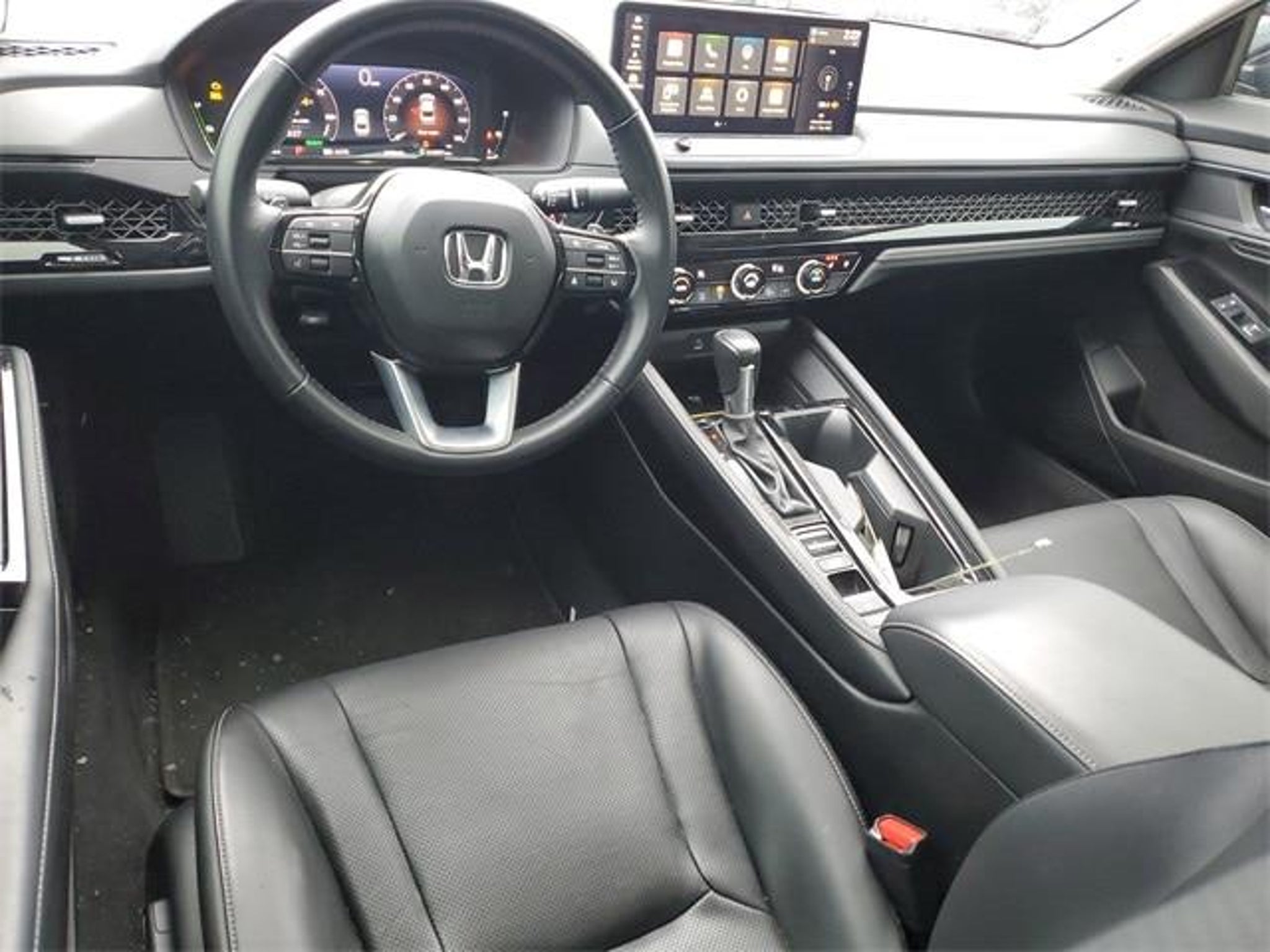 2023 Honda Accord Hybrid Touring FWD eCVT 2.0L 16V DOHC 2.0L 16V DOHC. Recent Arrival! Odometer is 21919 miles below market average! 46/41 City/Highway MPG This 2023 Honda Accord Hybrid Touring comes equipped with 2.0L 16V DOHC, 12 Speakers, 4-Wheel Disc Brakes, ABS brakes, Adaptive Cruise Control: Adaptive Cruise Control (ACC) with Low-Speed Follow, Adaptive suspension, Air Conditioning, Alloy wheels, AM/FM radio, Apple CarPlay/Android Auto, Auto High-beam Headlights, Auto-dimming Rear-View mirror, Automatic temperature control, Bose Premium Sound System, Brake assist, Bumpers: body-color, Compass, Delay-off headlights, Driver door bin, Driver vanity mirror, Dual front impact airbags, Dual front side impact airbags, Electronic Stability Control, Emergency communication system: HondaLink, Exterior Parking Camera Rear, Four wheel independent suspension, Front anti-roll bar, Front Bucket Seats, Front Center Armrest, Front dual zone A/C, Front reading lights, Fully automatic headlights, Heads-Up Display, Heated & Ventilated Front Bucket Seats, Heated door mirrors, Heated front seats, Heated rear seats, Illuminated entry, Knee airbag, Lane departure: Lane Keeping Assist System (LKAS) active, Leather Shift Knob, Leather steering wheel, Leather-Trimmed Seat Trim, Low tire pressure warning, Memory seat, Navigation system: Google Built-In, Occupant sensing airbag, Outside temperature display, Overhead airbag, Overhead console, Panic alarm, Passenger door bin, Passenger vanity mirror, Power door mirrors, Power driver seat, Power moonroof, Power passenger seat, Power steering, Power windows, Radio data system, Rain sensing wipers, Rear anti-roll bar, Rear reading lights, Rear seat center armrest, Rear side impact airbag, Rear window defroster, Remote keyless entry, Security system, Speed control, Speed-sensing steering, Speed-Sensitive Wipers, Split folding rear seat, Steering wheel mounted audio controls, Telescoping steering wheel, Tilt steering wheel, Traction control, Trip computer, Turn signal indicator mirrors, Variably intermittent wipers, Ventilated front seats, and Wheels: 19 x 8.5J Berlina Black.
